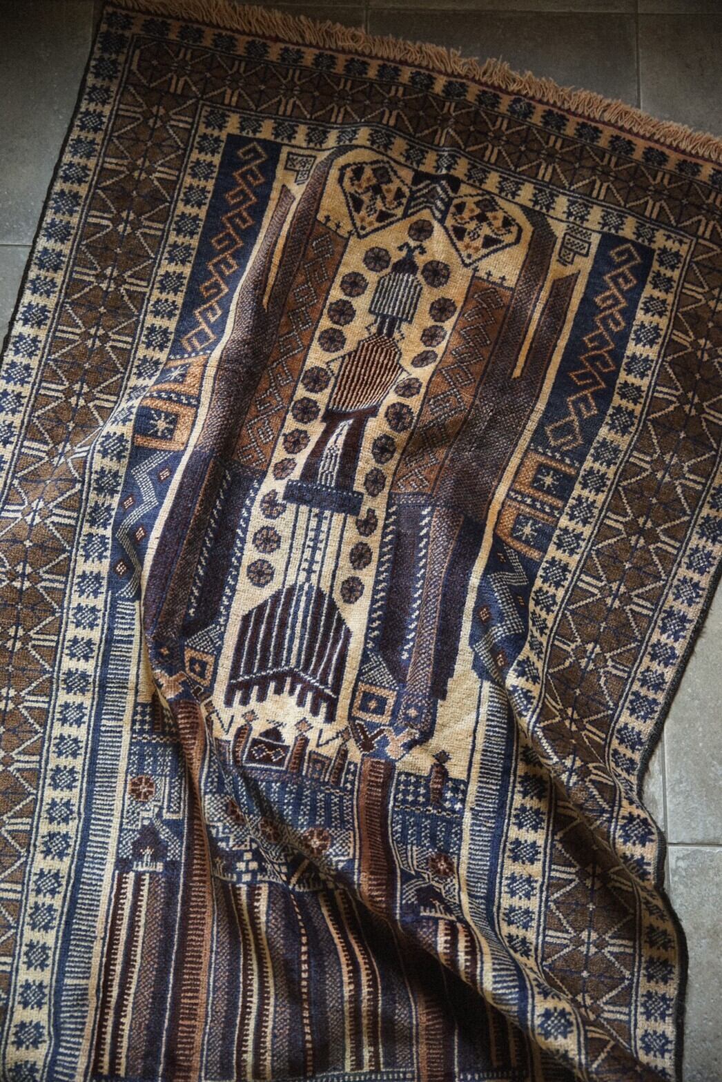 モスクの中が描かれたバルーチプレイヤーラグ。