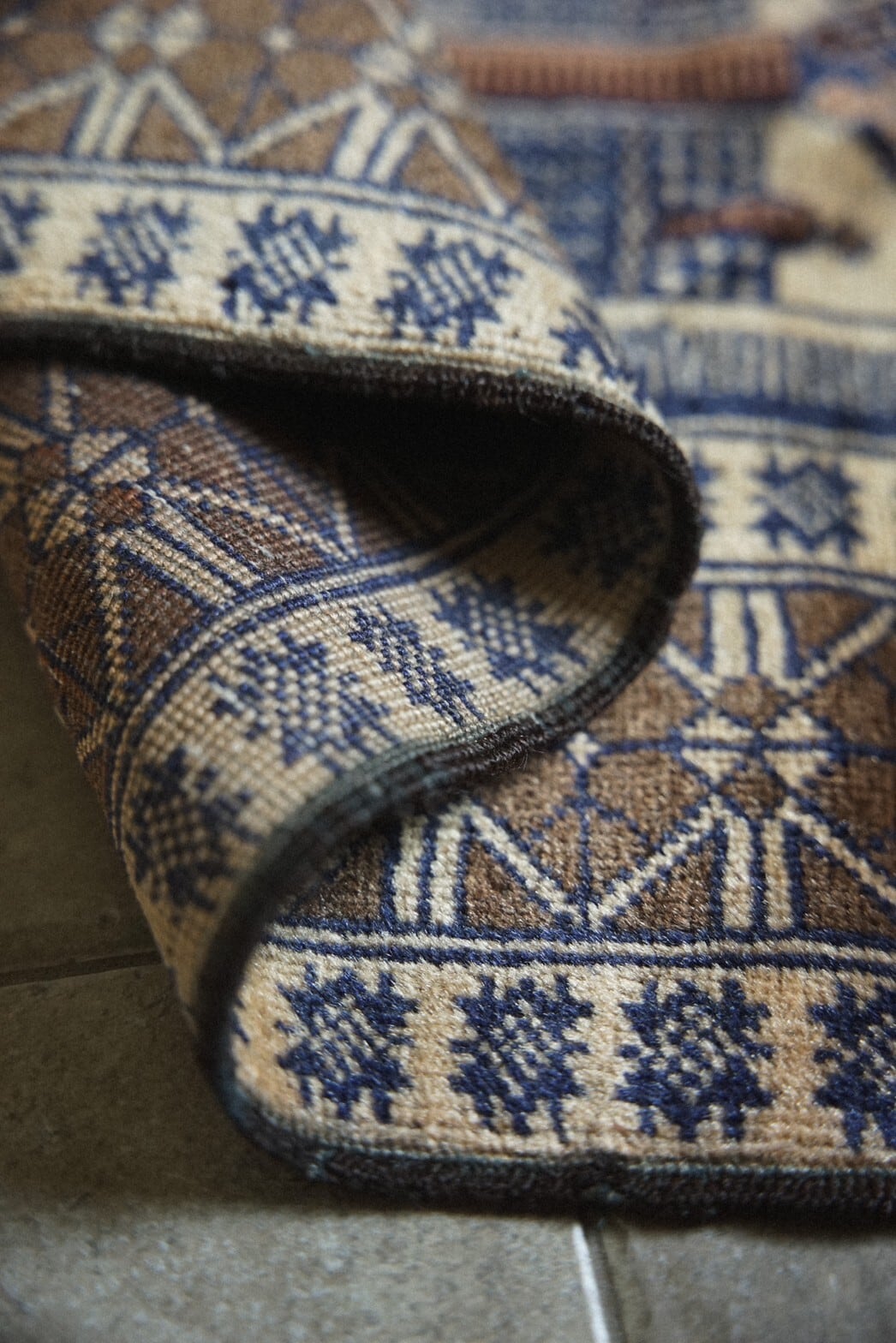 艶もあり、きめ細かい織りと滑らかな手触りのパイルはダメージもなくグッドコンディション。使いやすいサイズ感なので色んな場所に敷いて楽しんでみてください。
