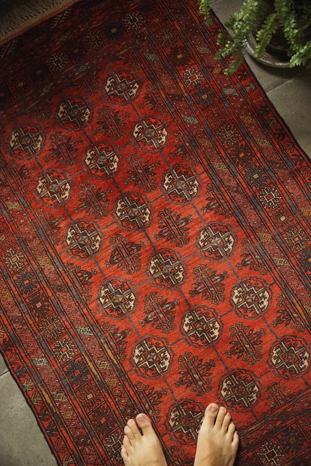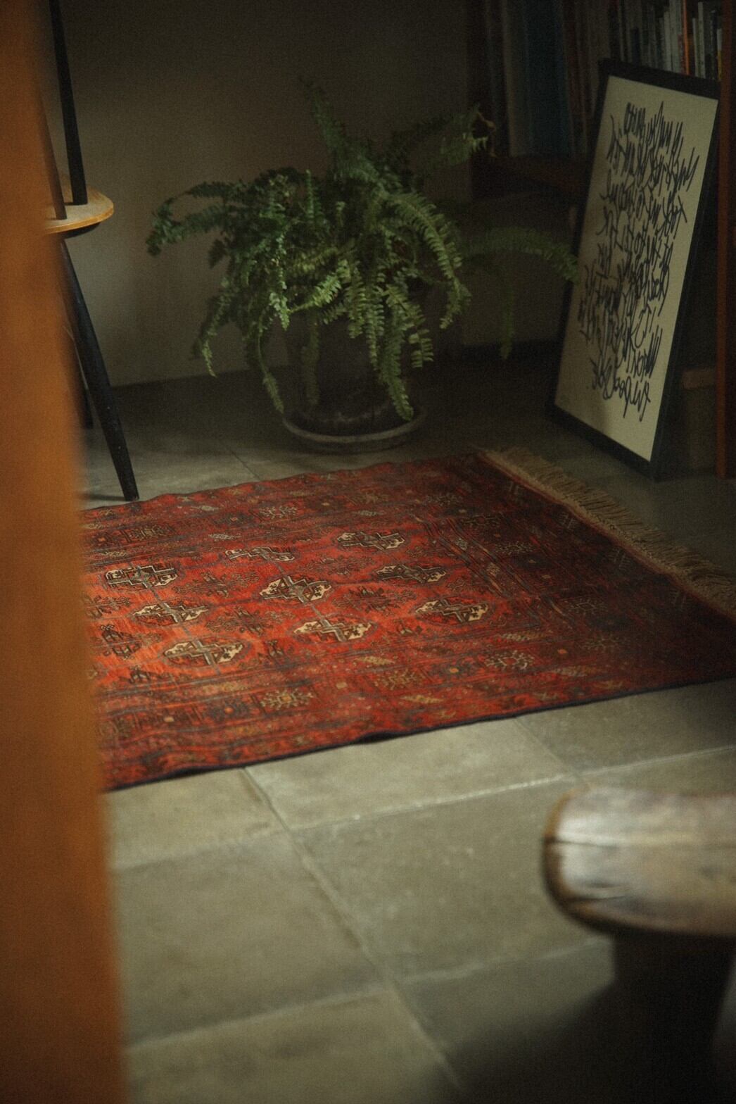 赤いラグは意外とインテリアに取り入れやすく、サイズが小さくても一枚敷くだけで空間のアクセントになってくれます。