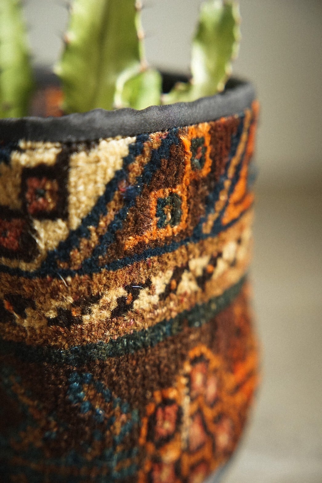 カシュガイラグのボーダー部分を使用してリメイクしてもらったラグ鉢カバーです。