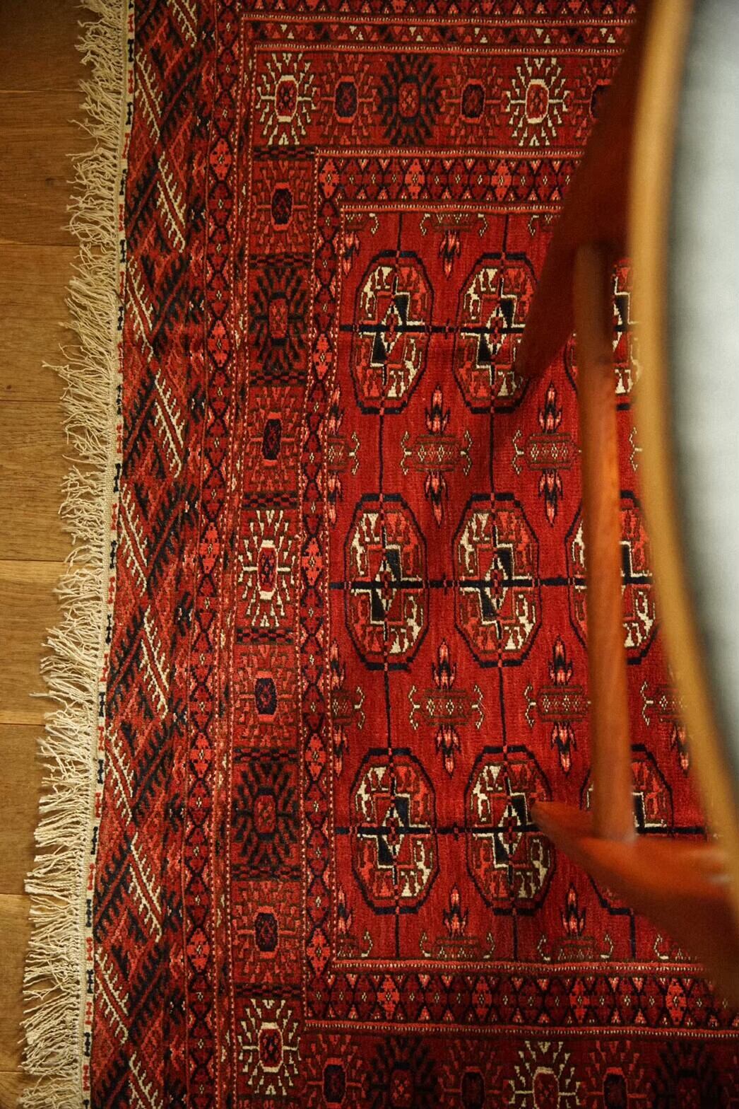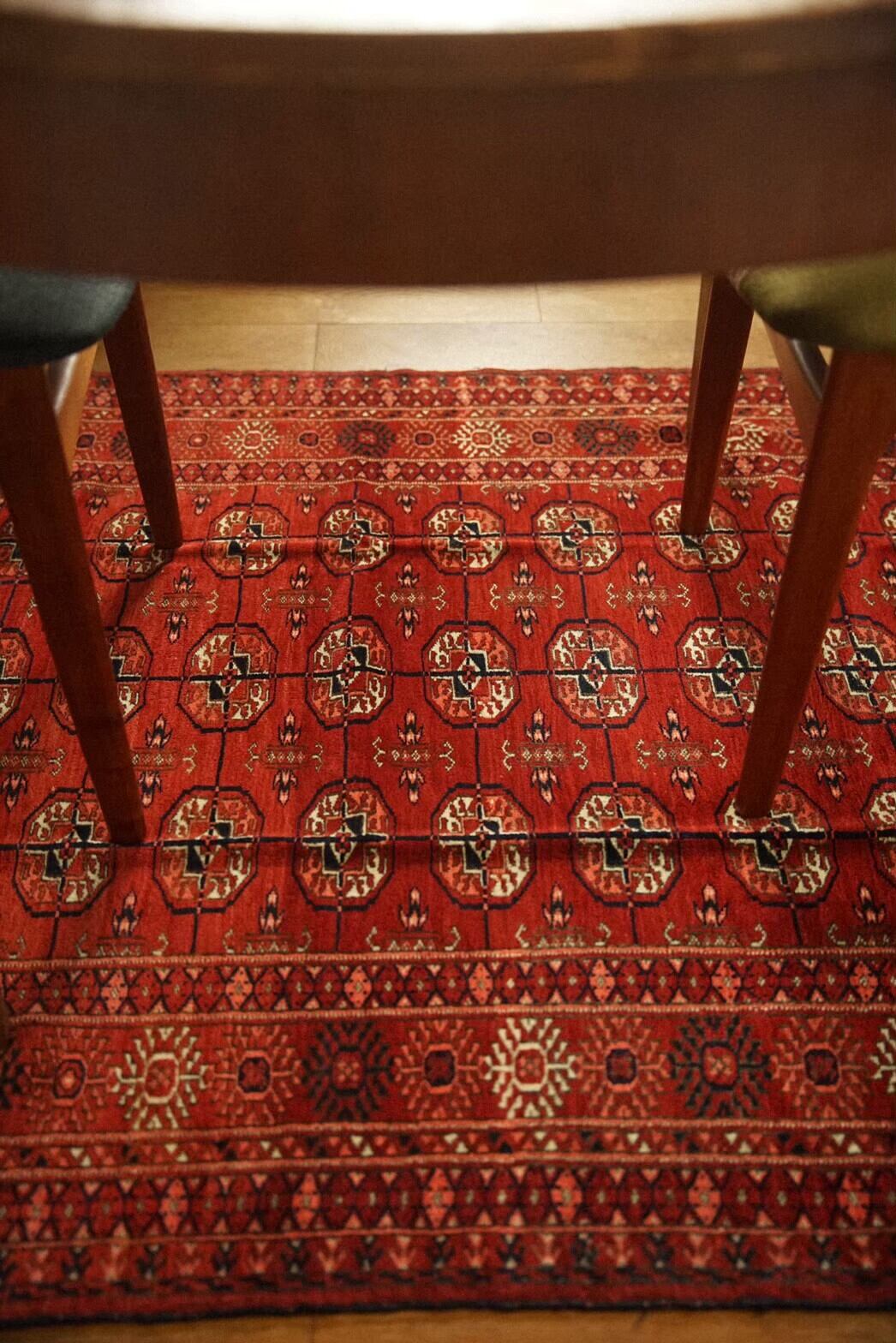 目を惹く美しい艶を持つトルクメンレッドと整然と並ぶテッケギュルが気品を感じさせます。
