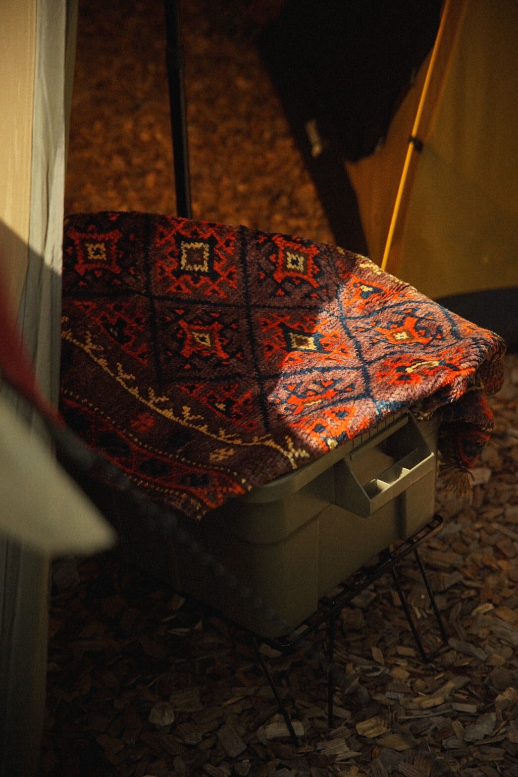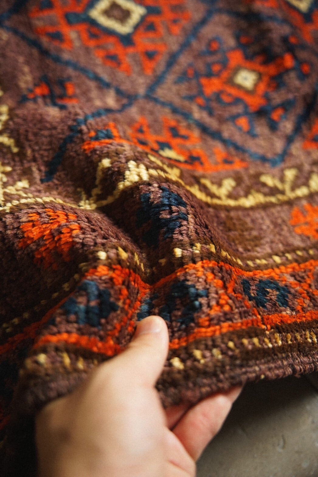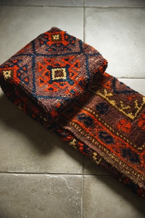 バーリシトと呼ばれる家財や食材を入れたり、屋内ではクッションとして使用される袋状のものをラグに仕立ててもらいました。