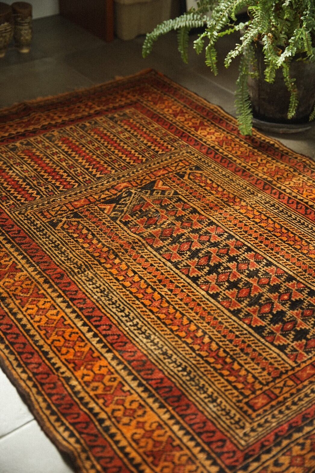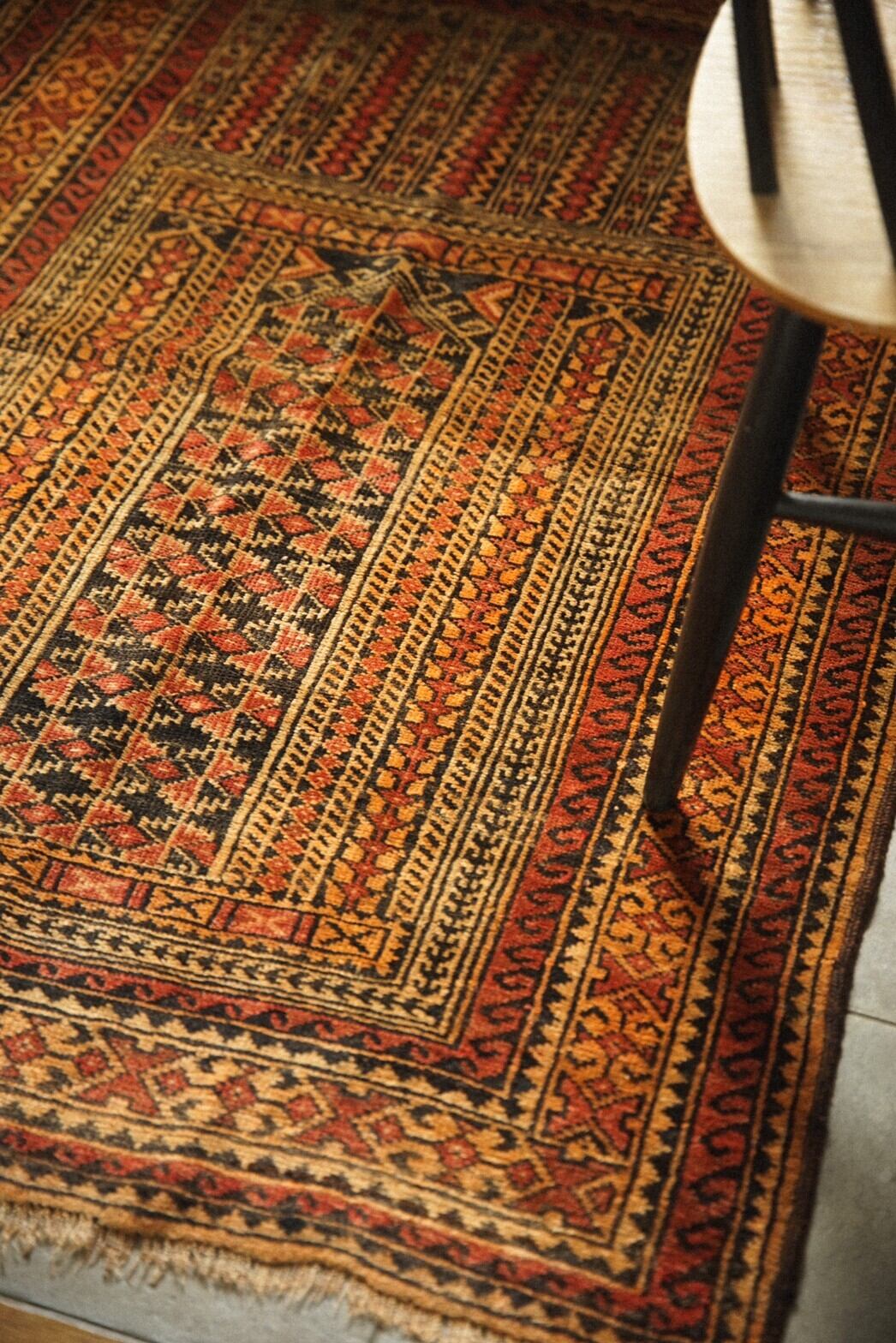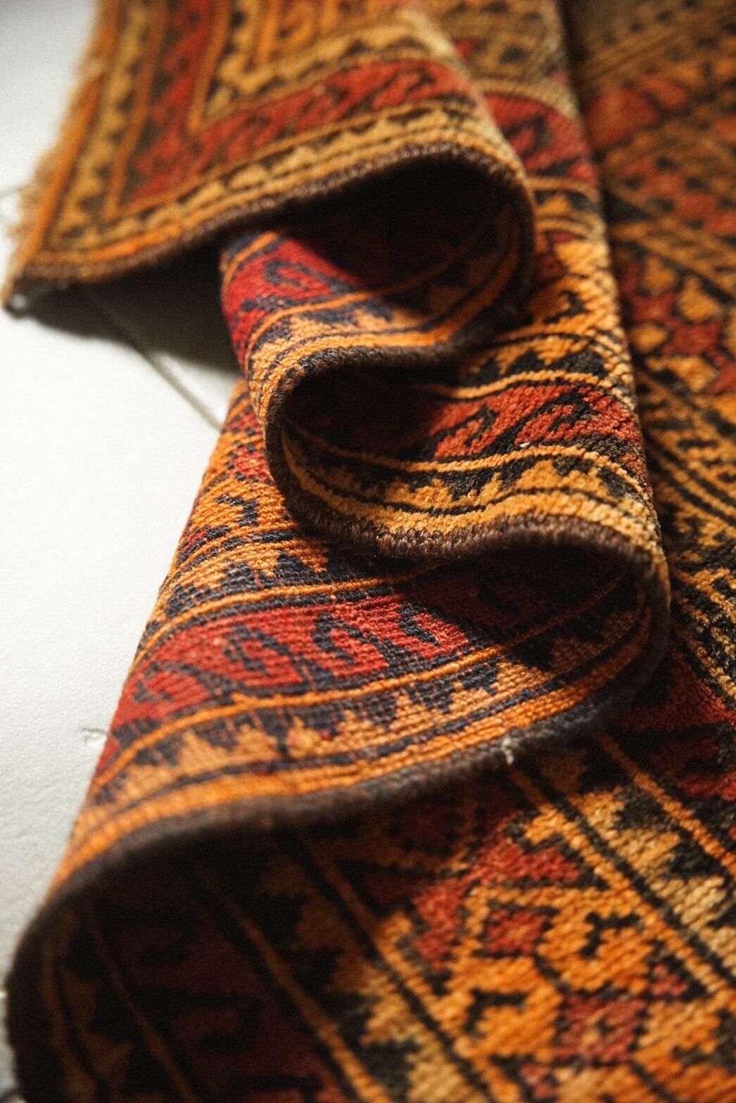 トルクメンラグらしく、きめ細やかな織りで手触りは滑らか。