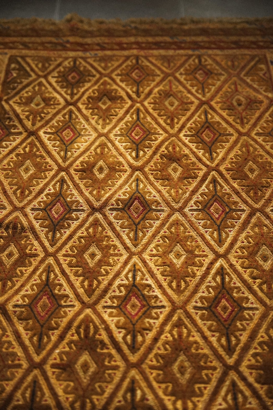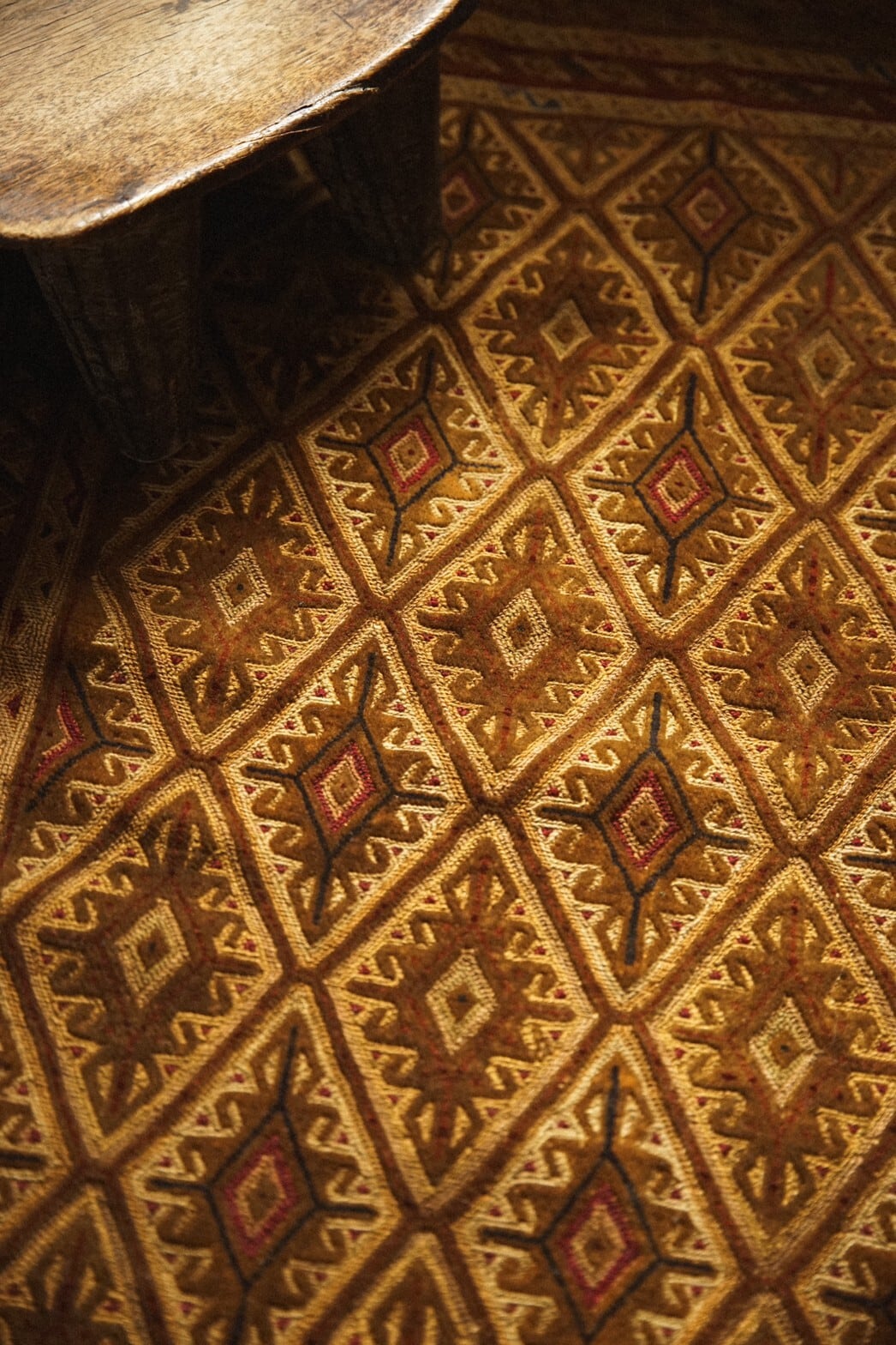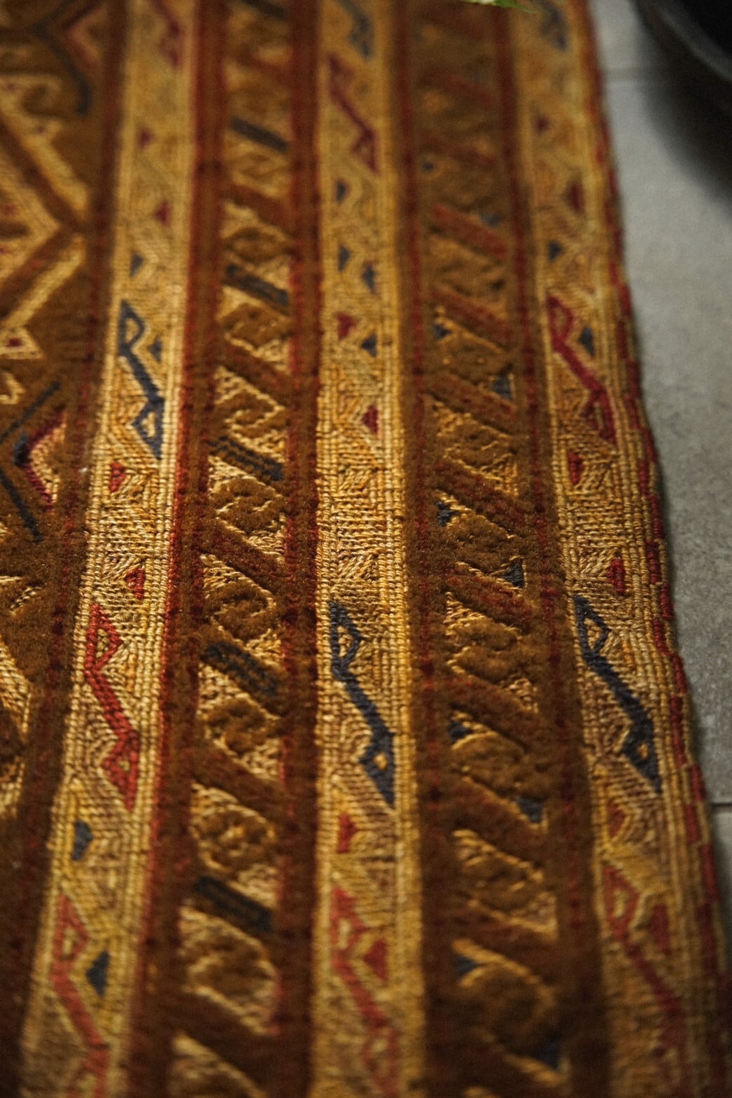 平織りとパイル織りの組み合わせで、技術のいる織りのマシュワニラグ。