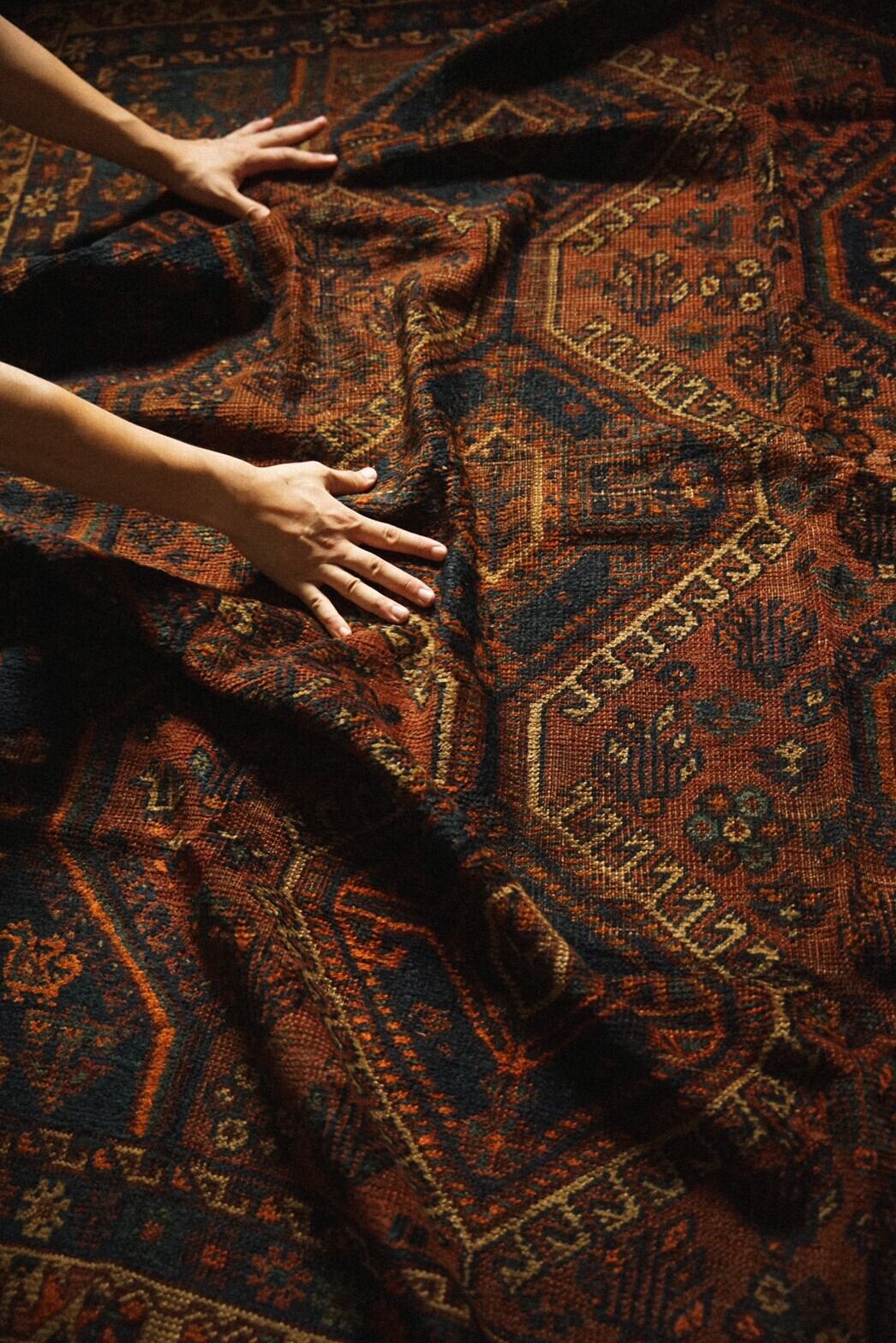 このような渋めの色合いのラグは探しても中々出逢えるものではないので、お探しの方はぜひこの機会に♪リビングやソファ前、書斎やテーブル下などにおすすめのサイズ感です。