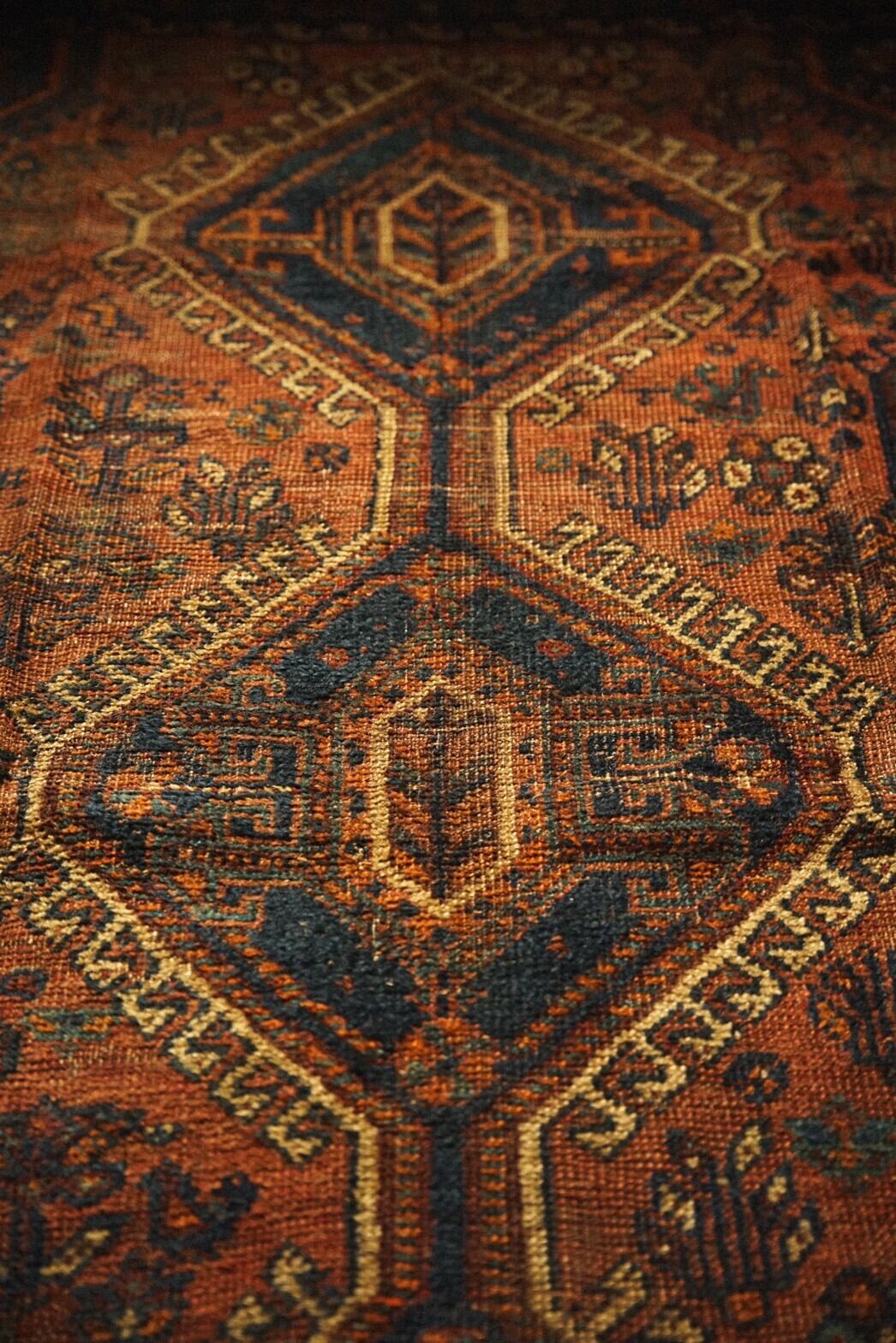 経年による渋い色味と風合いがとても素晴らしいセミアンティークのカシュガイラグ。