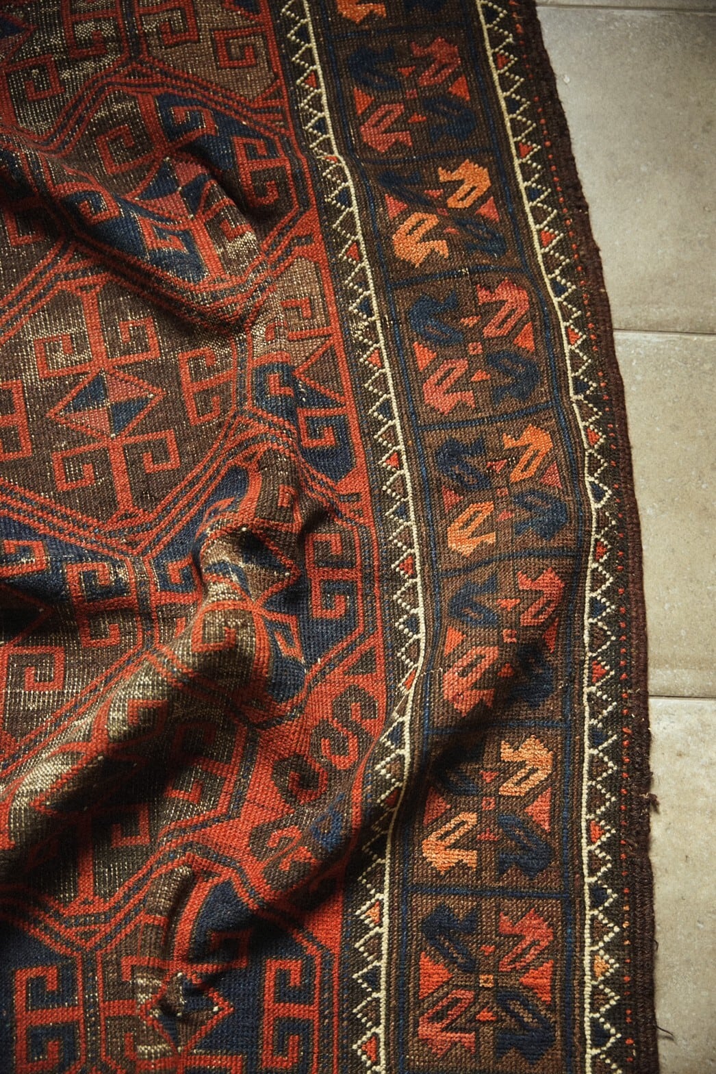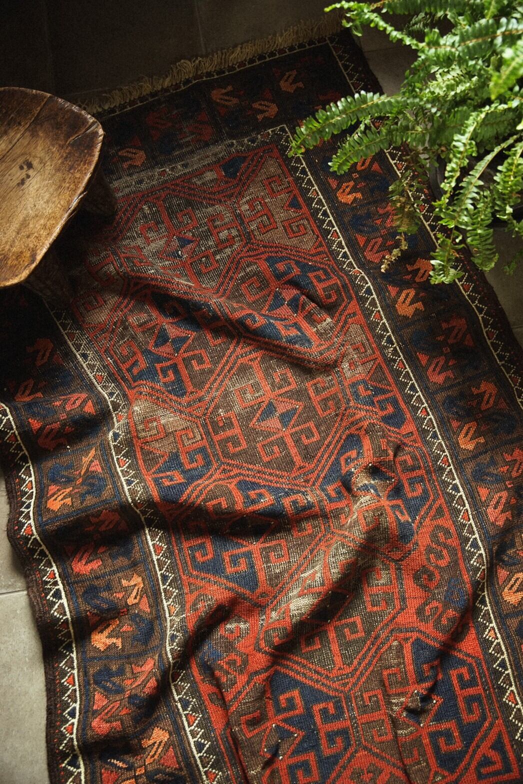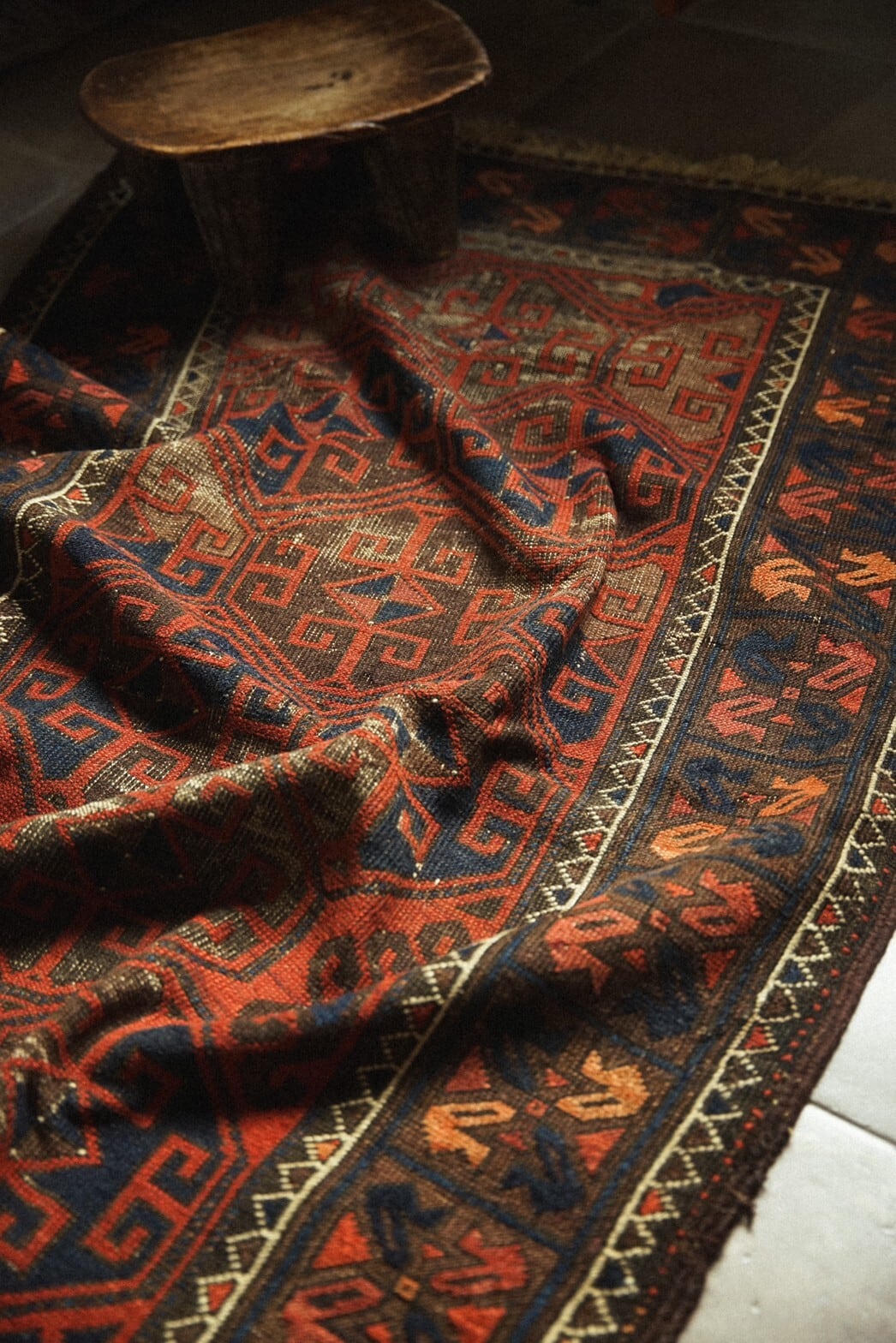 擦れ感のある味わい深い風合いがとてもかっこいいバルーチラグ。
