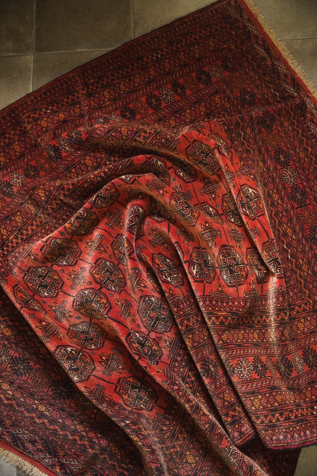 トルクメンの象徴である赤いラグ。