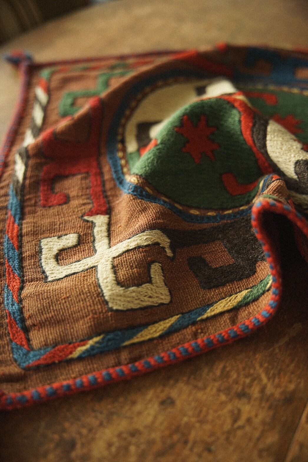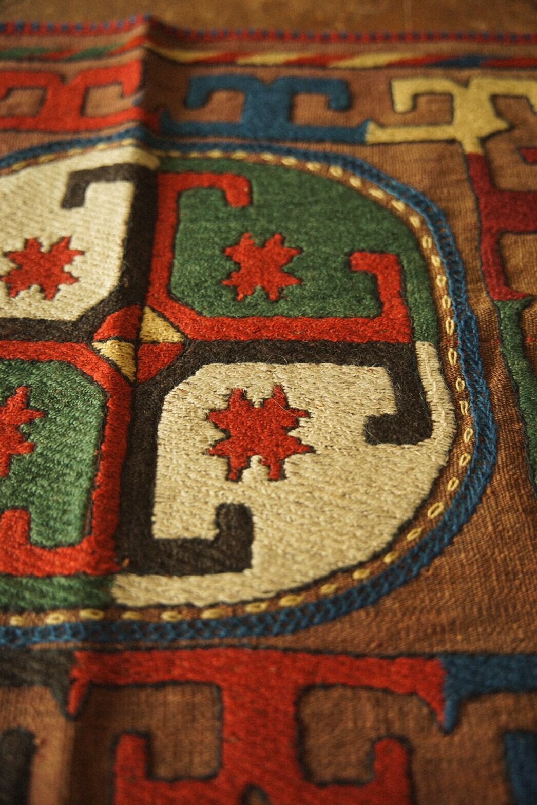 ウズベク族のテーブルクロス。丈夫なコットン生地にとても美しい色彩の刺繍が施されています。