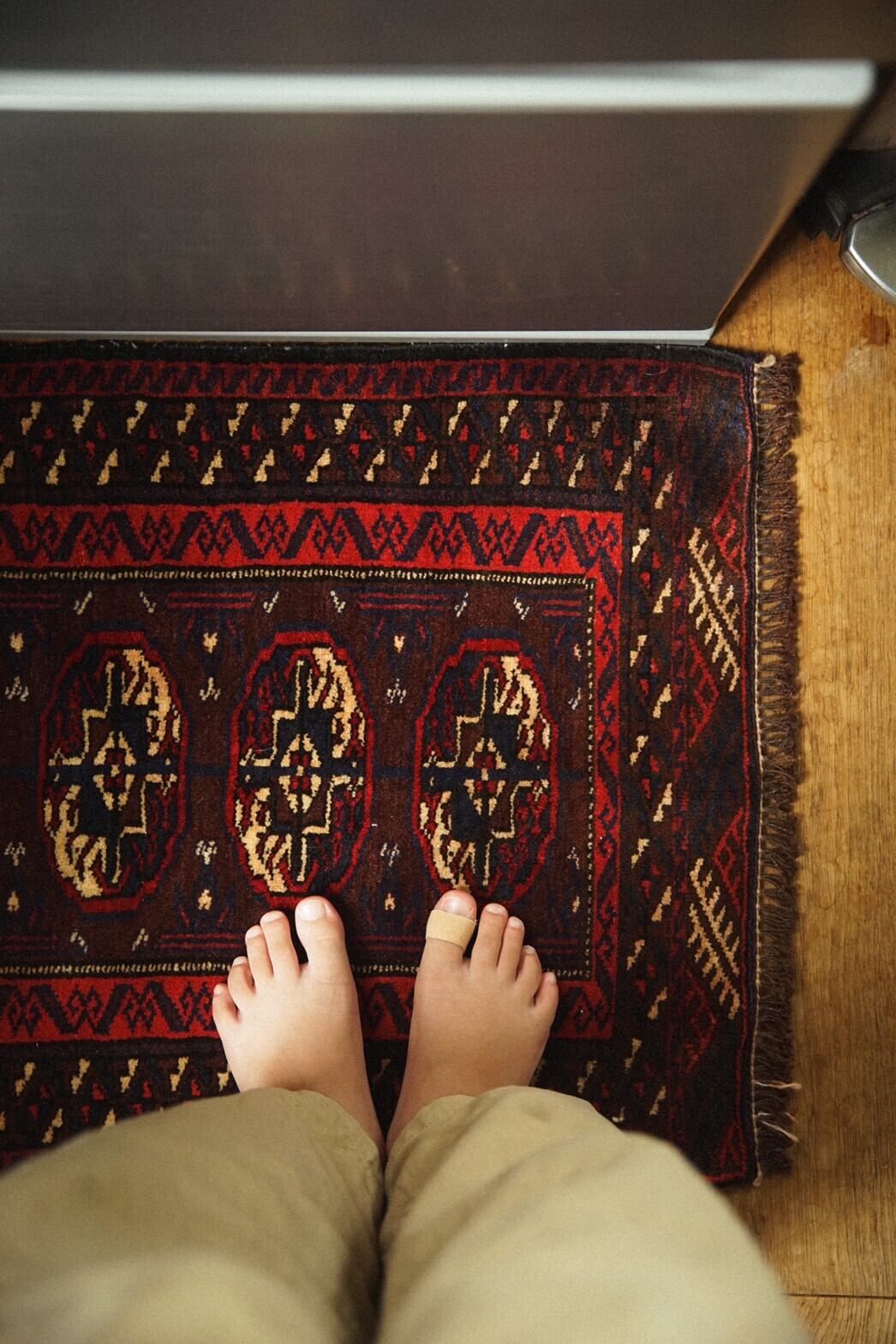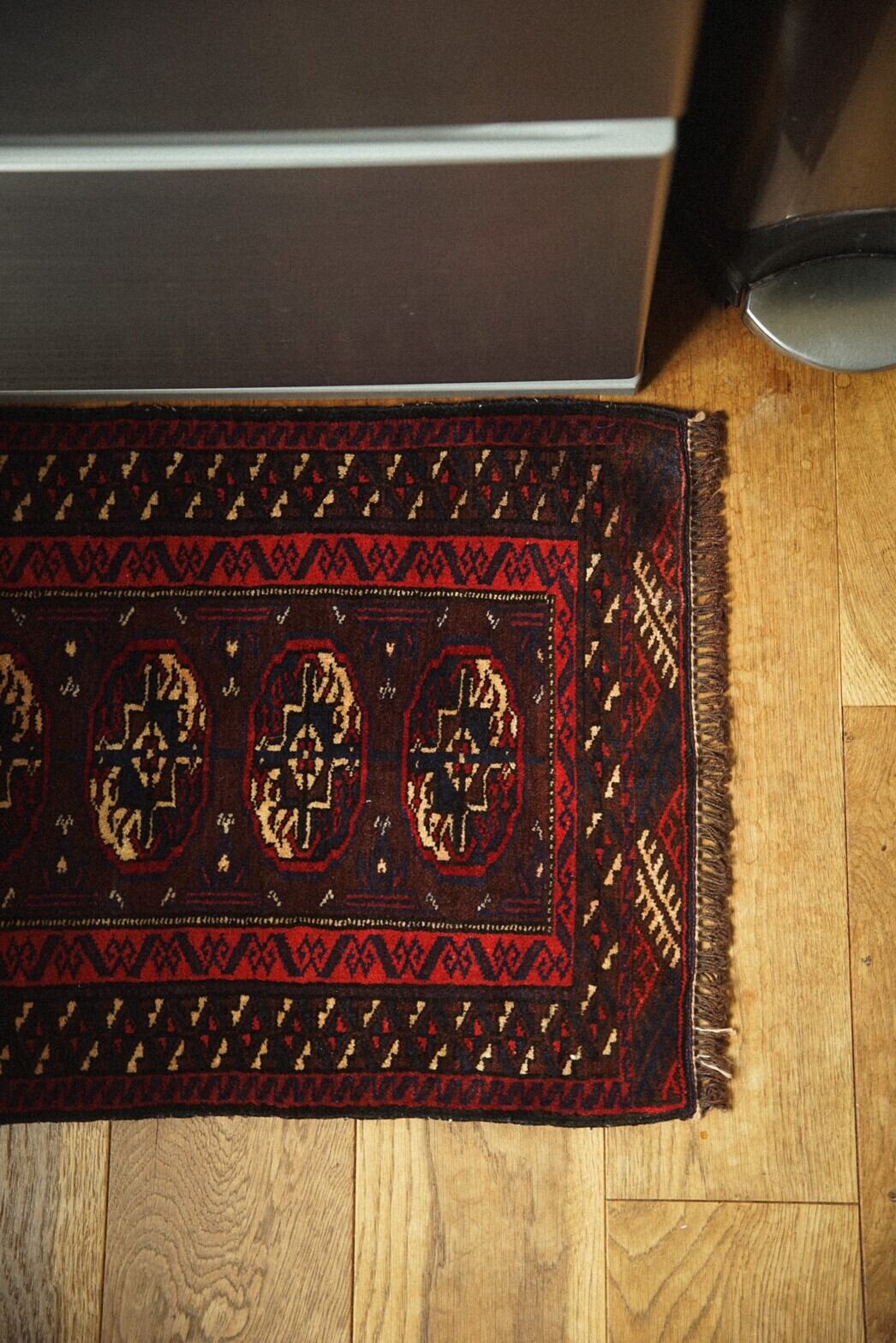細かい織りで短めパイルですが、程よい厚みがあり玄関やキッチンなど床に敷くのにおすすめの一枚。