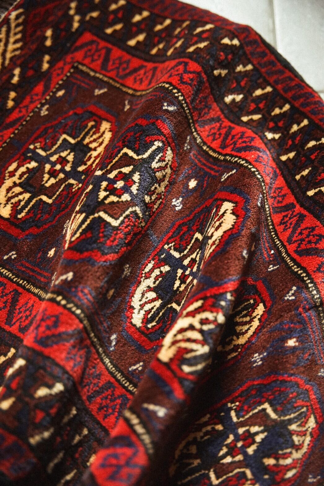 バーリシトと呼ばれる家財や食材を入れたり、屋内ではクッションとして使用される袋状のものをラグに仕立ててもらいました。