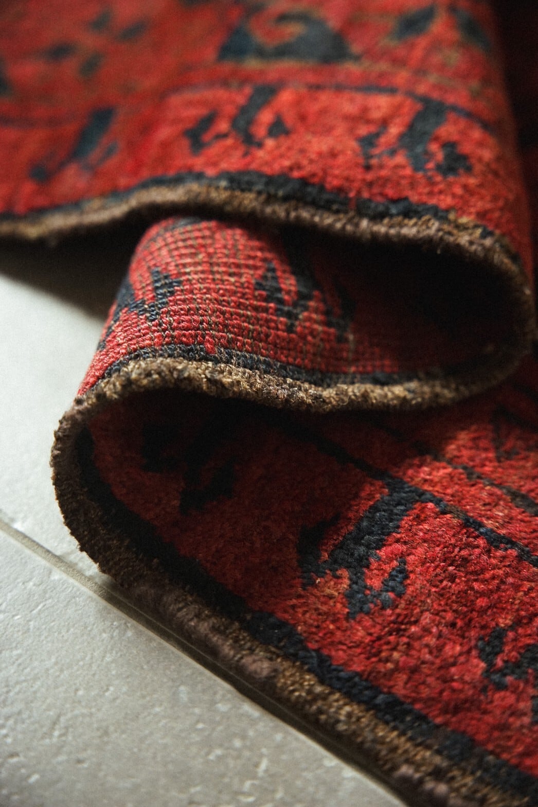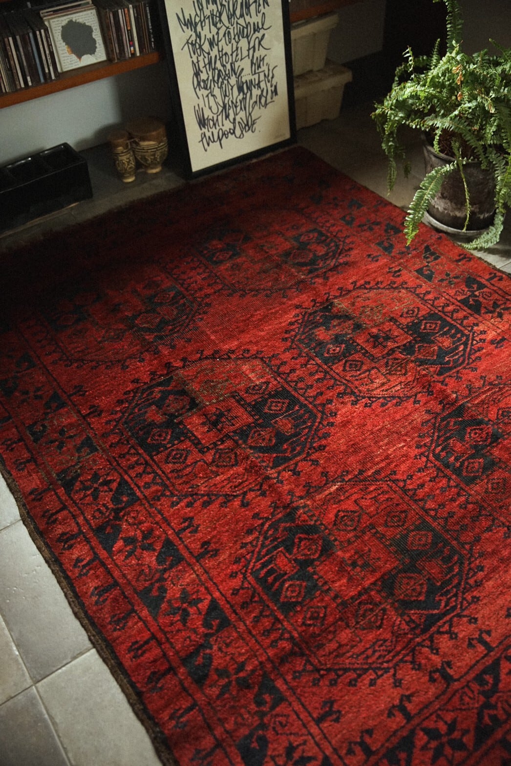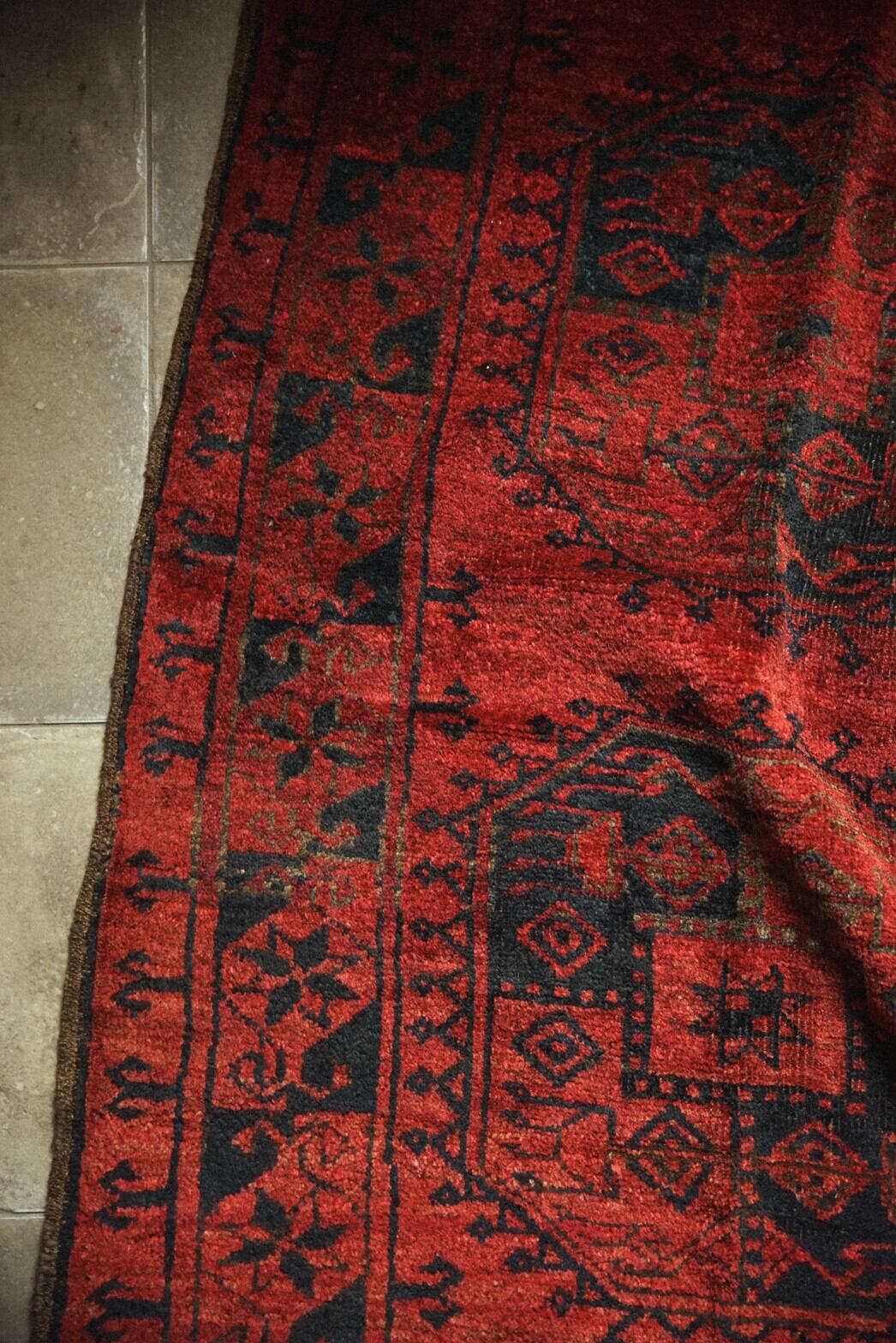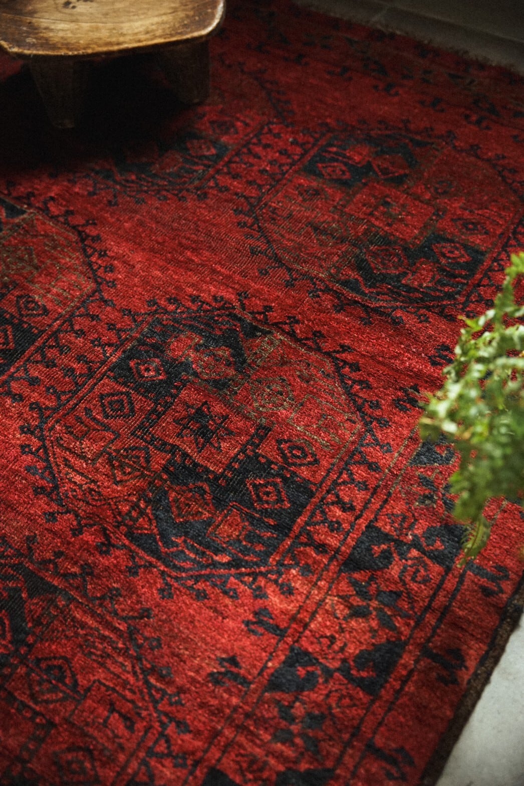 赤い絨毯はインパクトが強すぎるという理由で抵抗ある方にこそおすすめしたい美しい一枚。シンプルな空間にも、ナチュラルインテリアにも、プリミティブインテリアにも馴染む万能な赤い絨毯。