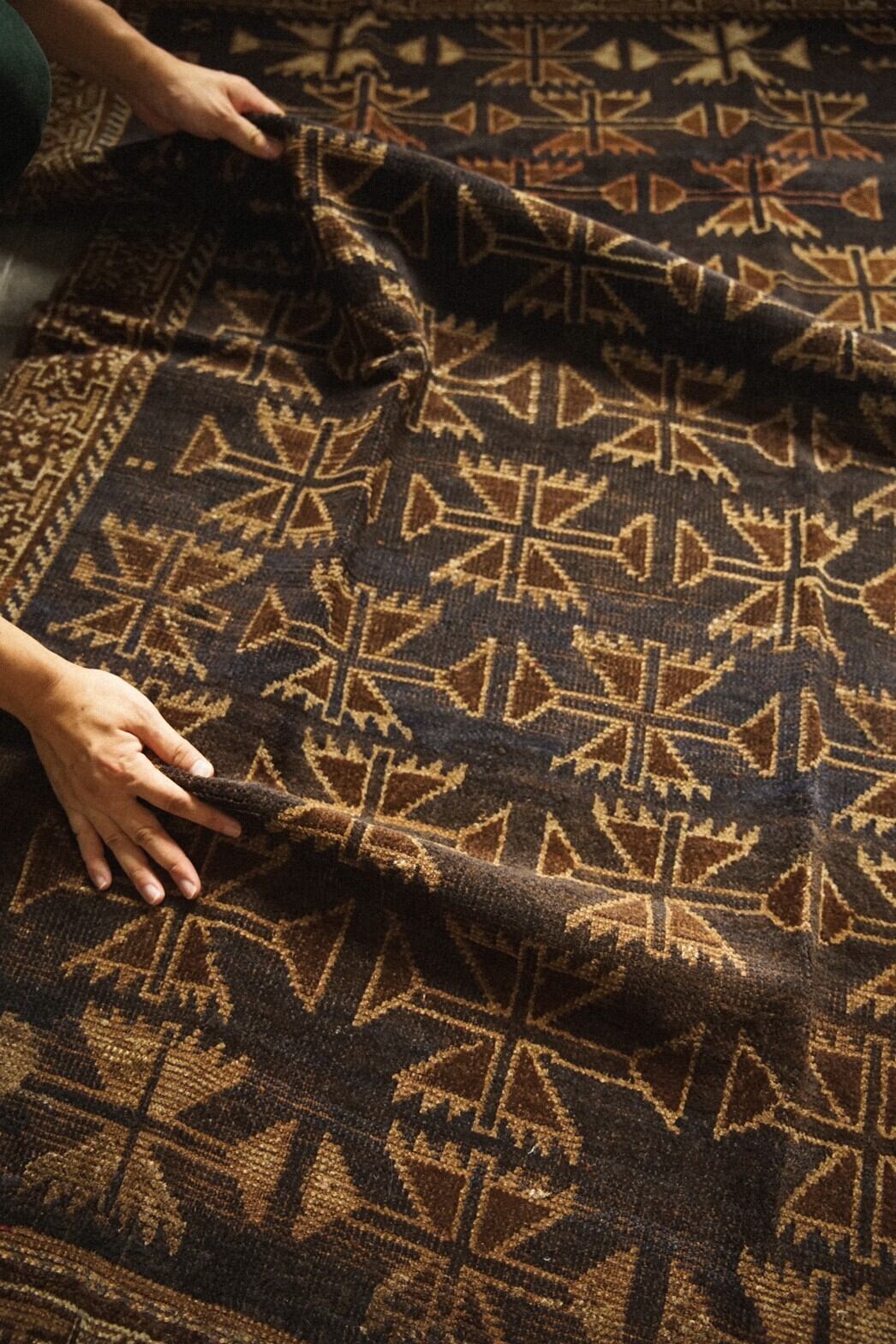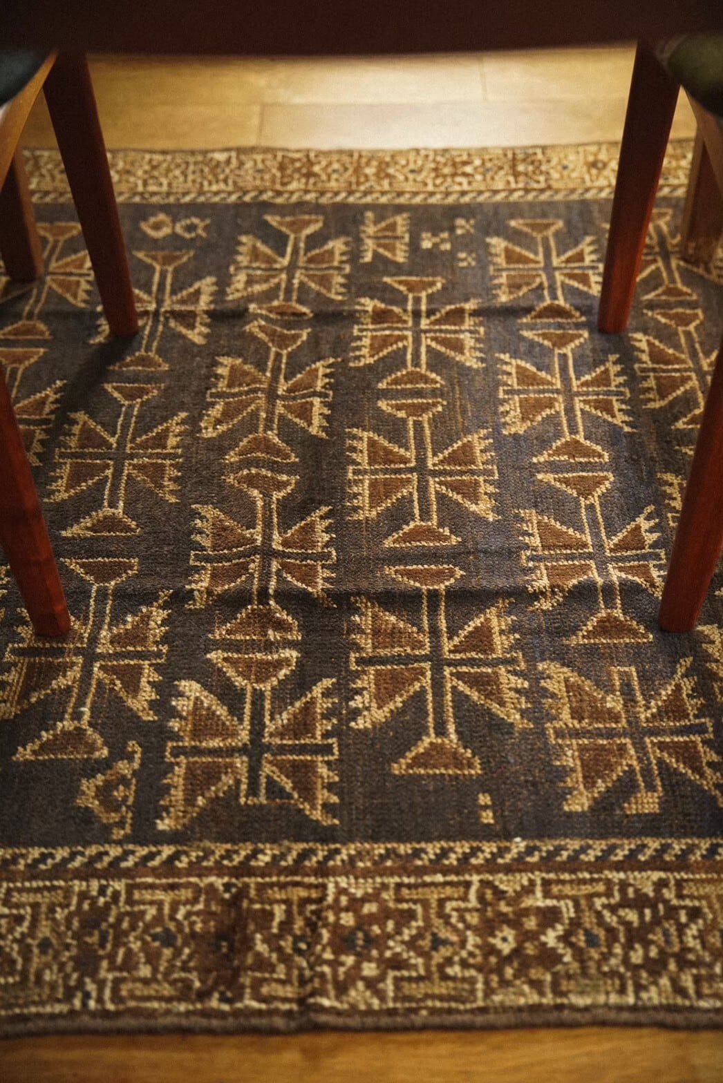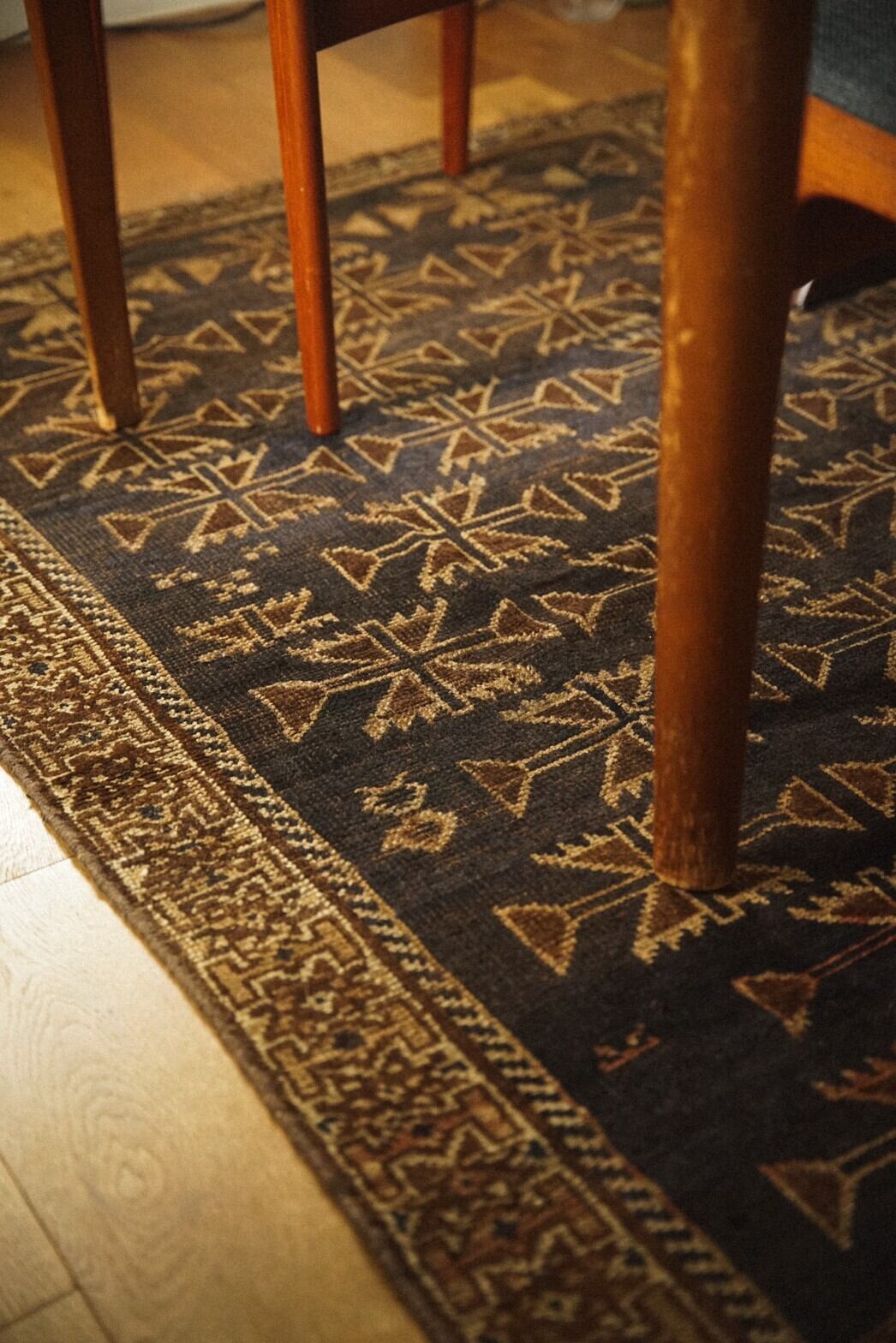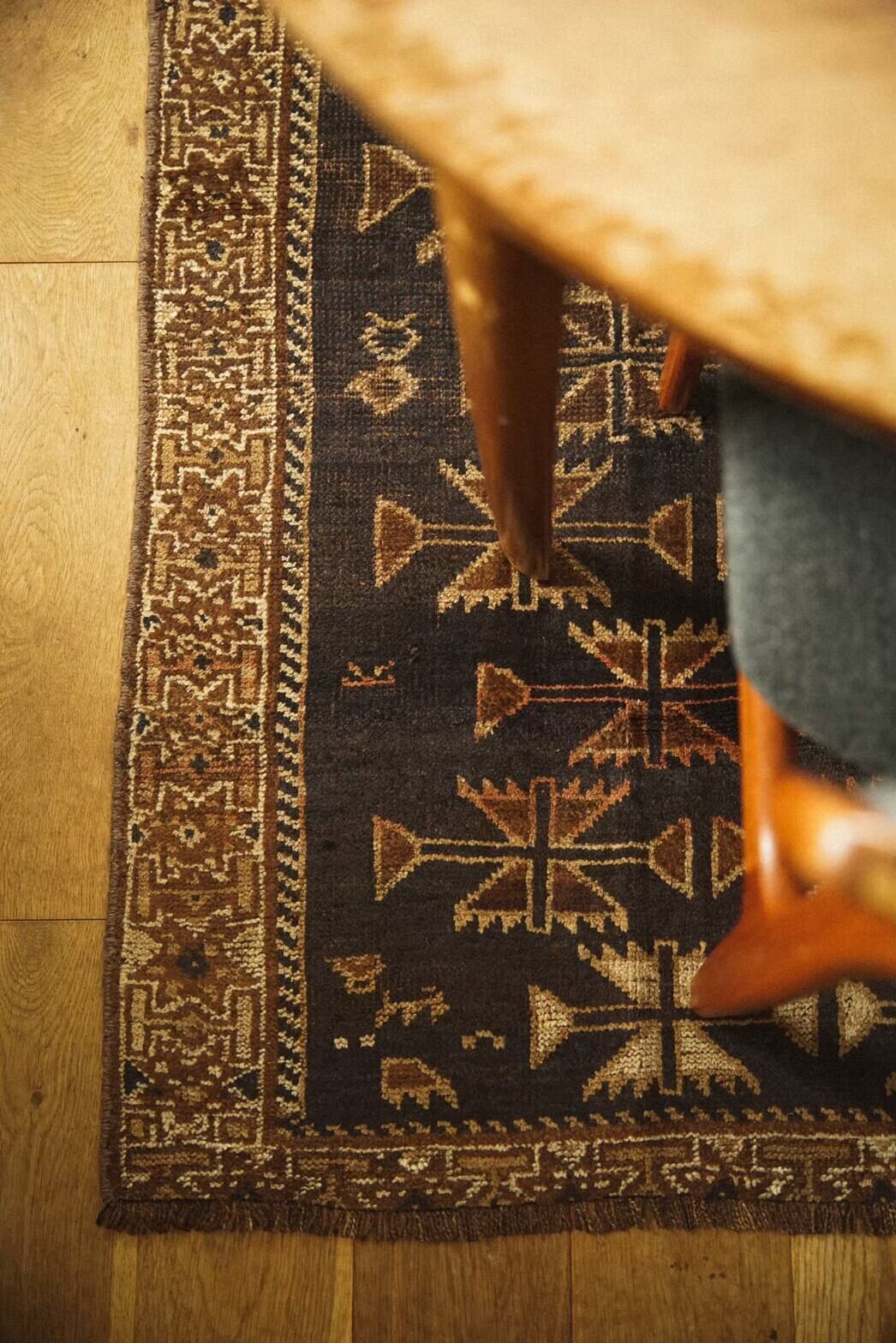 アフガニスタンとパキスタンの国境あたりの山岳地帯を遊牧するタイマニ族によって約90年前に織られたラグ。