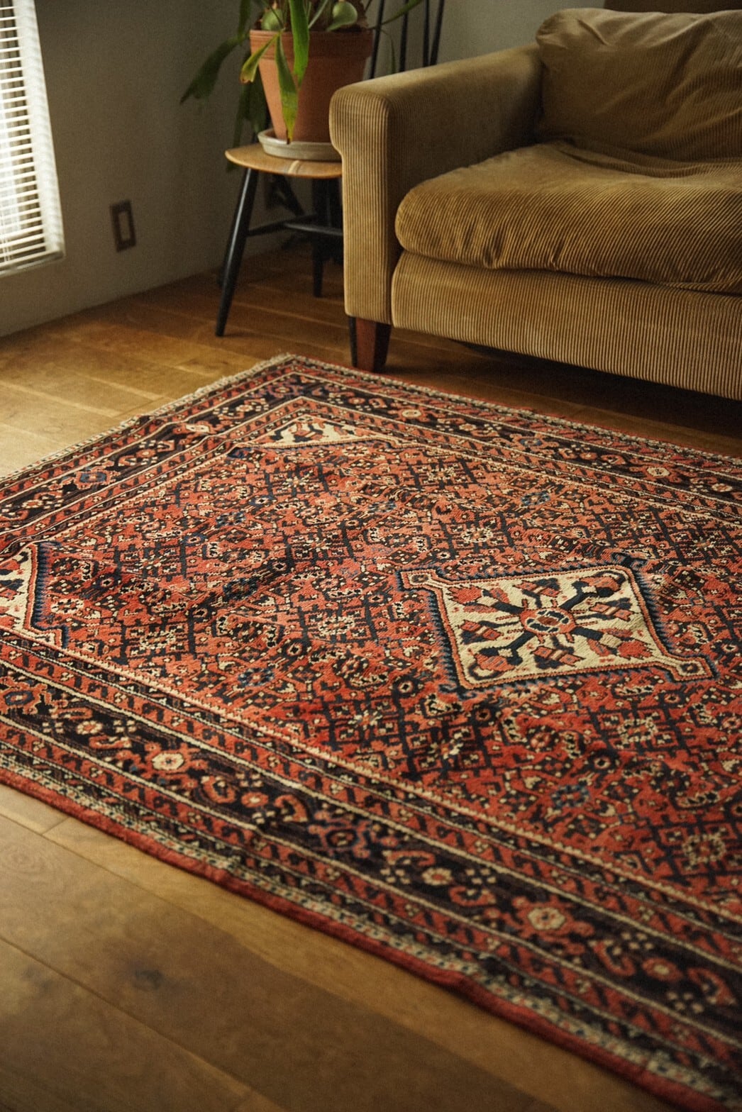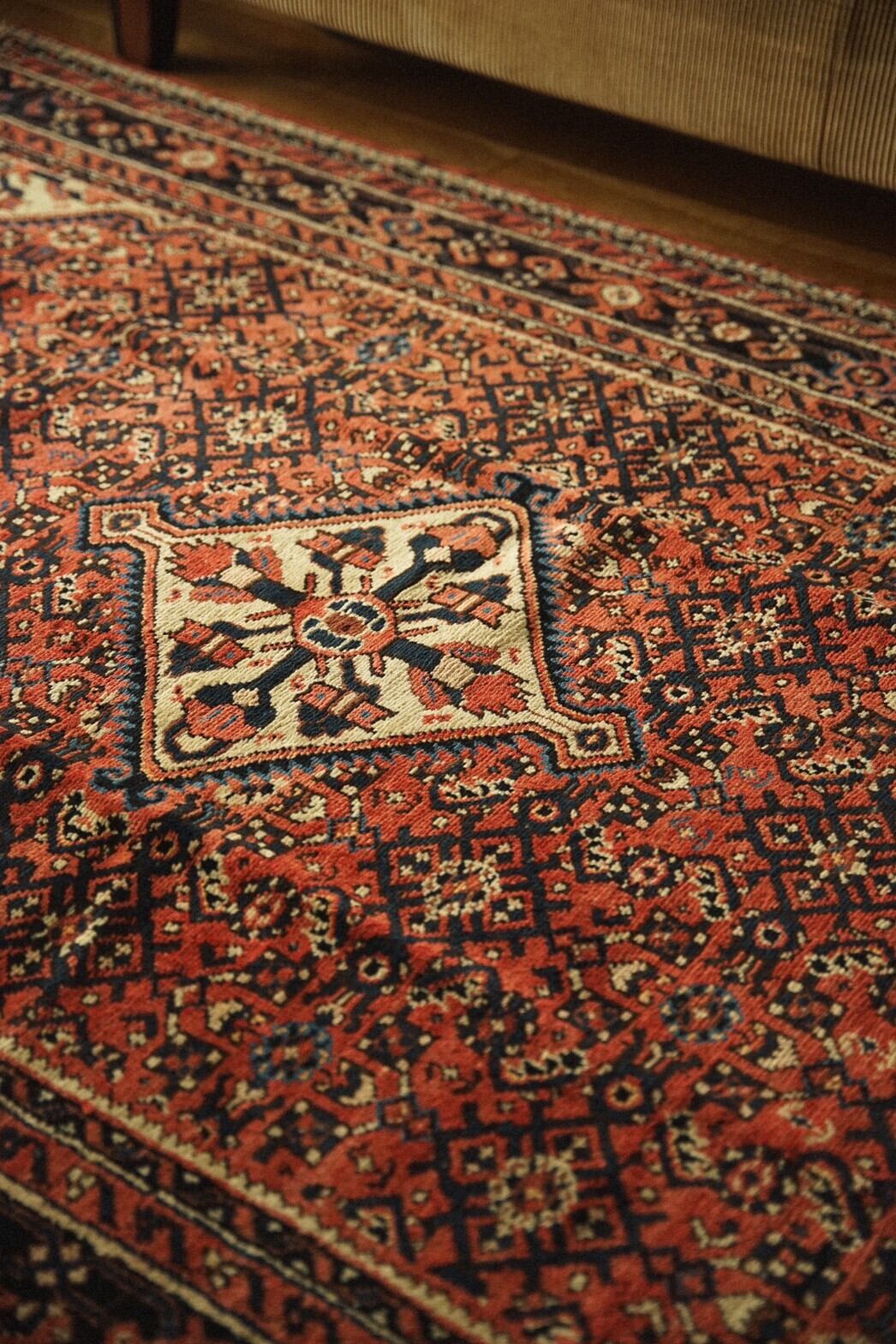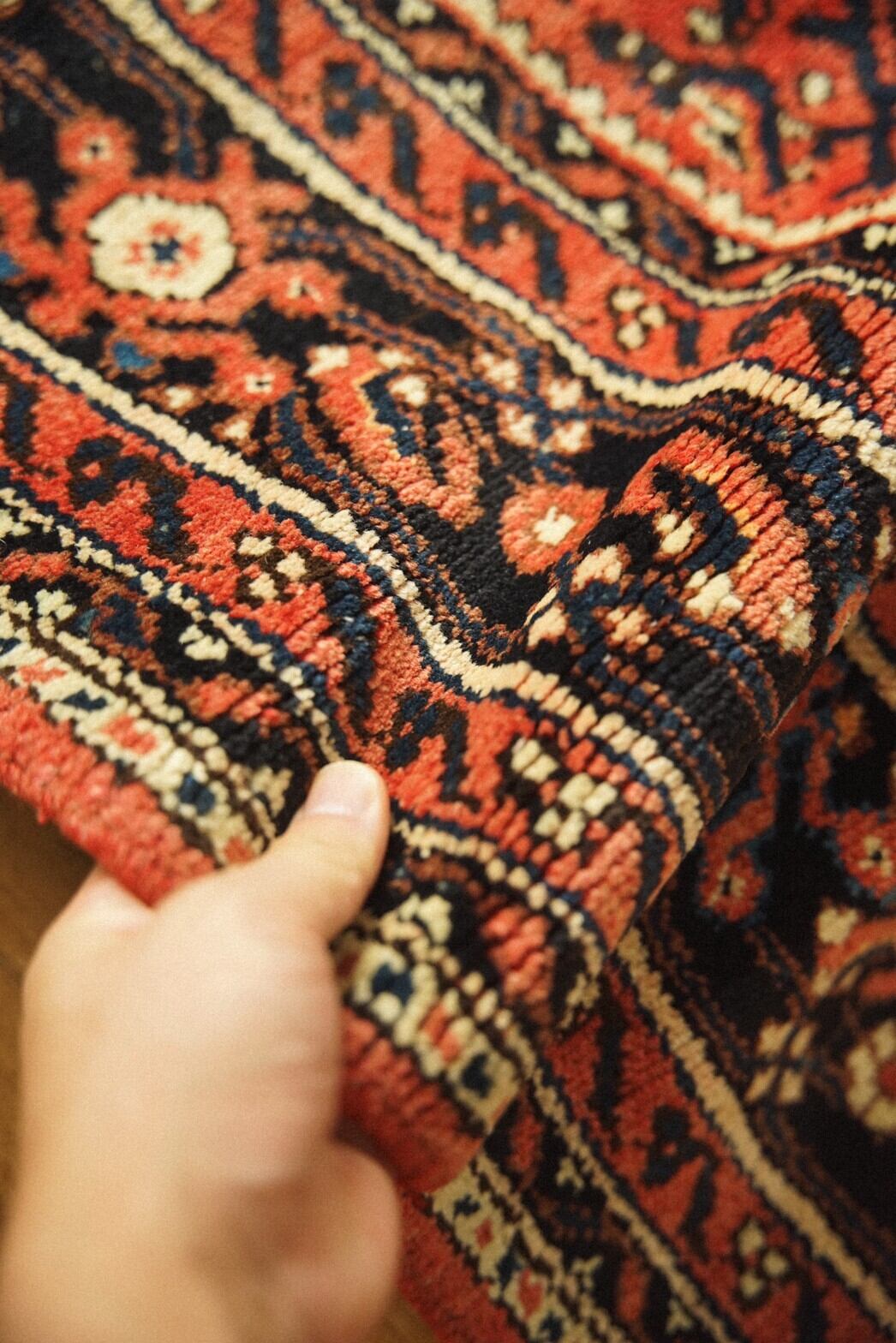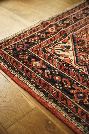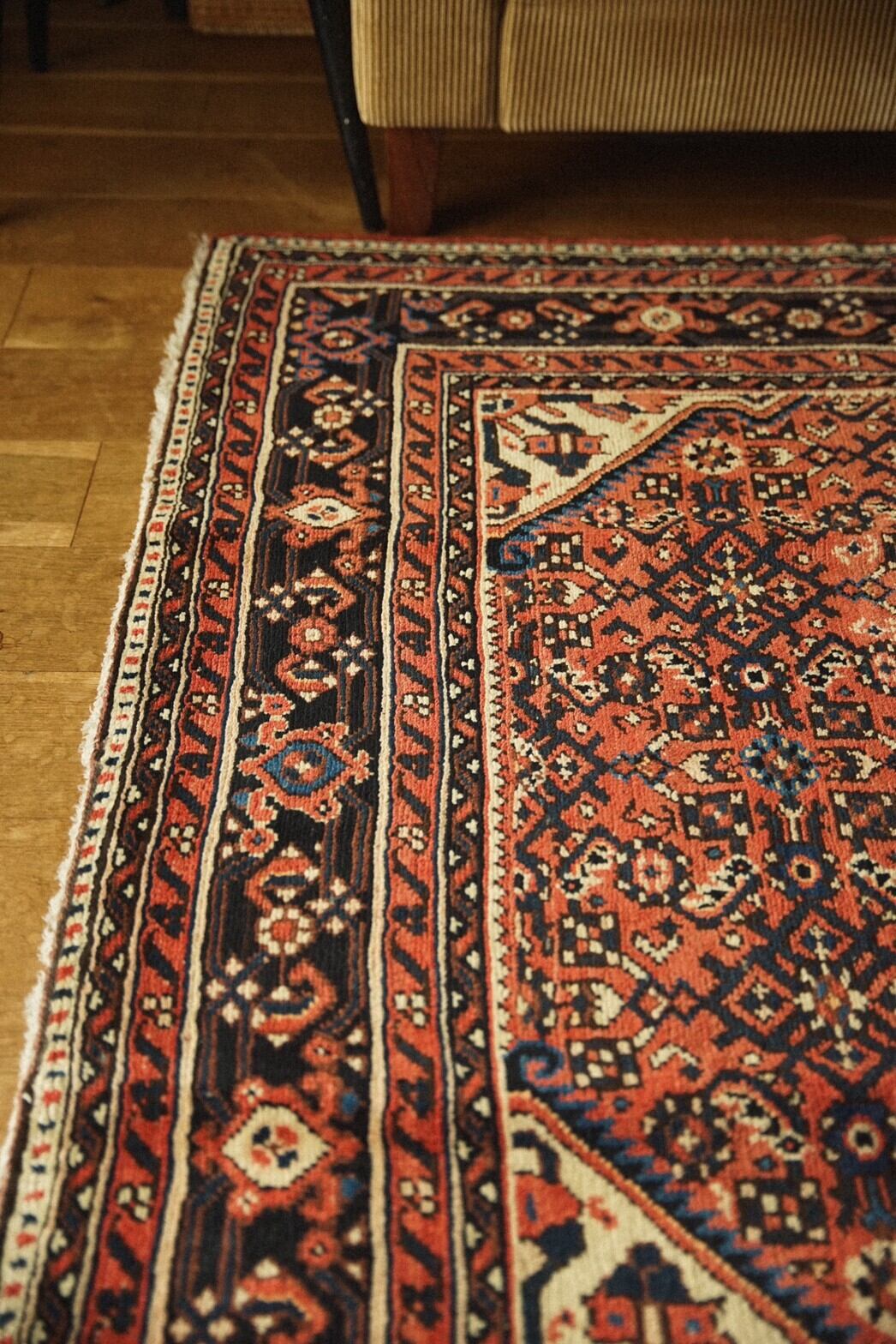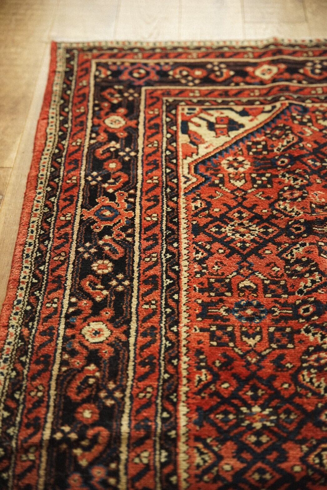 イラン西部に位置する古都ハマダン周辺で織られたラグ。