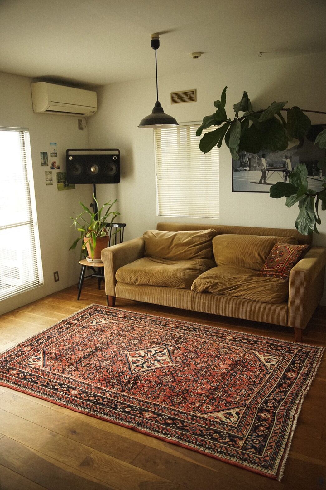 リビングのソファ前やダイニングテーブルの下、書斎やベッドサイドなどにピッタリのサイズ感です。
