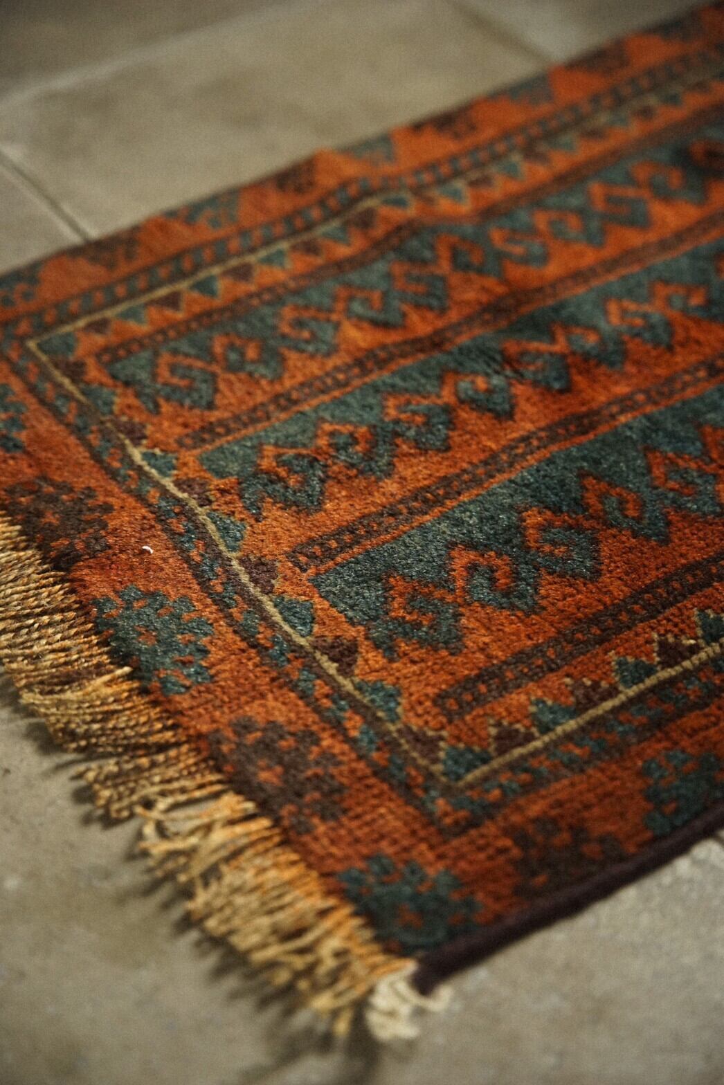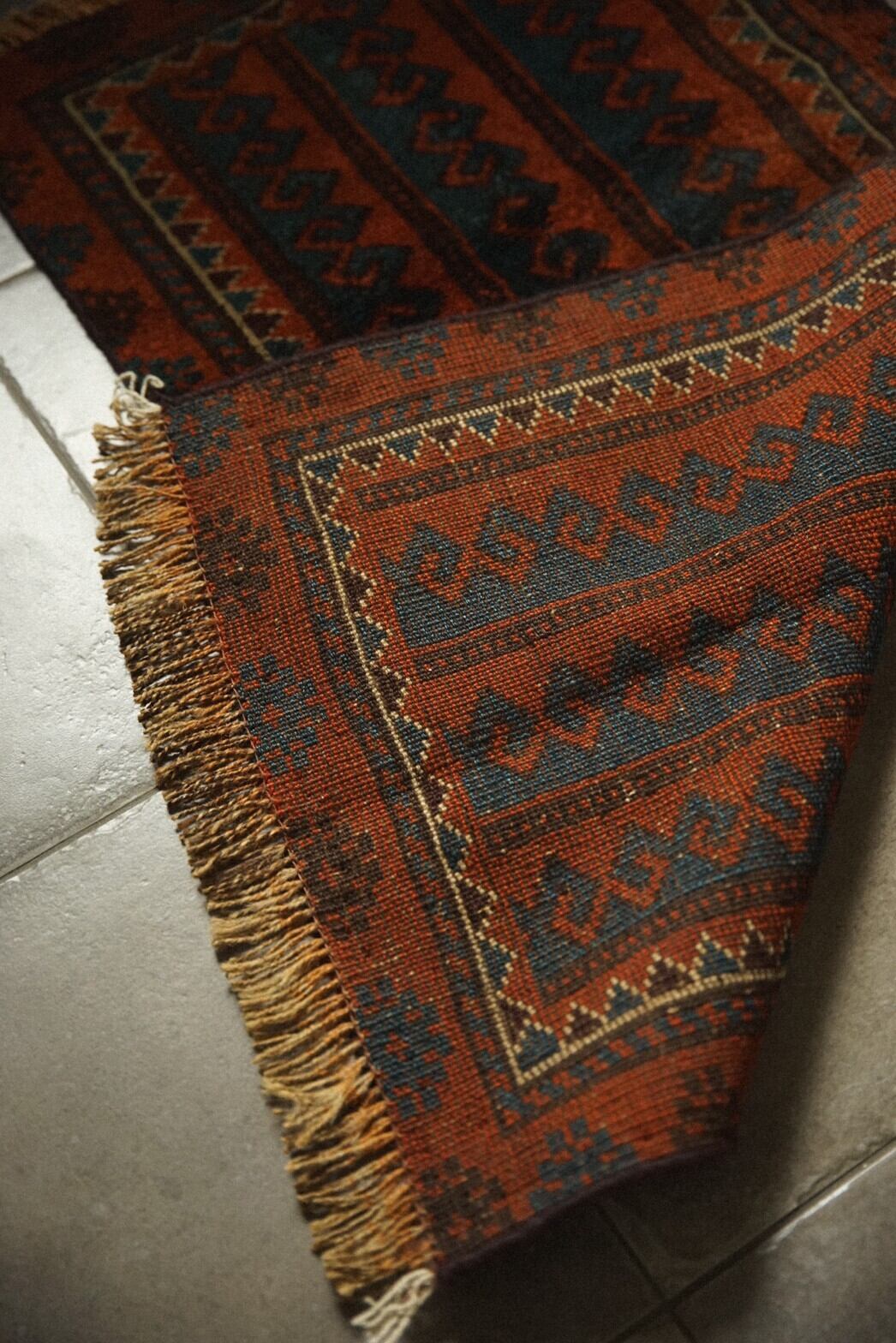 経年80年以上の艶が美しいシスタンバルーチラグ。