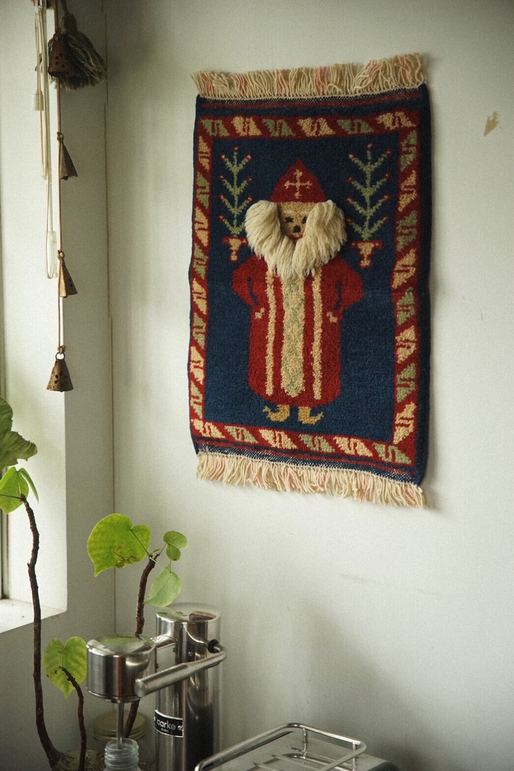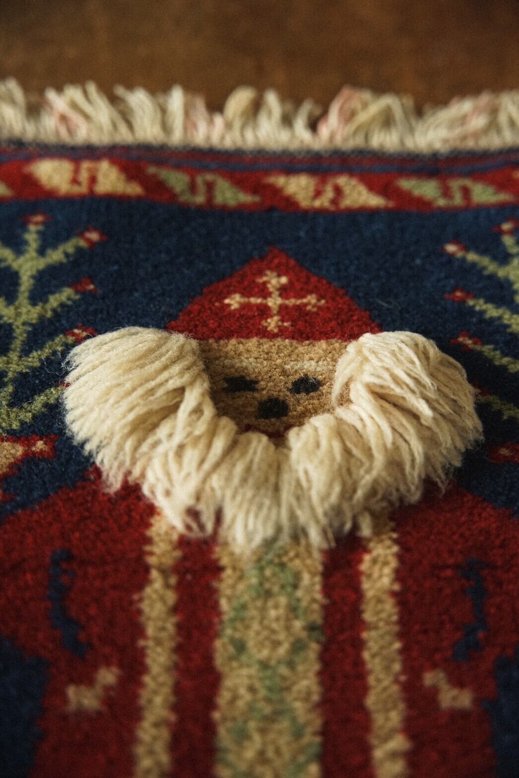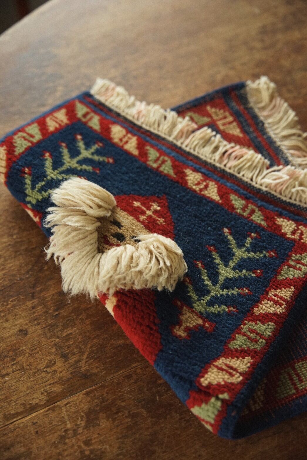 イラン産のとても可愛らしいサンタクロースのギャッベ。