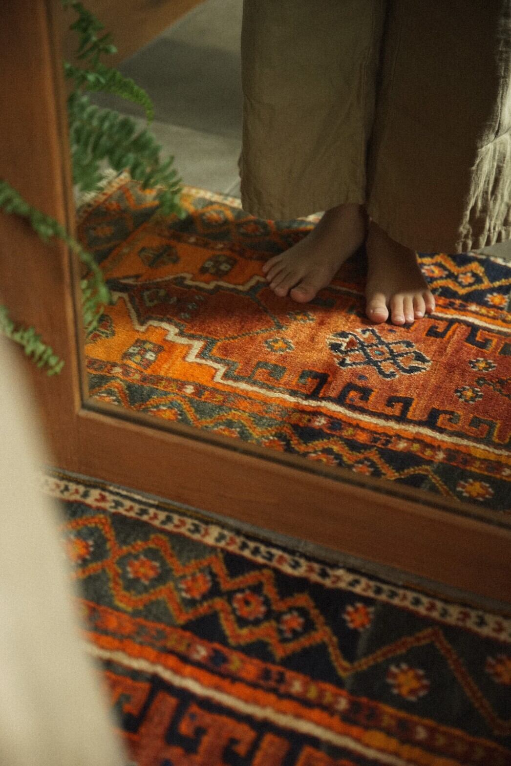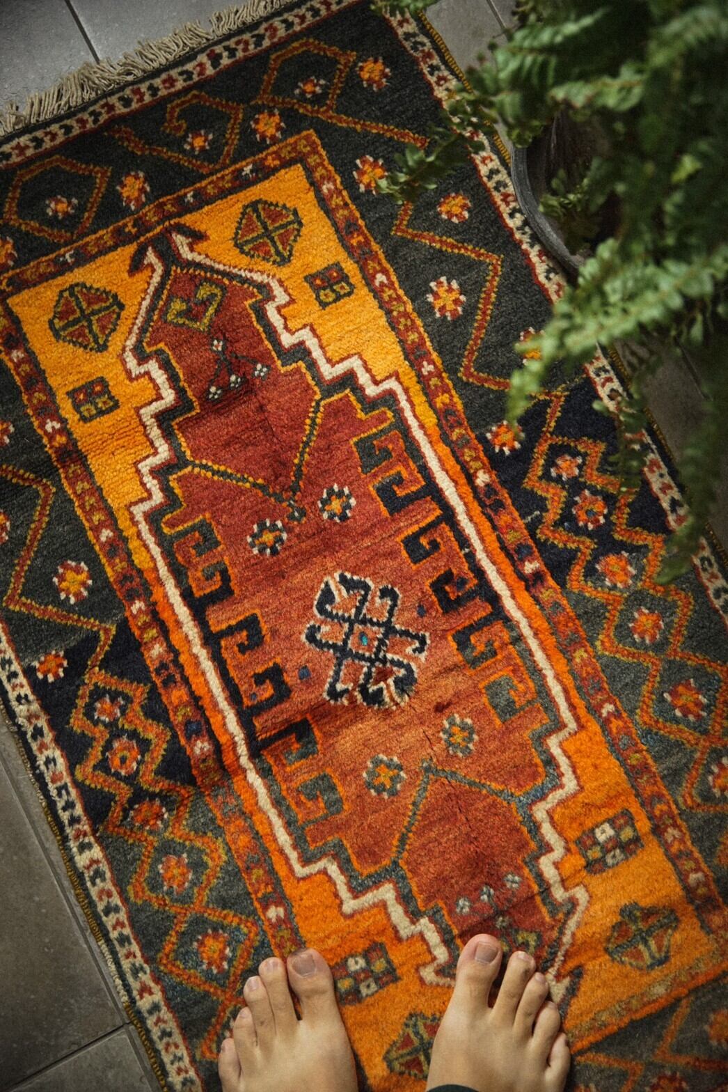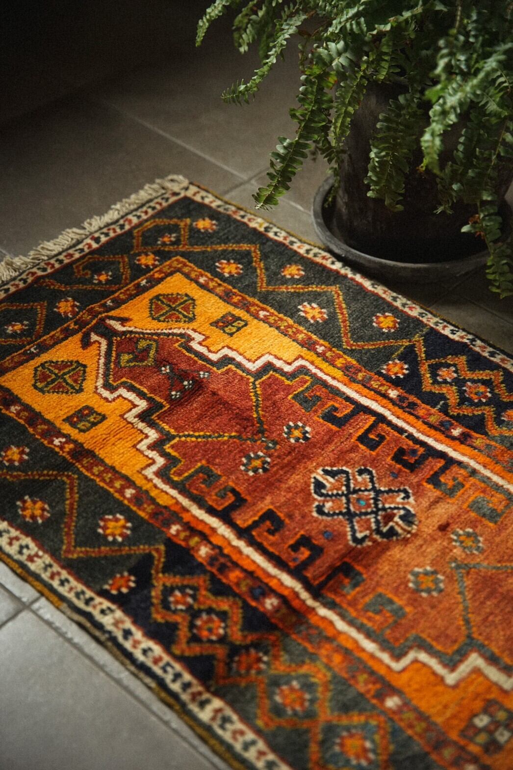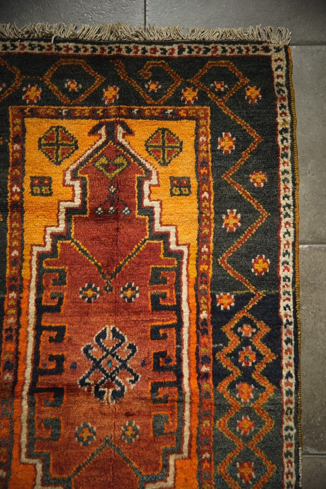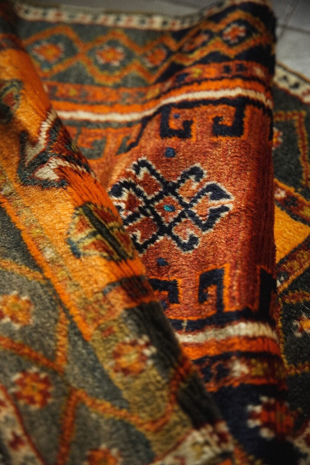 トルコのアナトリア地方で織られたヤストゥク(枕)と呼ばれる袋状のものの裏面を外して1枚のラグに仕立ててもらいました。