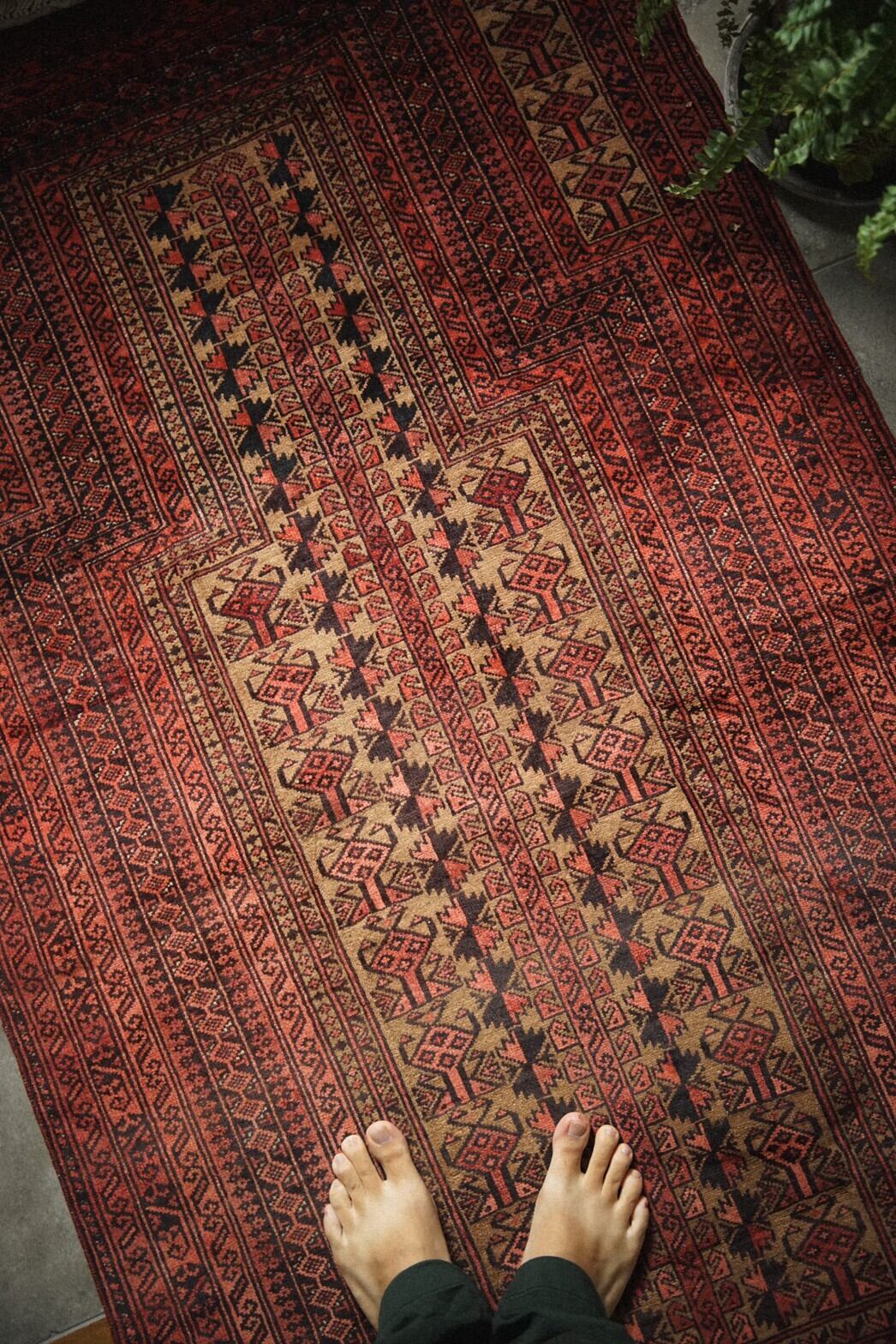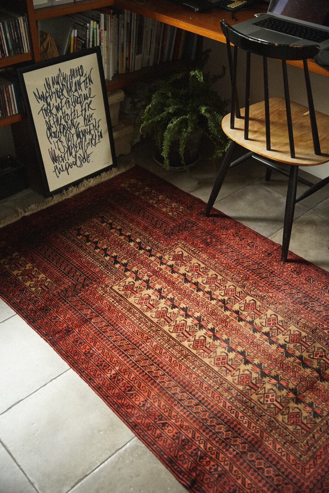 ダメージもなくグッドコンディション。リビングやソファ前、デスクの下やキッチンにちょうどいいサイズ感です。