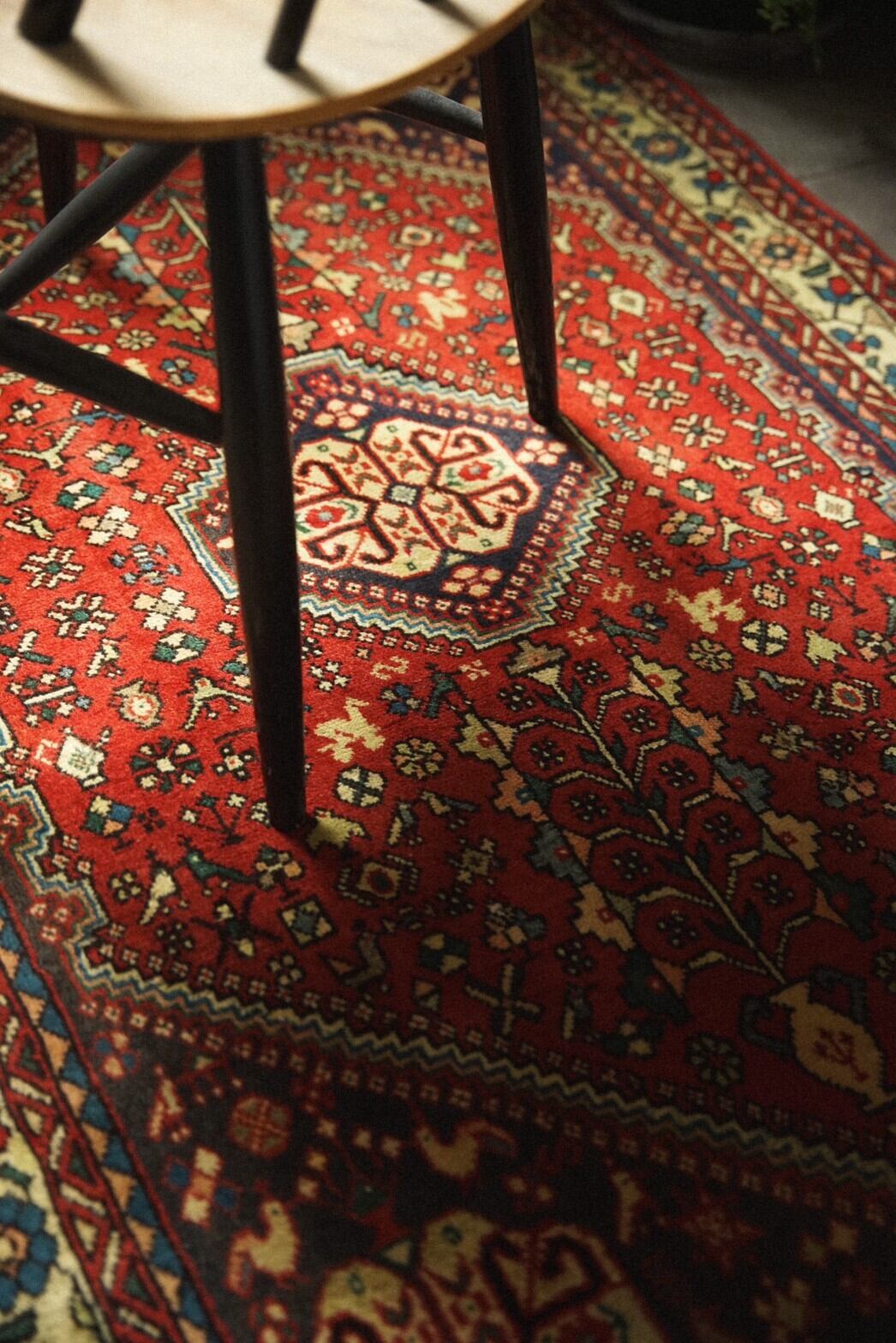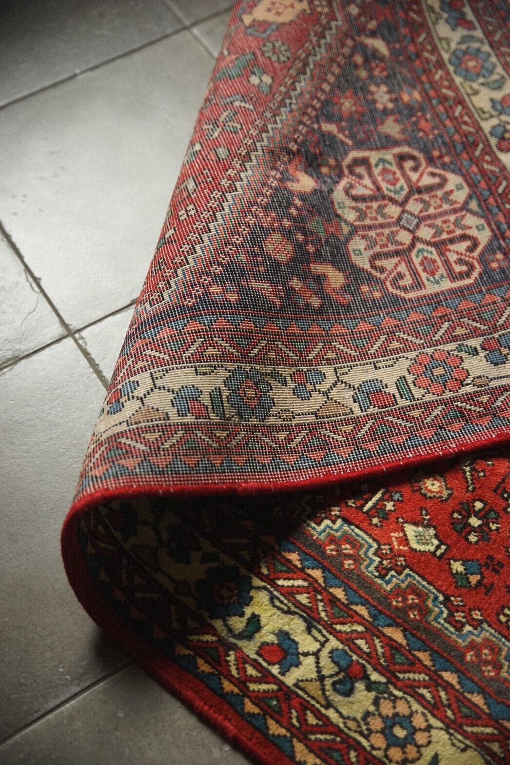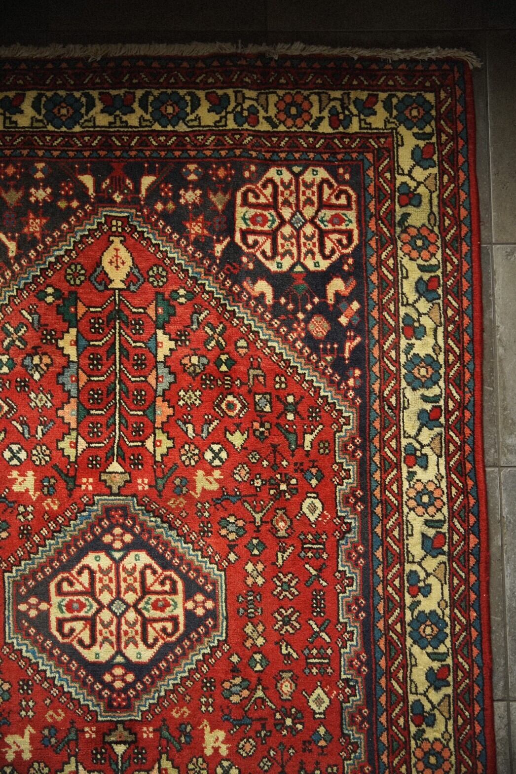 イラン西部に位置する絨毯の集積所として有名な古都ハマダン周辺で織られたカシュクリデザインのラグ。