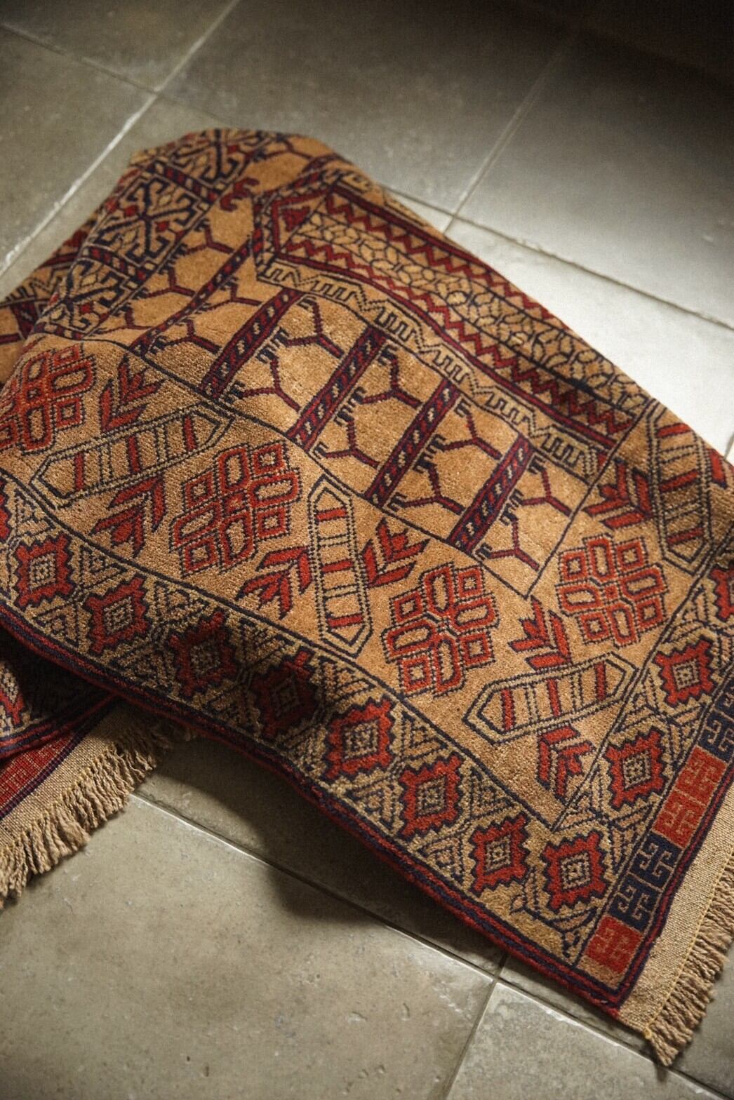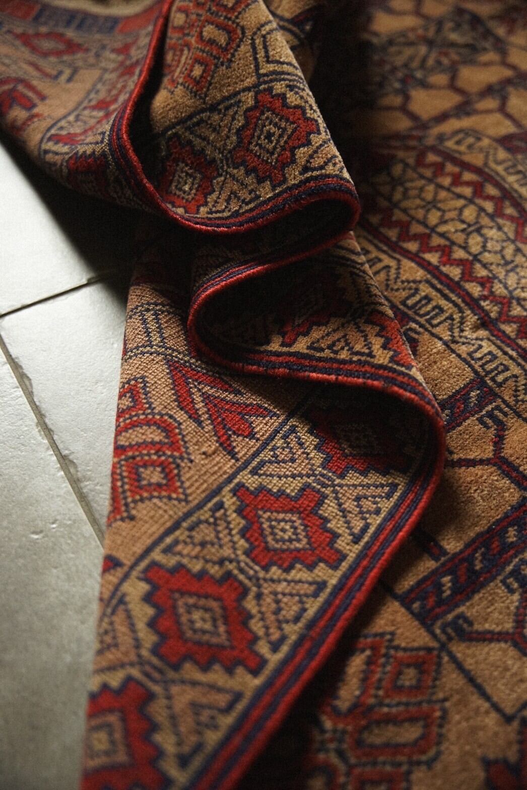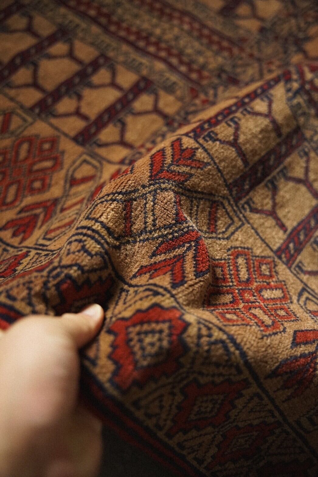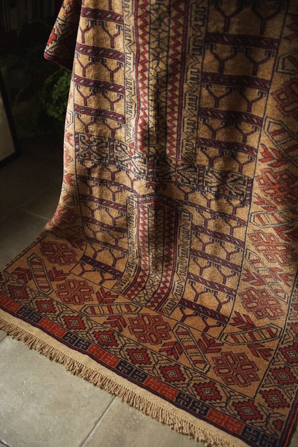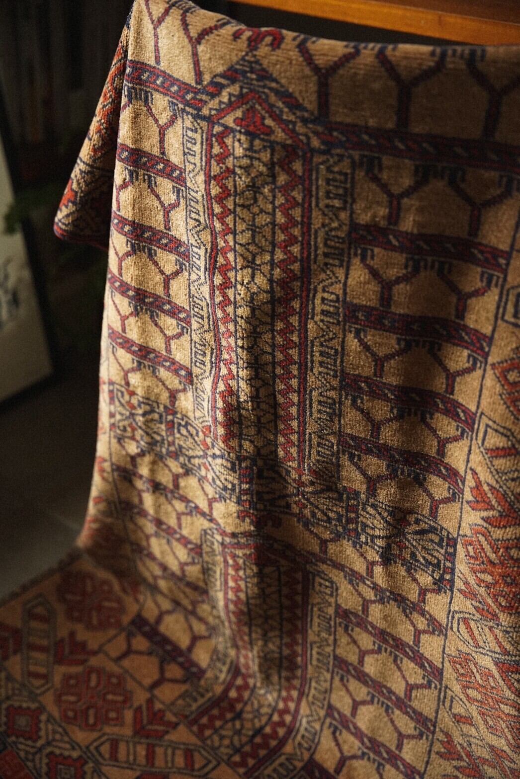 トルクメン族によるテントの仕切りやドアに掛けるエンシやパルダと呼ばれるデザインのラグ。経年30年程度の比較的新しいものなのでとても状態はよく、柔らかで撫でるだけでうっとりと気持ちの良いトルクメン族の織りの技術の素晴らしさを堪能できる一枚。