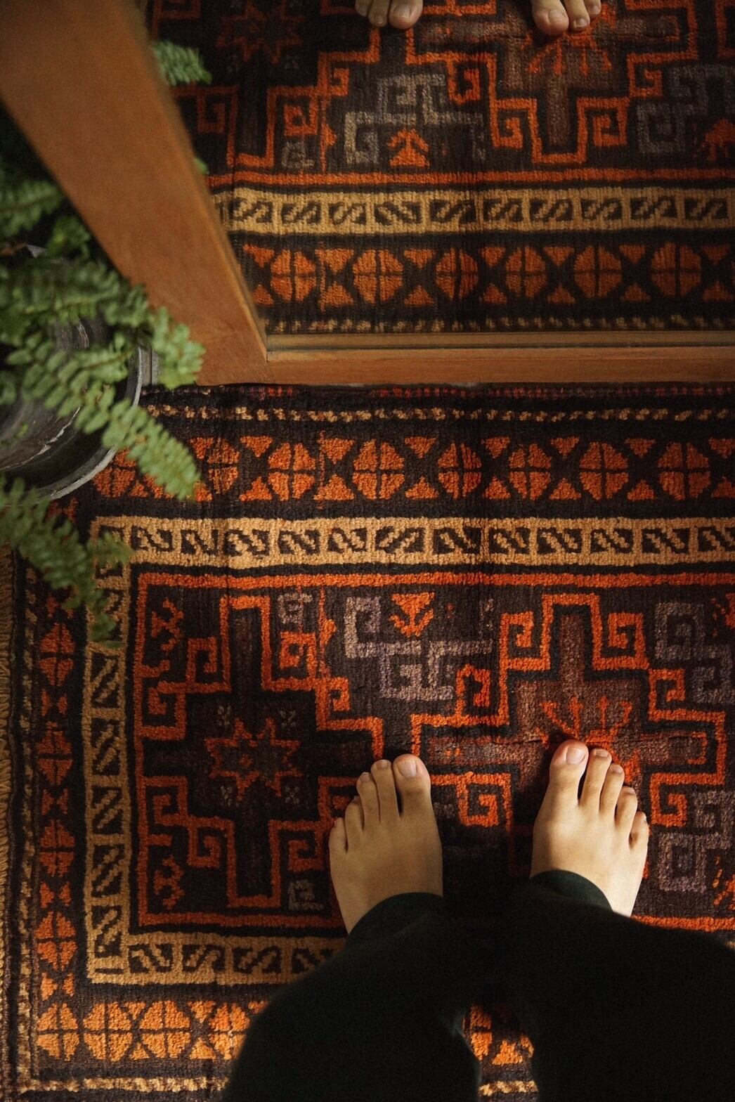 バーリシトと呼ばれる家財や食材を入れたり、屋内ではクッションとして使用される袋状のものをラグに仕立ててもらいました。