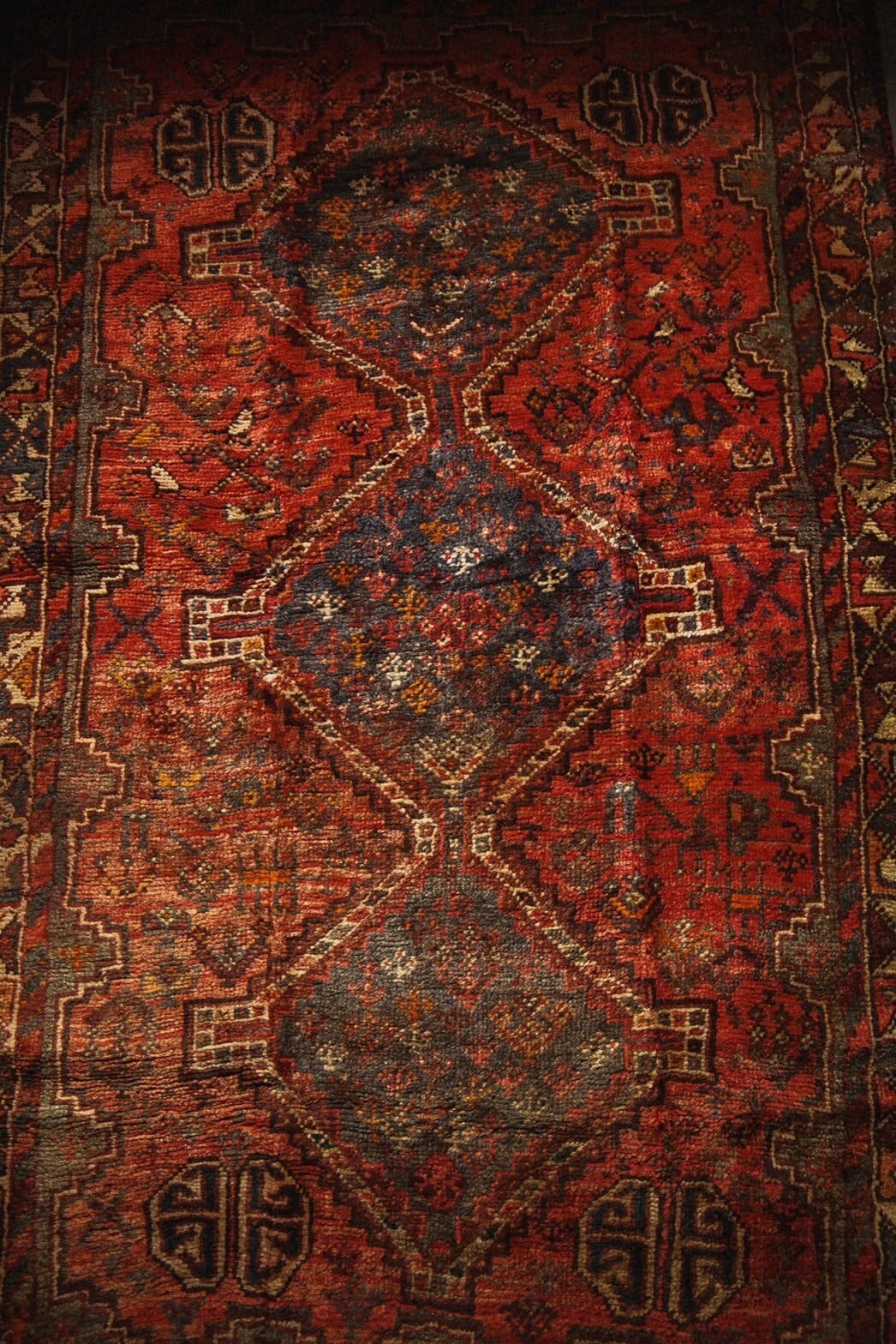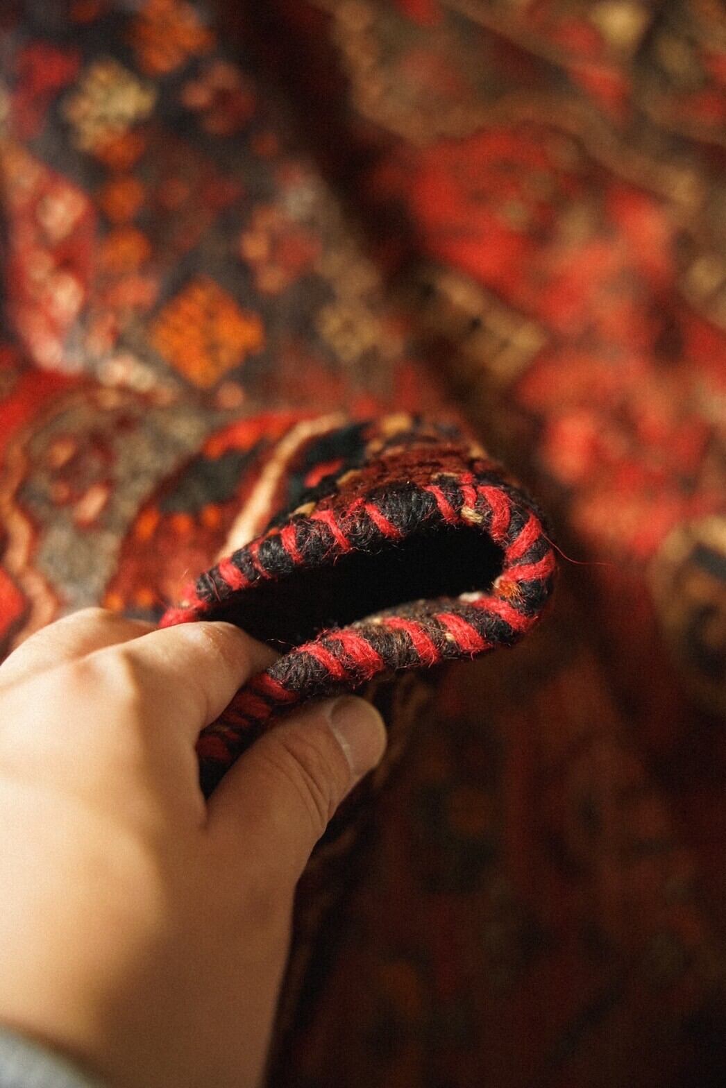 ラグ全体には手毬のような可愛らしいお花や草木、鳥や動物などカシュガイ族の伝統的なモチーフがたくさん描かれており、眺めるだけで楽しいですよ♪