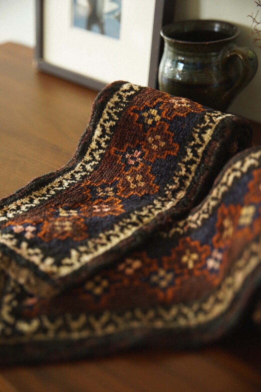 ネックバンドと呼ばれるラクダ用の飾りをミニラグに仕立ててもらいました。