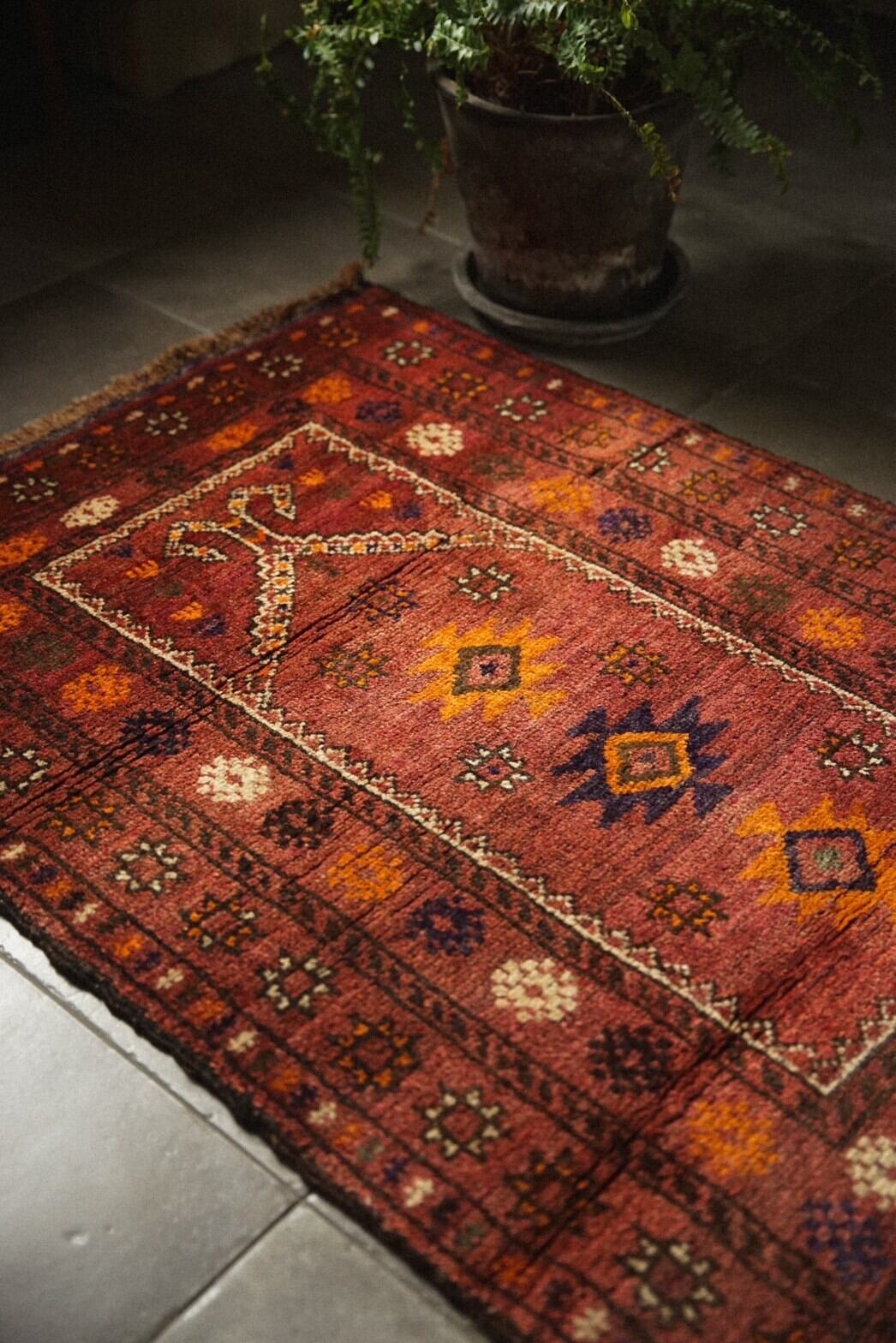 1970年代に織られたアフガニスタン産のバルーチ族による祈祷用のラグです。