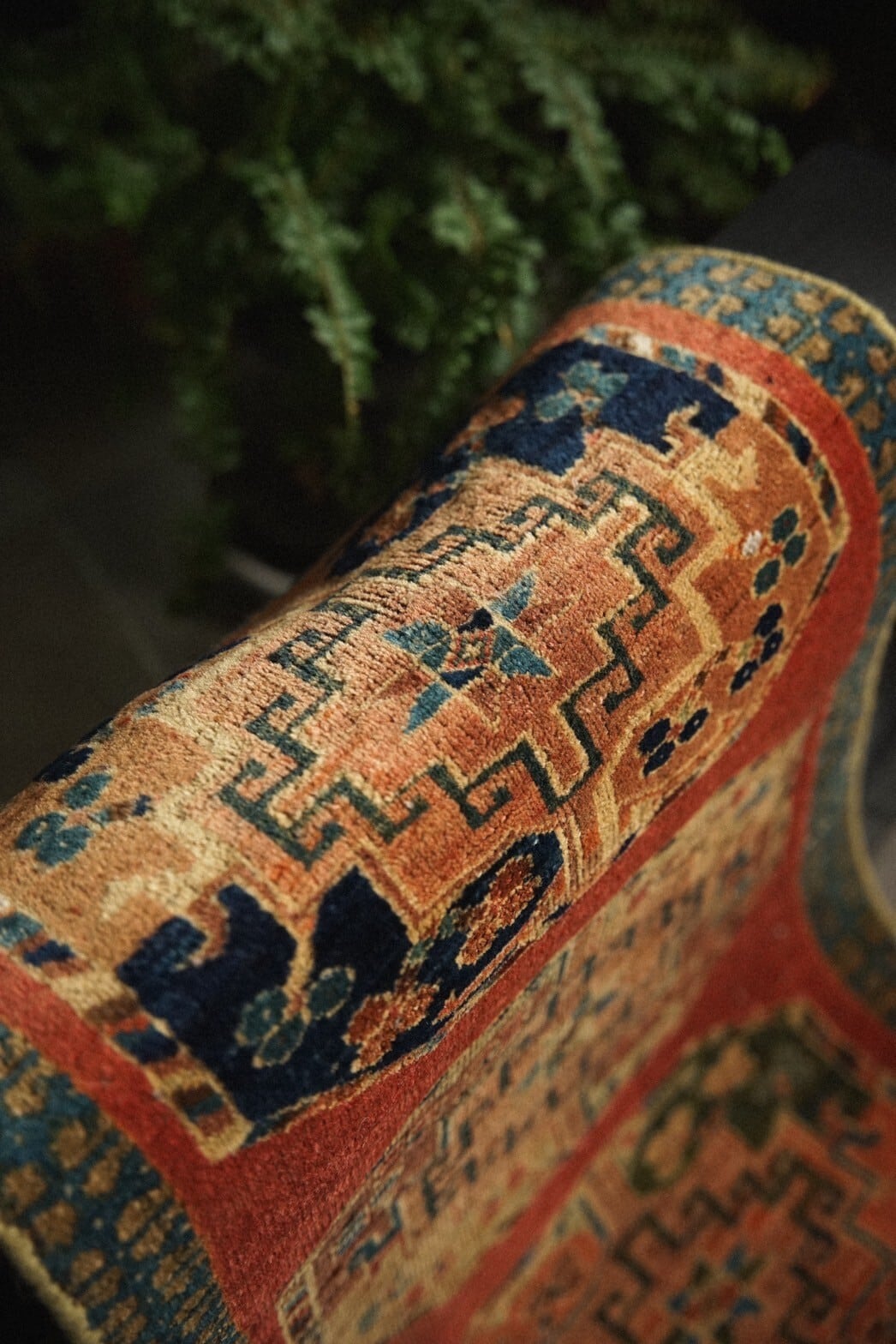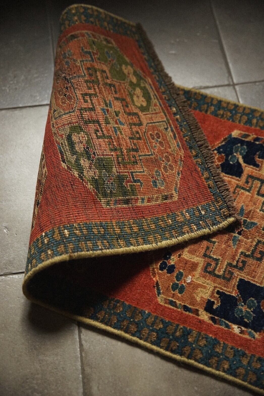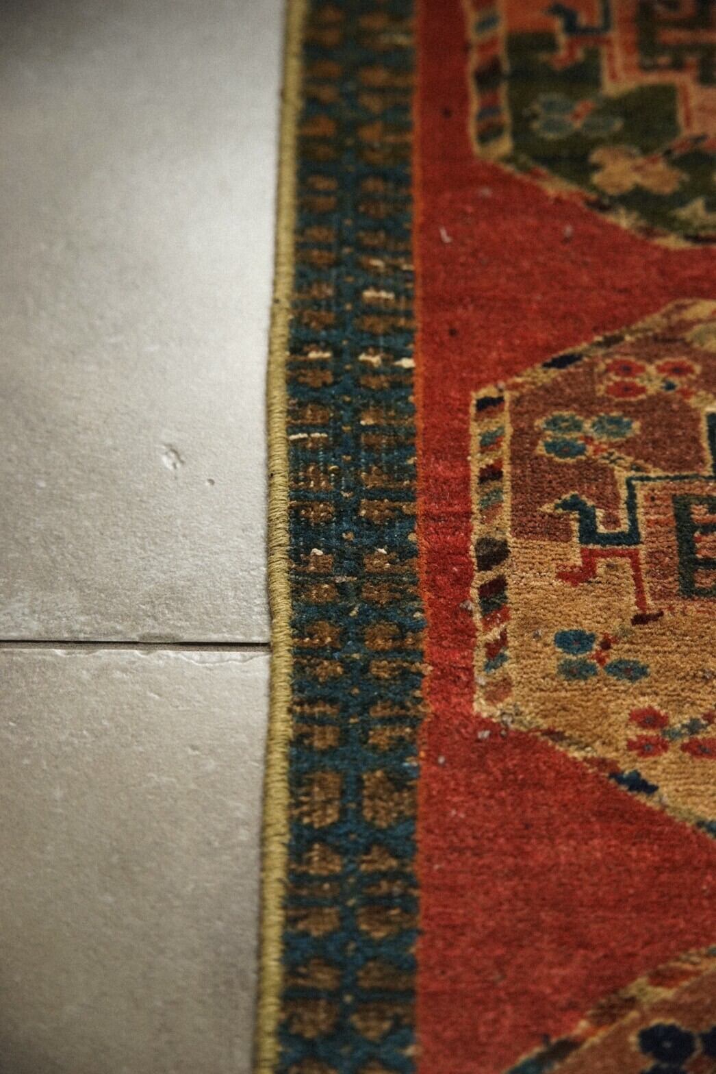 珍しい色味とフィルパイと呼ばれる大きなギュル紋様が描かれたユニークな一枚。