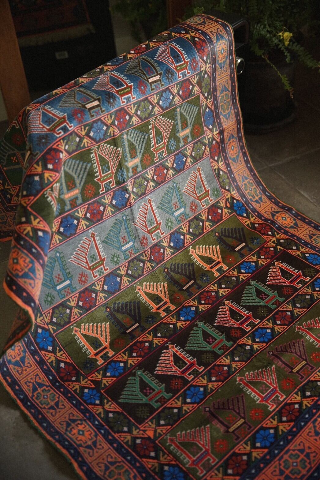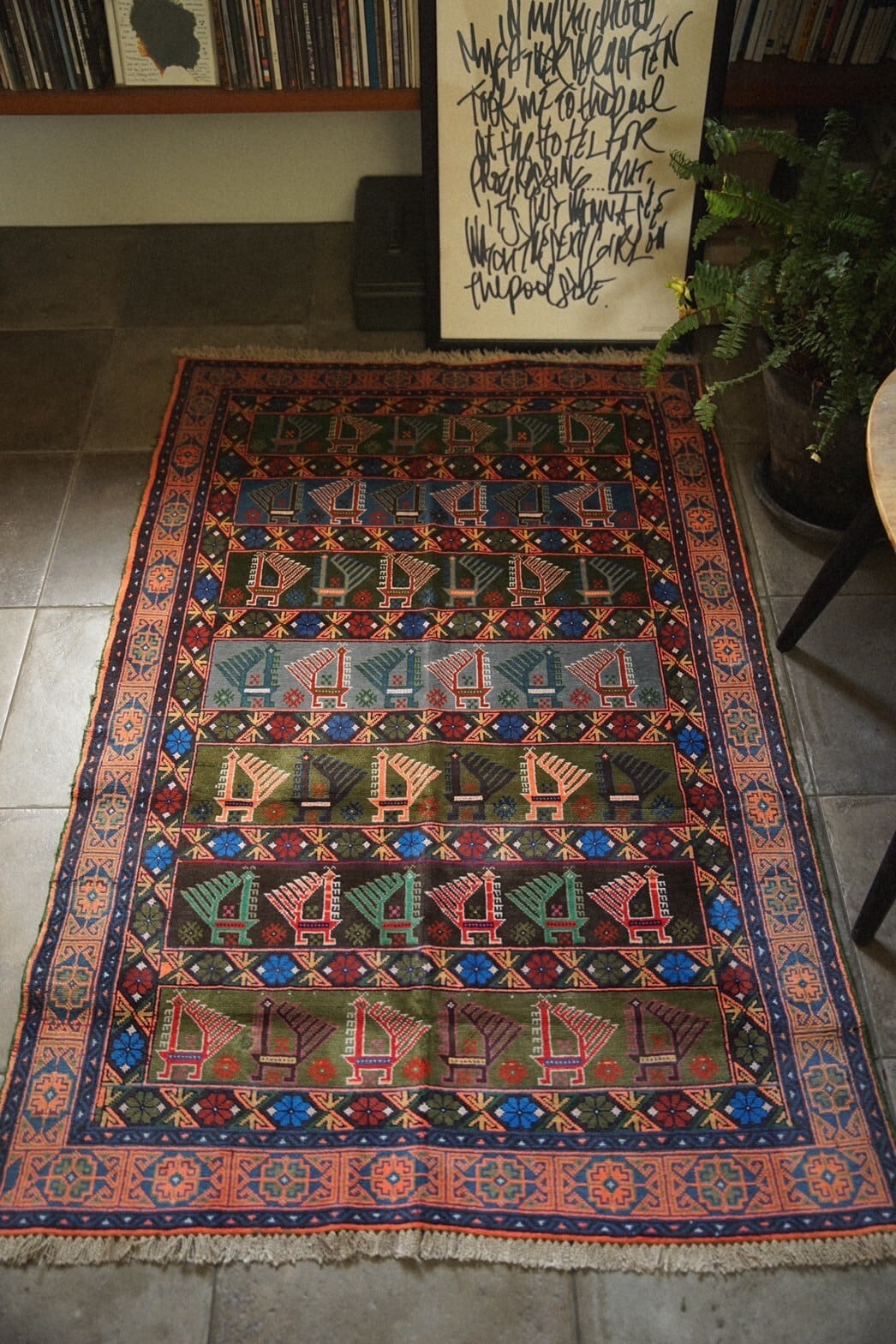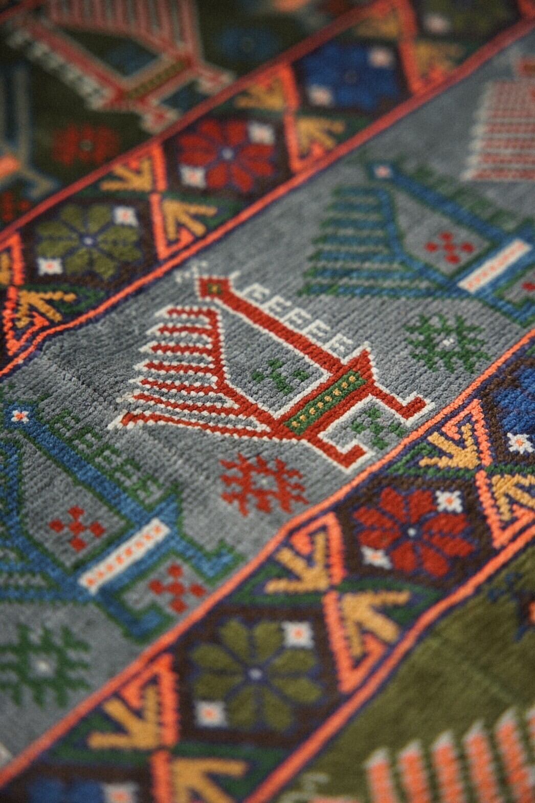 スマックキリムで有名なシャーサバン族のデザインに影響を受けたデザインになっています。