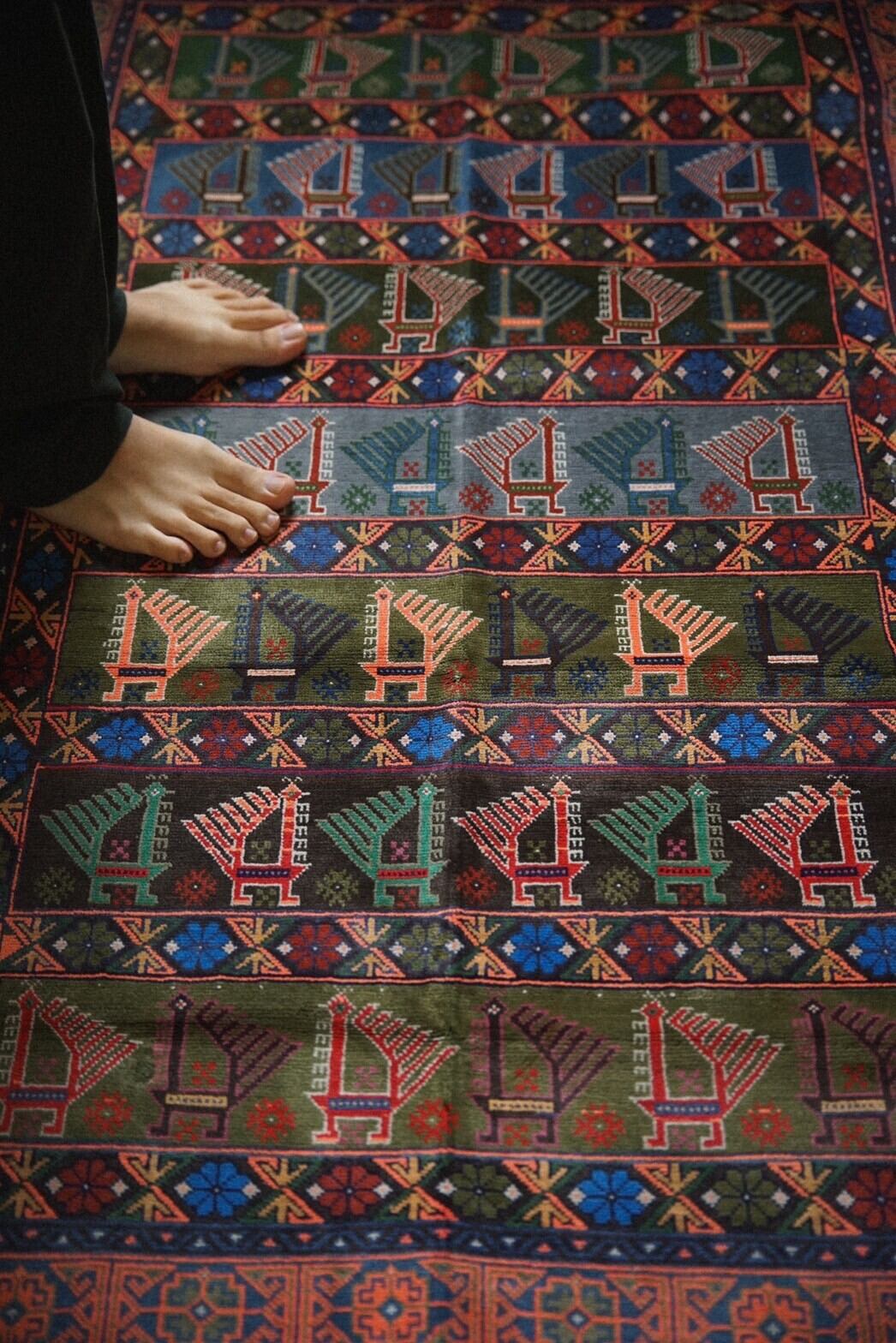 アフガニスタンの敷物としては珍しいシルク製で、経年20年程の若いラグのため状態もかなり良くパイルもとても綺麗です。