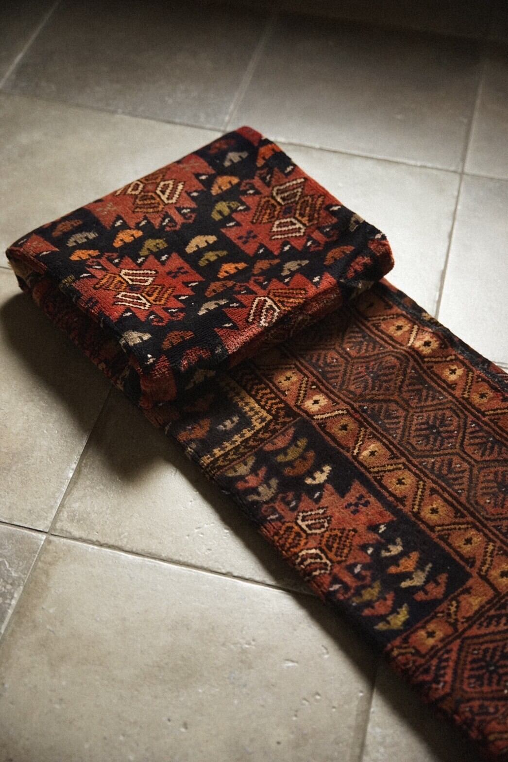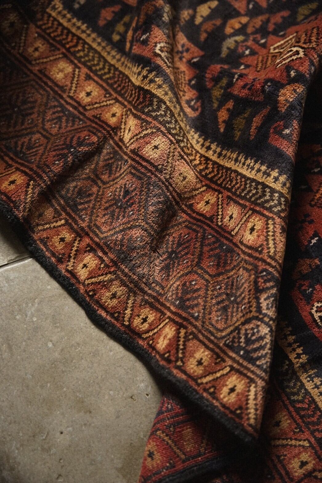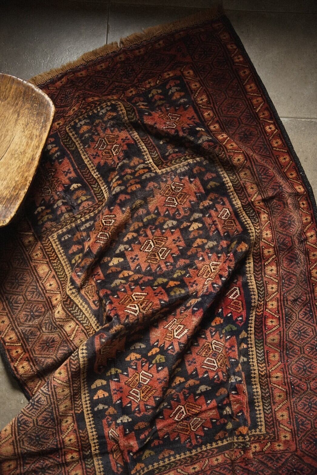 少し珍しいユニークなデザインと織り手のセンスを感じる色使いに個人的に惹かれた一枚です。リビングやソファ前、デスク下やベッドサイドなど使いやすいサイズ感。