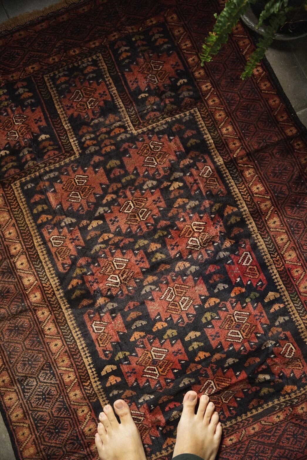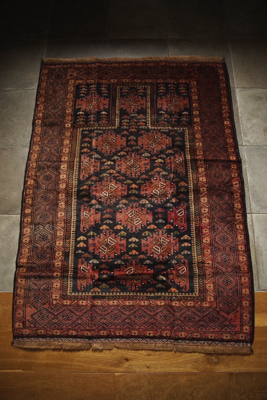 1980年代に織られたMashwani Familyデザインのバルーチラグ。