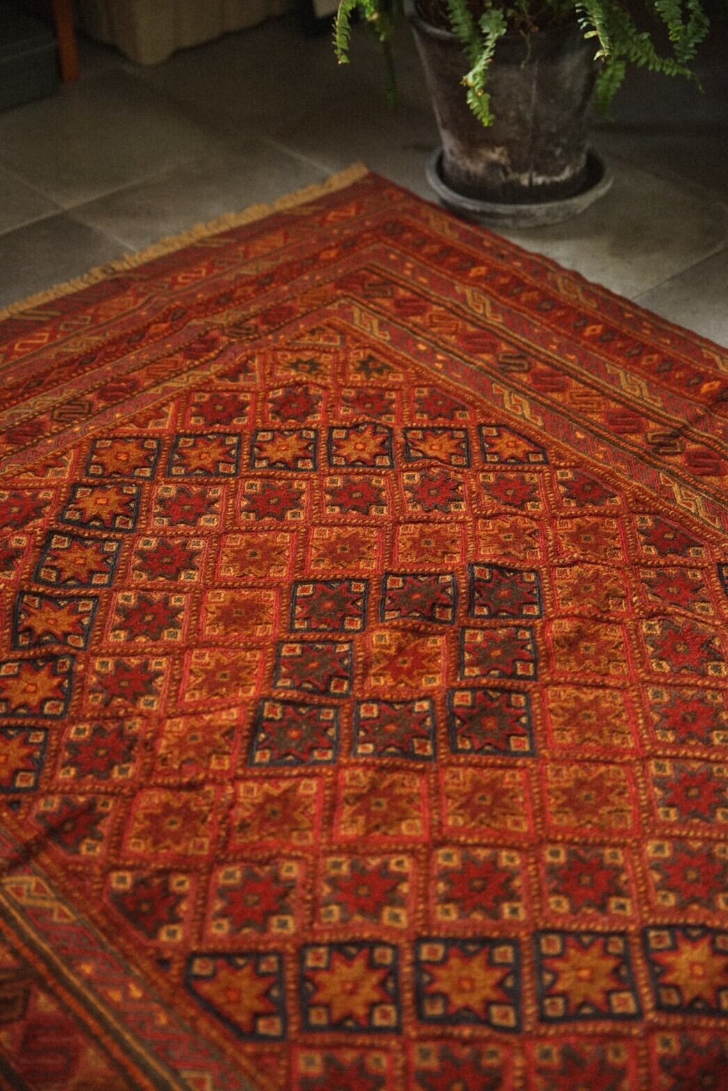 落ち着いた色合いが多くなる季節にこそパワーをもらえる赤系のラグはおすすめです。