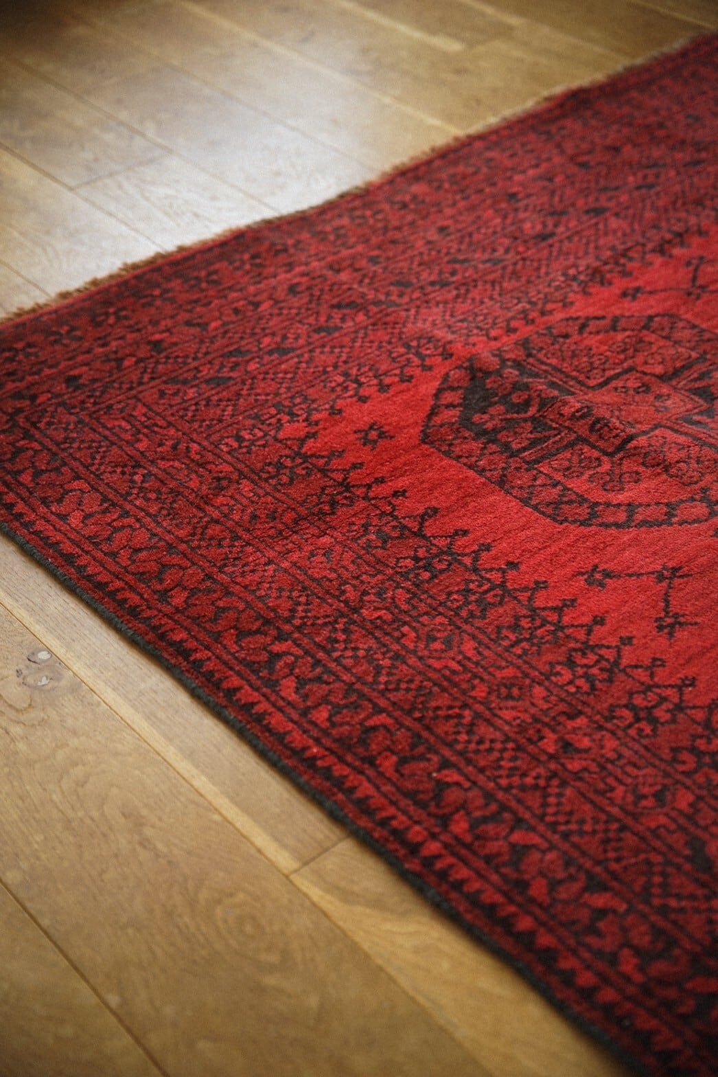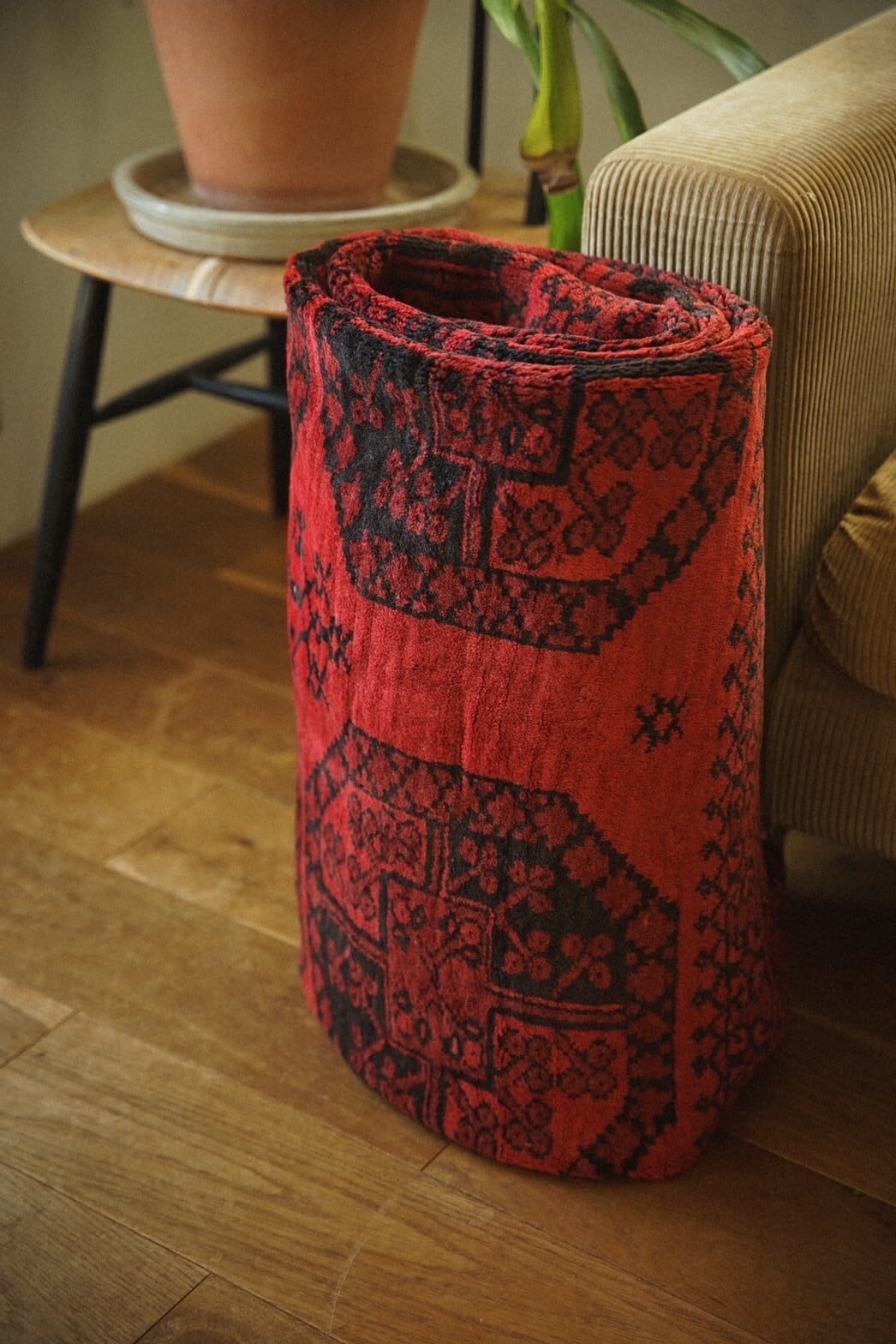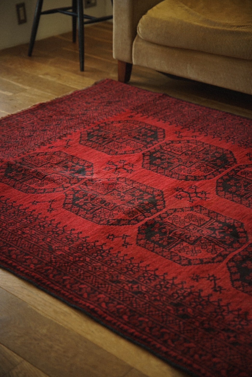 赤いトルクメンラグの美しさをたっぷりと堪能してください。