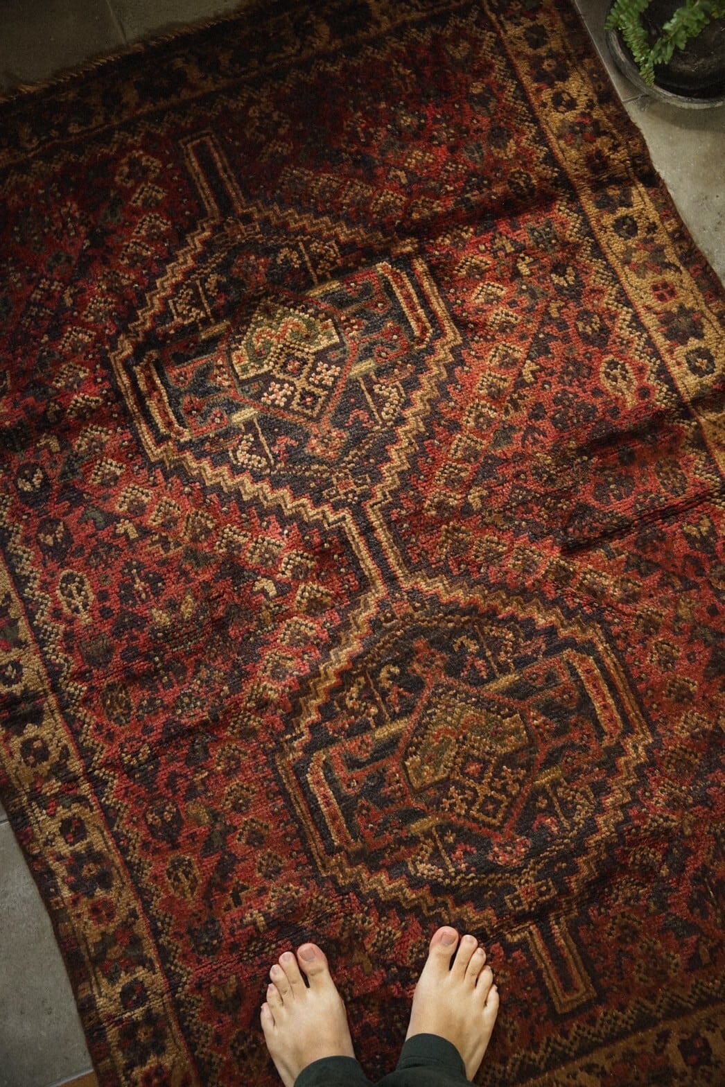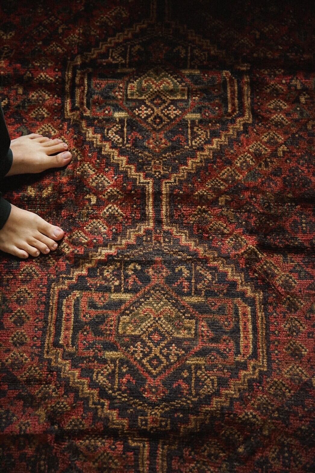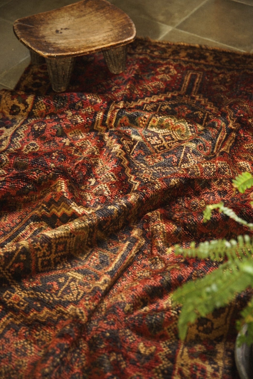 経年により深みのある色合いになり艶も増したヴィンテージラグの魅力が詰まった一枚。