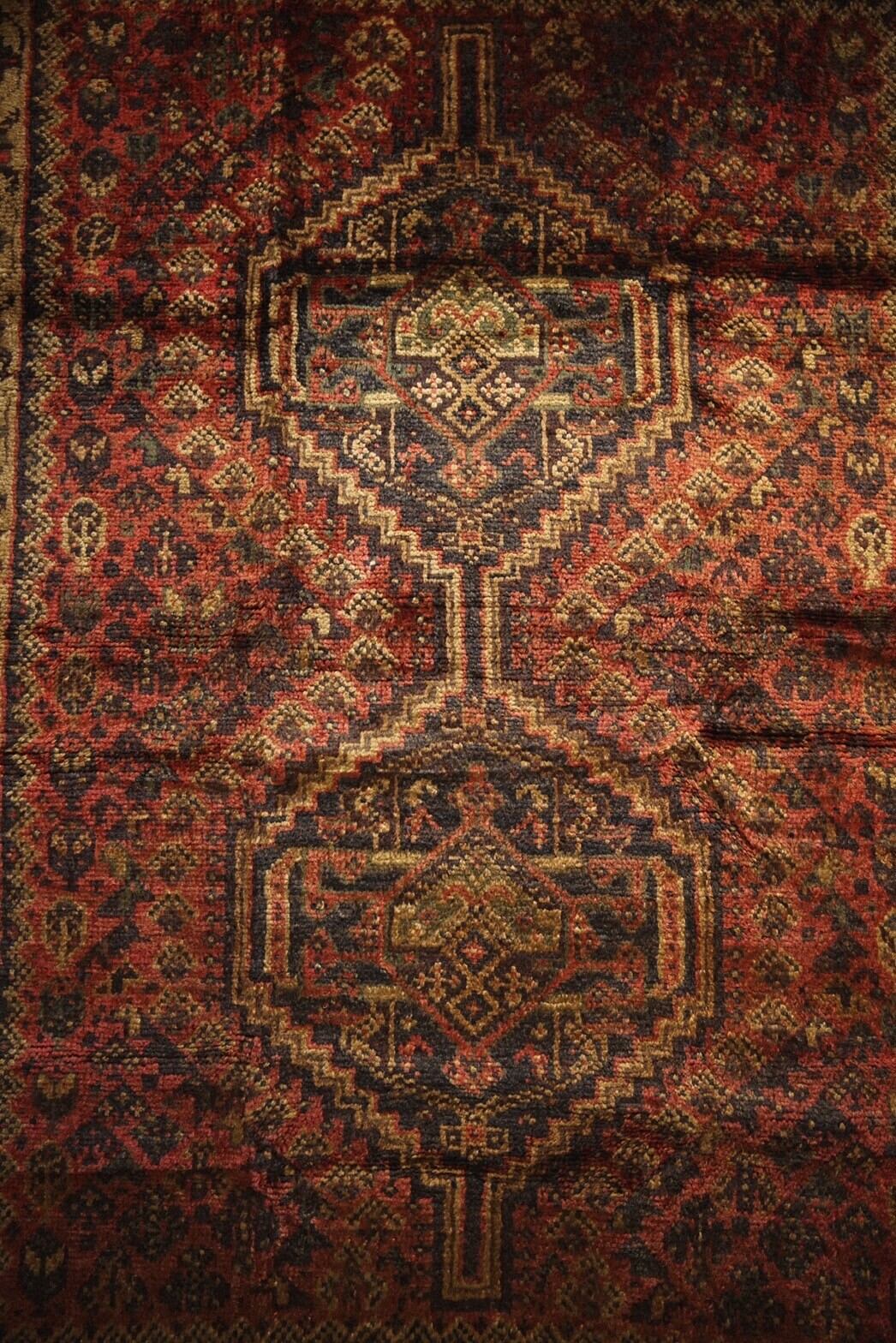 真ん中には力強いカシュガイメダリオン。そしてその周りには部族の伝統的なモチーフがたくさん織り込まれています。