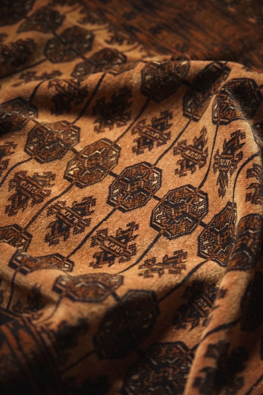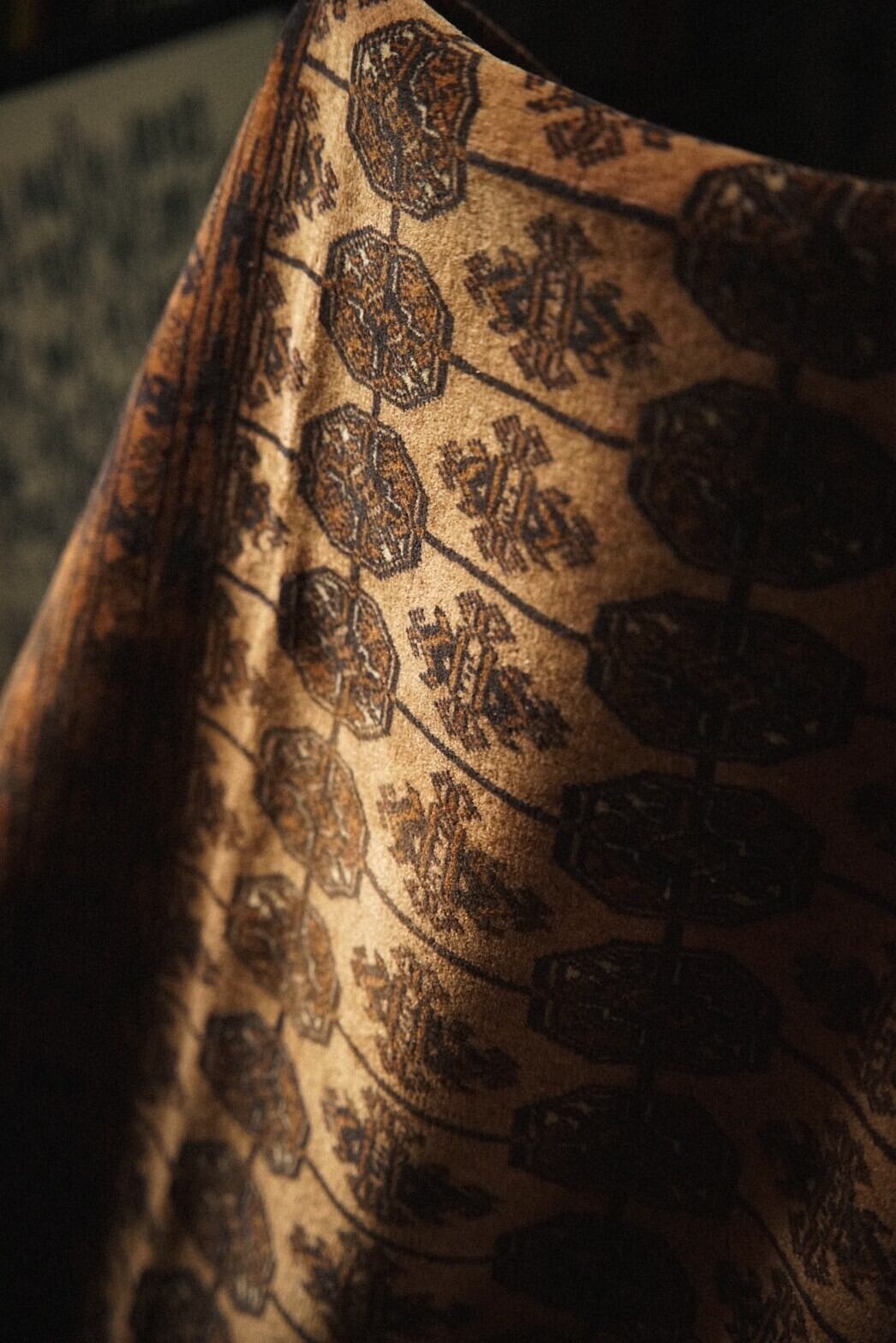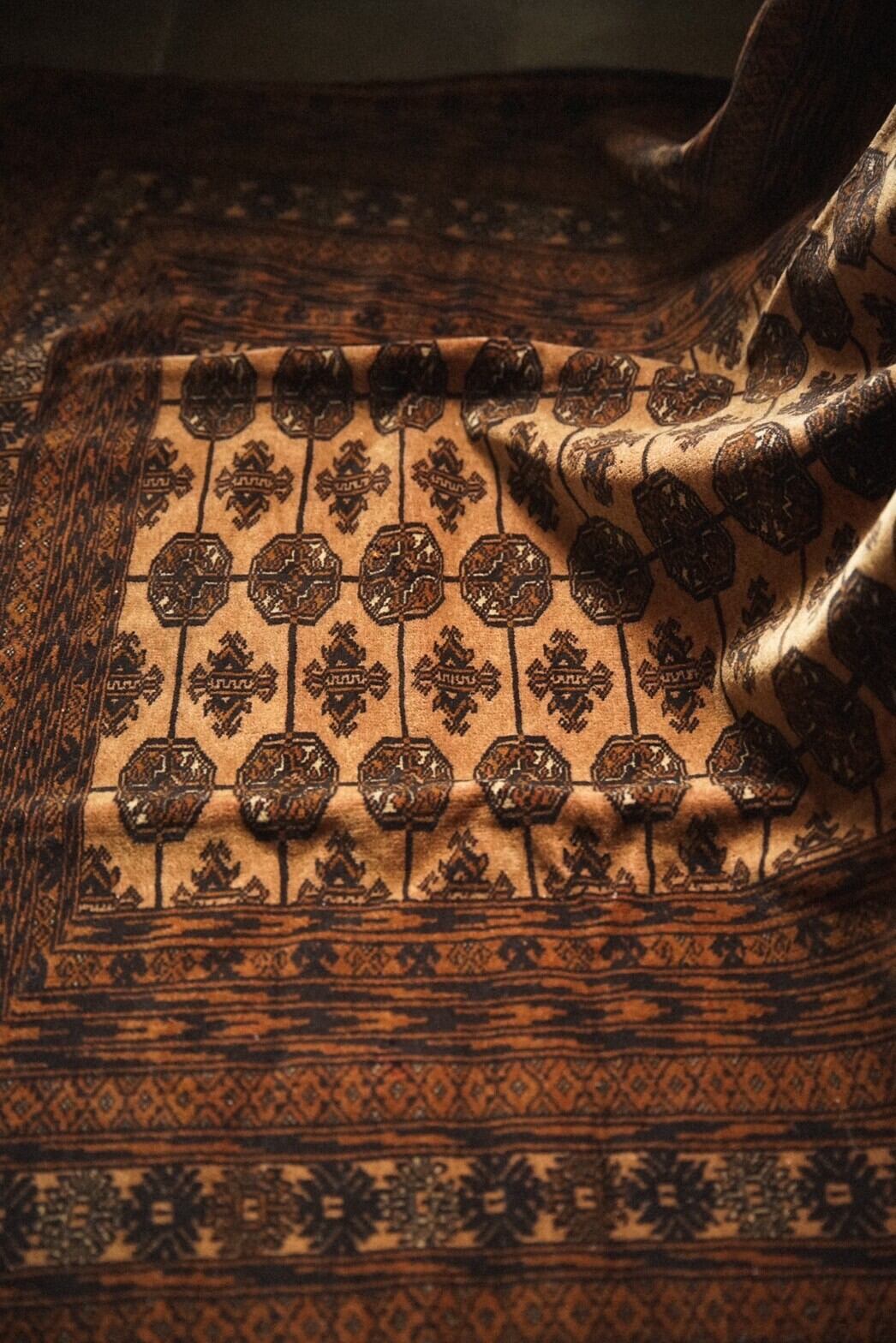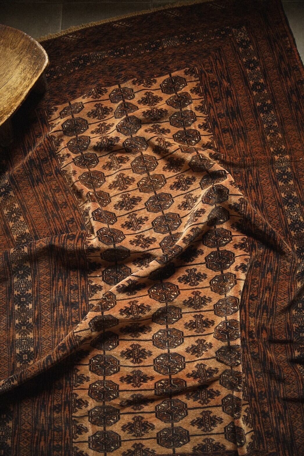 テラコッタ×キャメルの渋めの色合いとMauri Gulと呼ばれる小さいギュル紋様がたくさん並ぶ細かいデザインがとても美しい一枚。