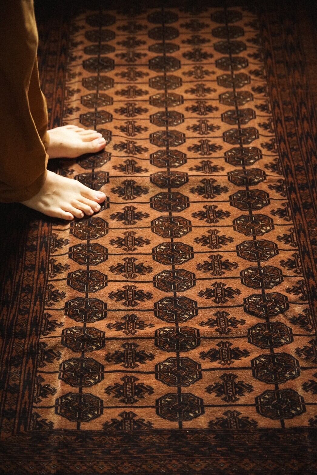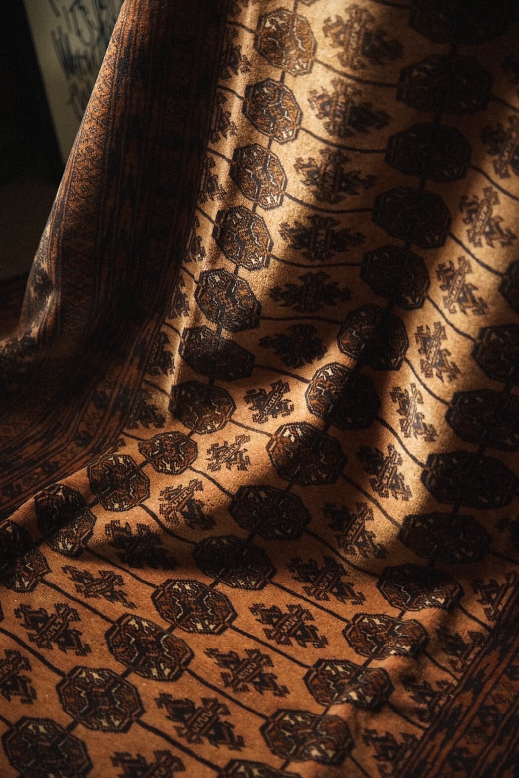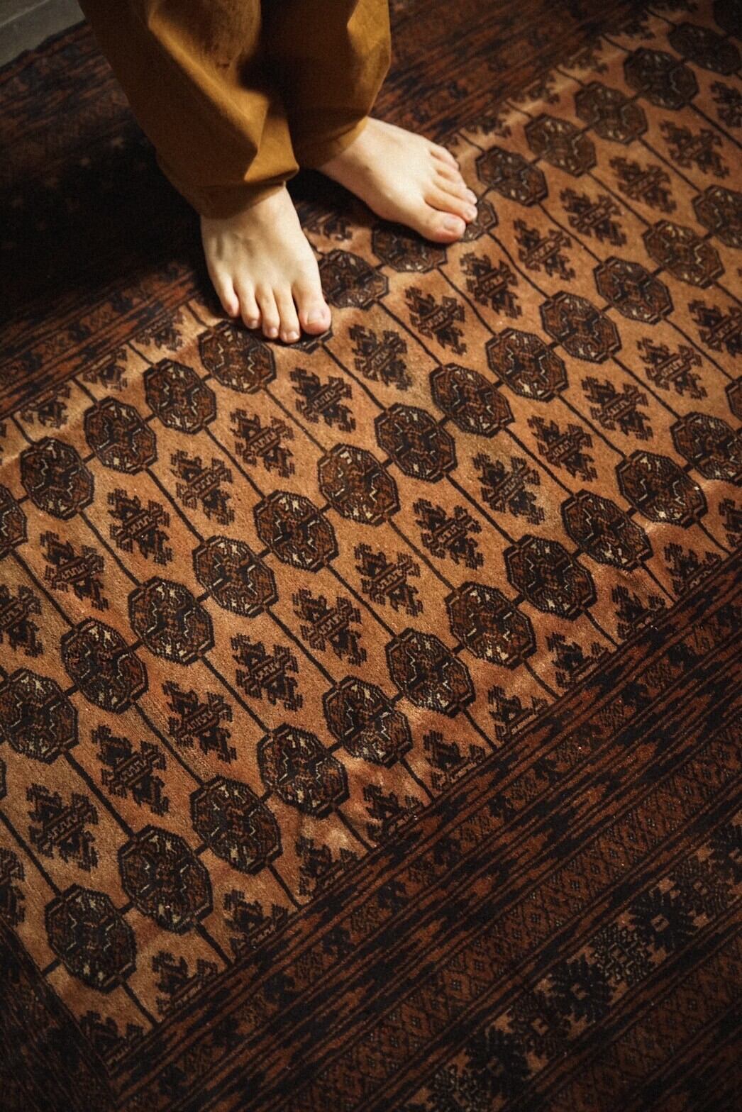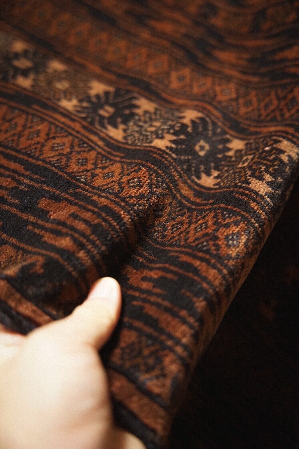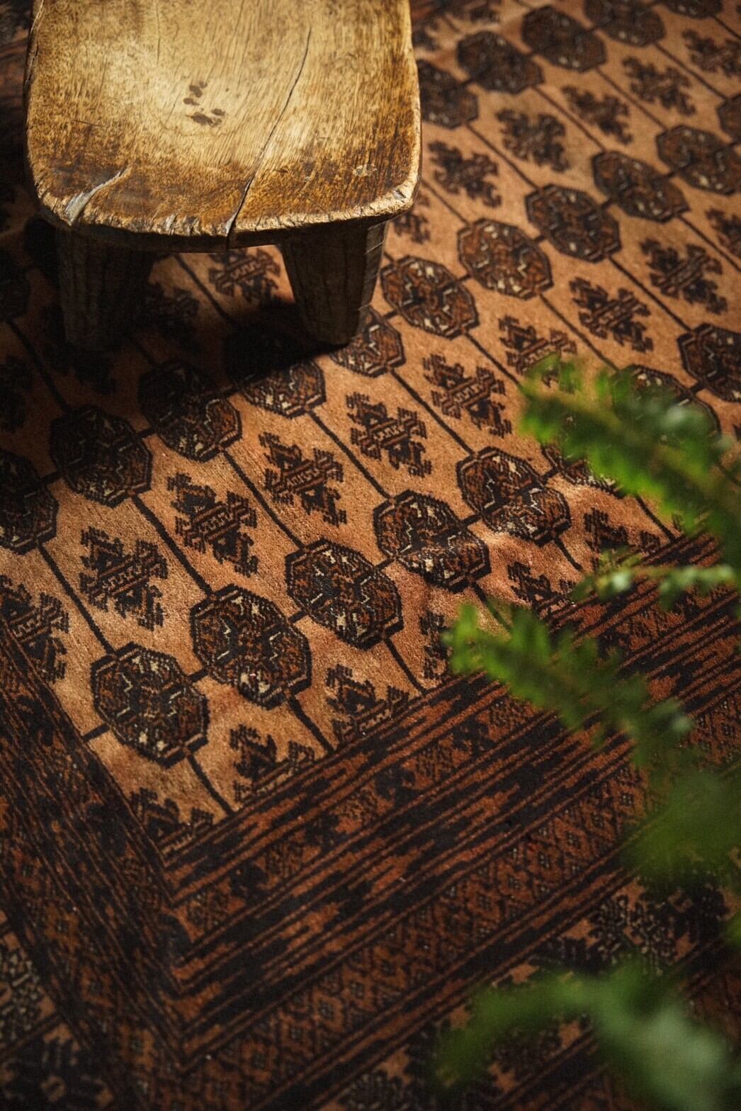 テラコッタ×キャメルの渋めの色合いとMauri Gulと呼ばれる小さいギュル紋様がたくさん並ぶ細かいデザインがとても美しい一枚。