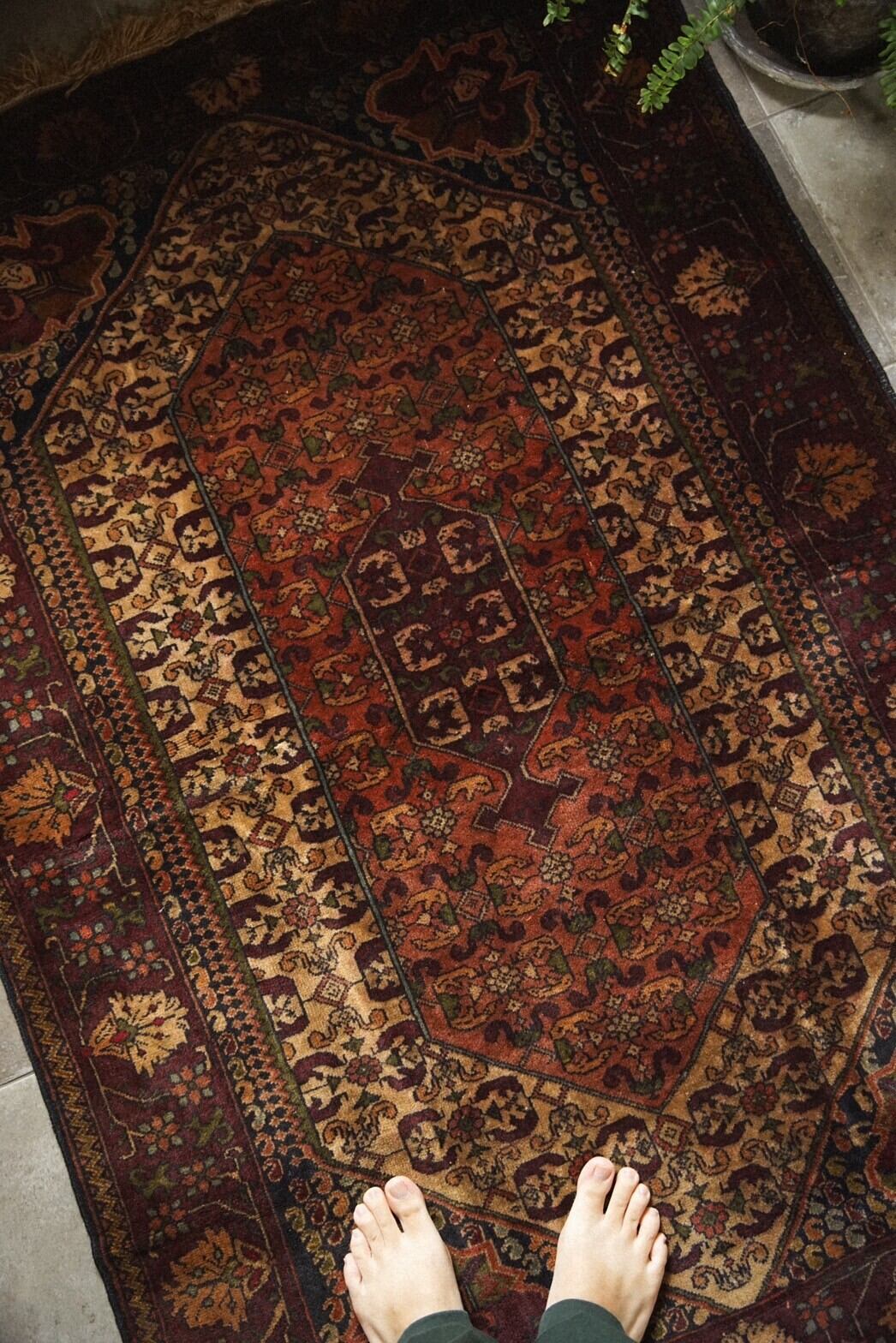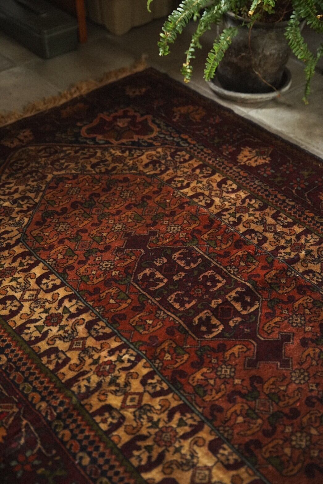 1980年代に織られたアフガニスタンのカラエナウ産バルーチラグ。
