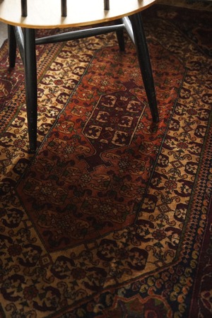 ラグ全体にお花をあしらったロゼット文様や、ボテが美しい色彩で織り込まれています。