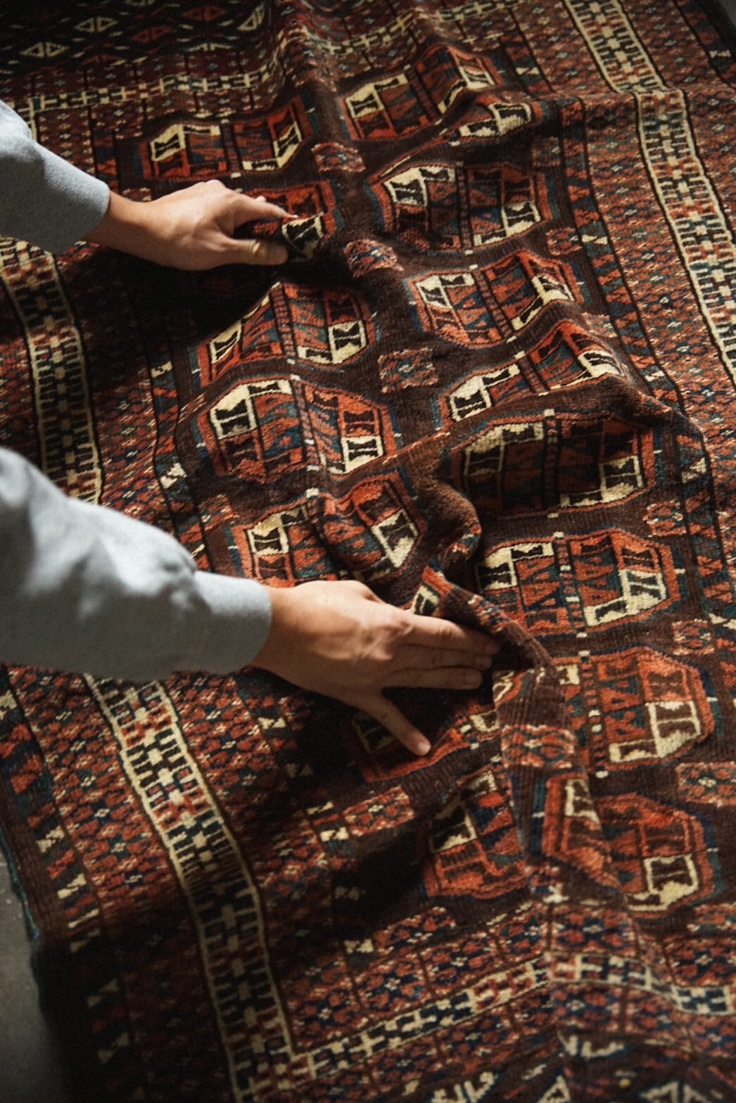 ぜひいつも目に入る場所に敷いたり、アートピースとして壁に飾って眺めたり…この美しいヨムートラグを堪能してください。