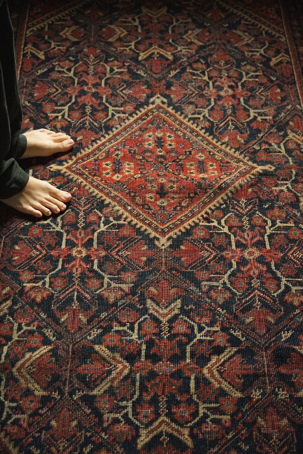 経年により生まれた擦れや褪色は新しいラグには出せない風格を醸し出しているオーラのある一枚。
