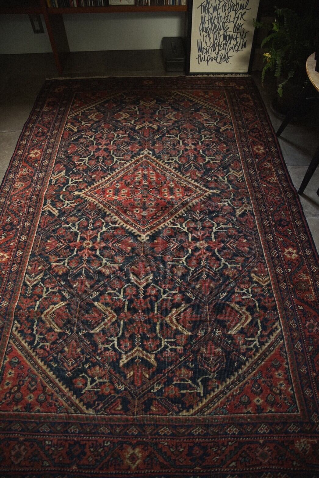 良質なペルシャ絨毯の産地として知られるハマダン州南東部のマラーイェル周辺で織られたラグ。