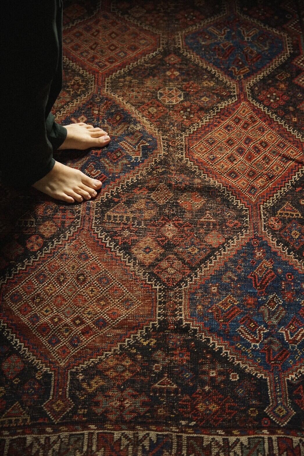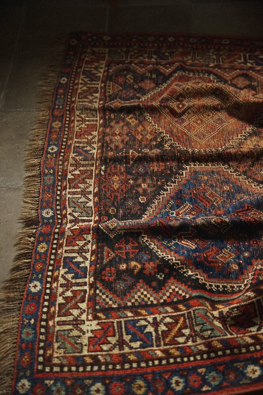 そして経年により生まれた擦れた風合いが、古いアンティークラグにしか出せない雰囲気を醸し出しています。