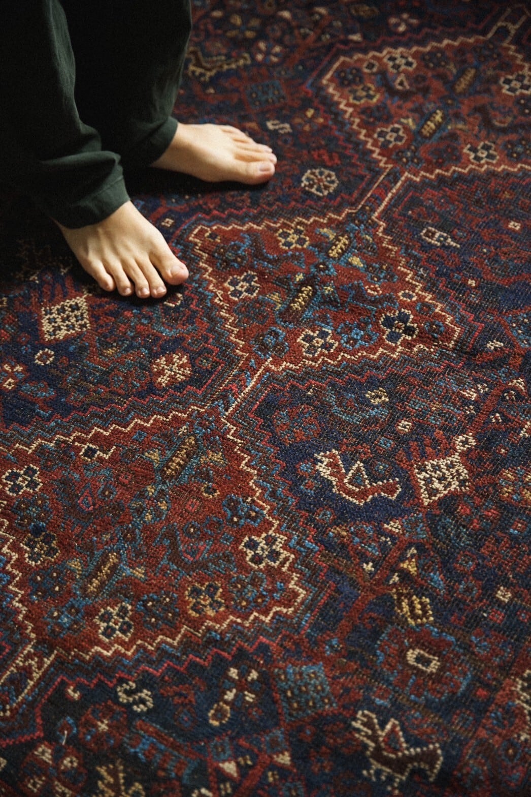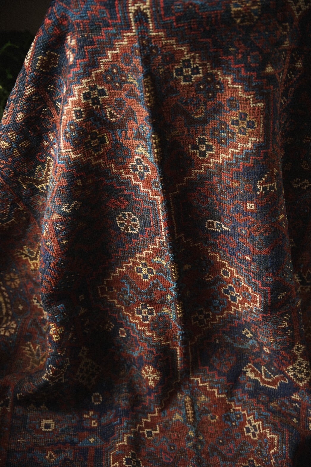 鳥たちも気持ち良さそうに羽根を広げる姿はずっと眺めていたくなるラグです。ボーダー部分も細かく何層にもなっており、細かい花柄がチロリアンテープのようでとても可愛らしいです!経年140年近いラグですが、目立ったダメージもなくグッドコンディション。