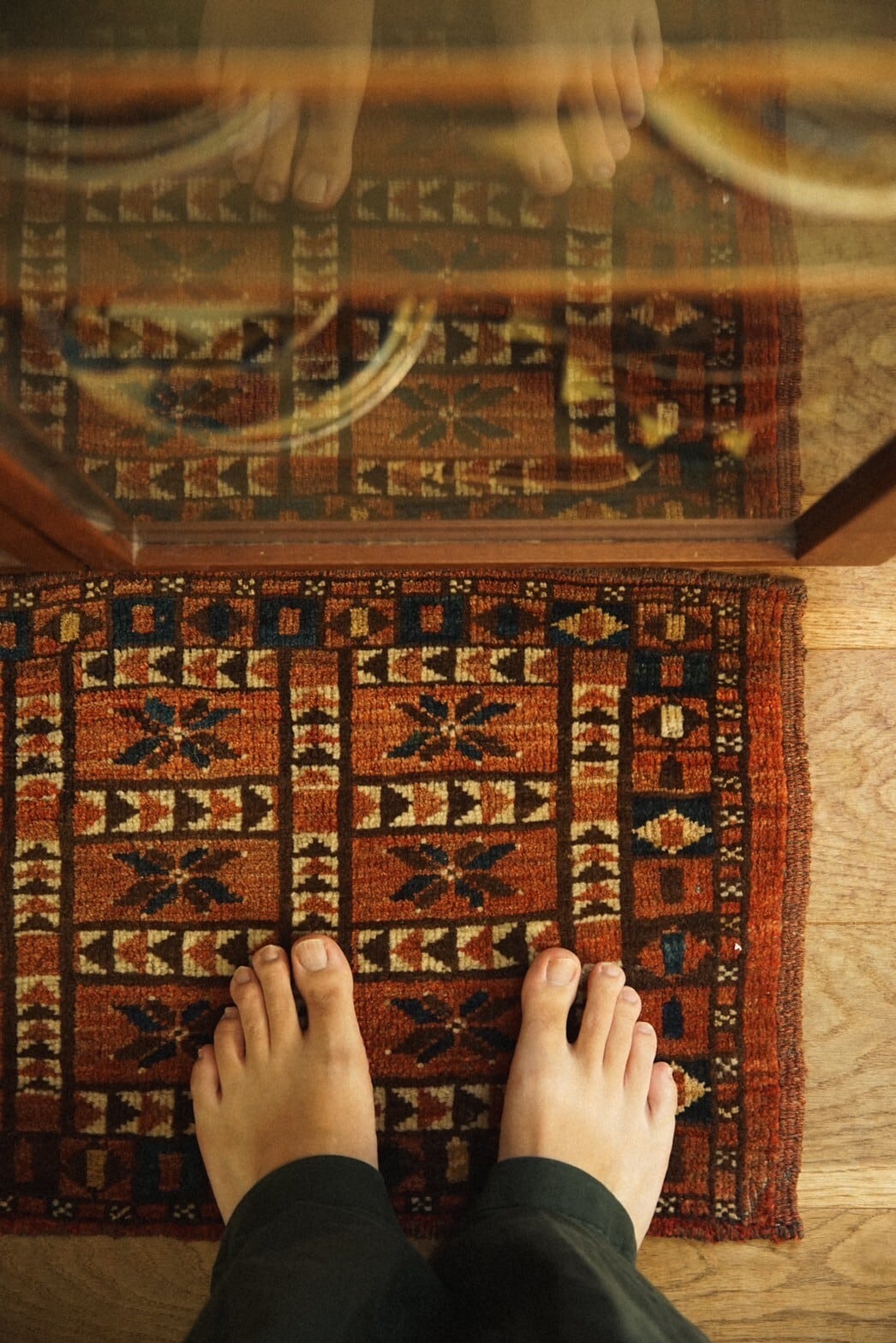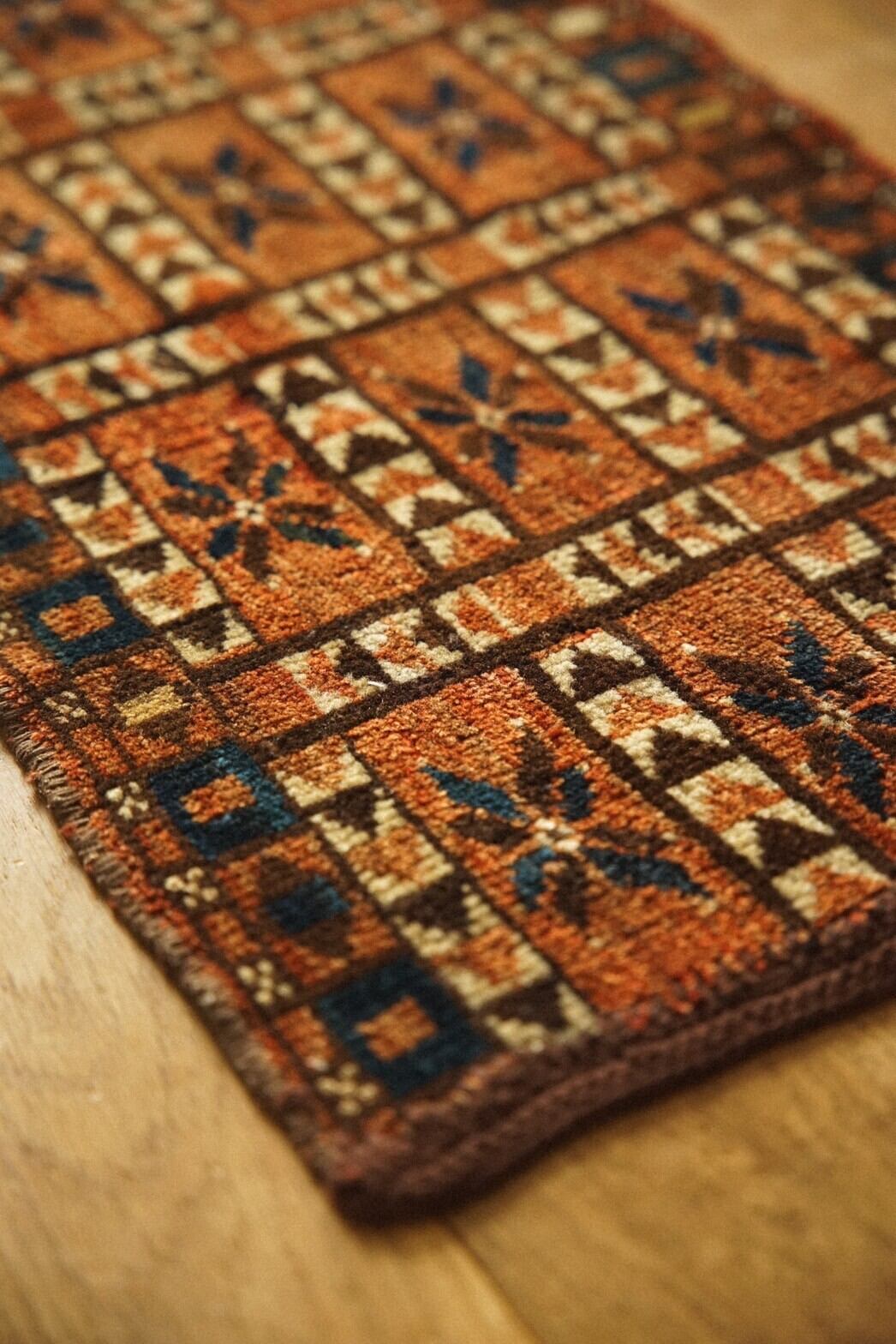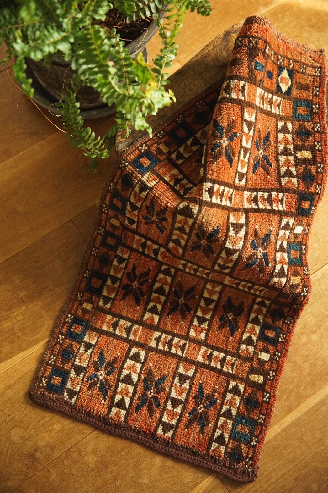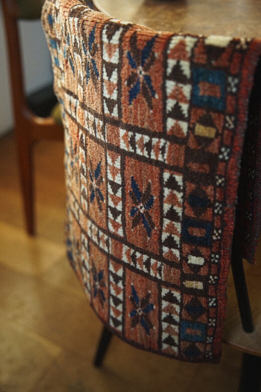 1990年代にトルクメン族によって織られたクッションカバーをラグに仕立ててもらいました。