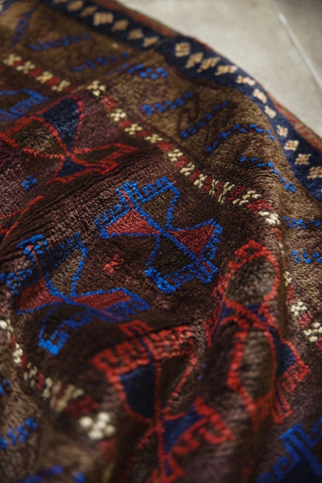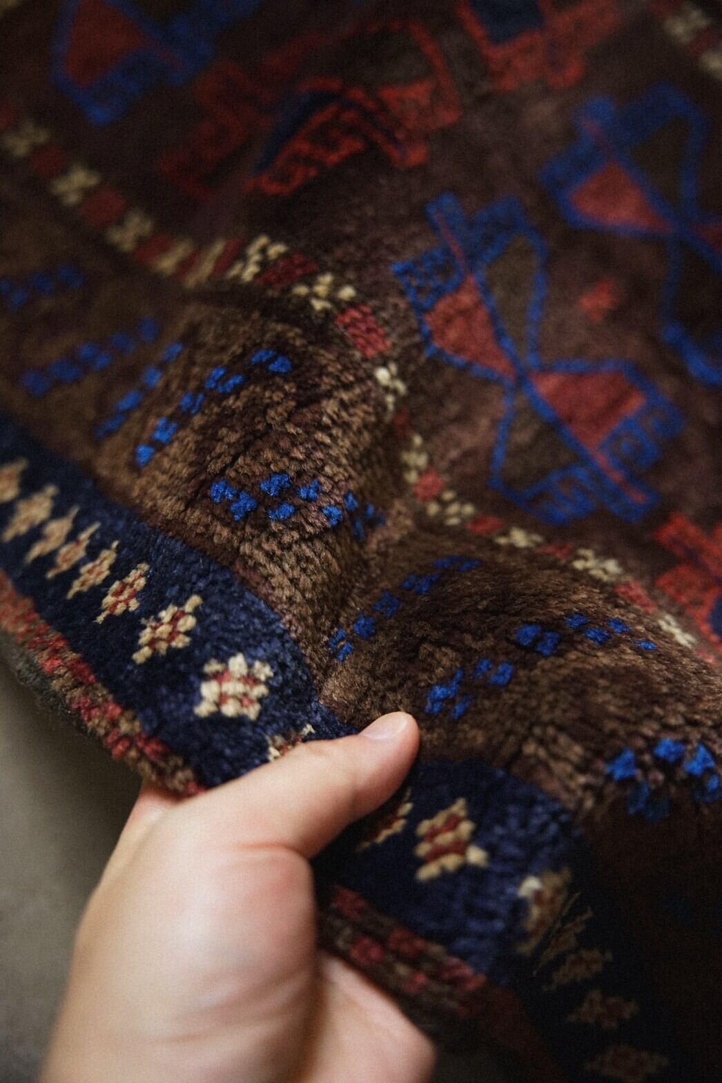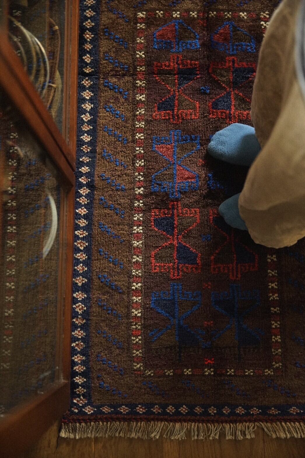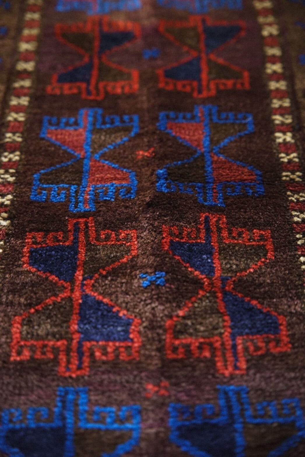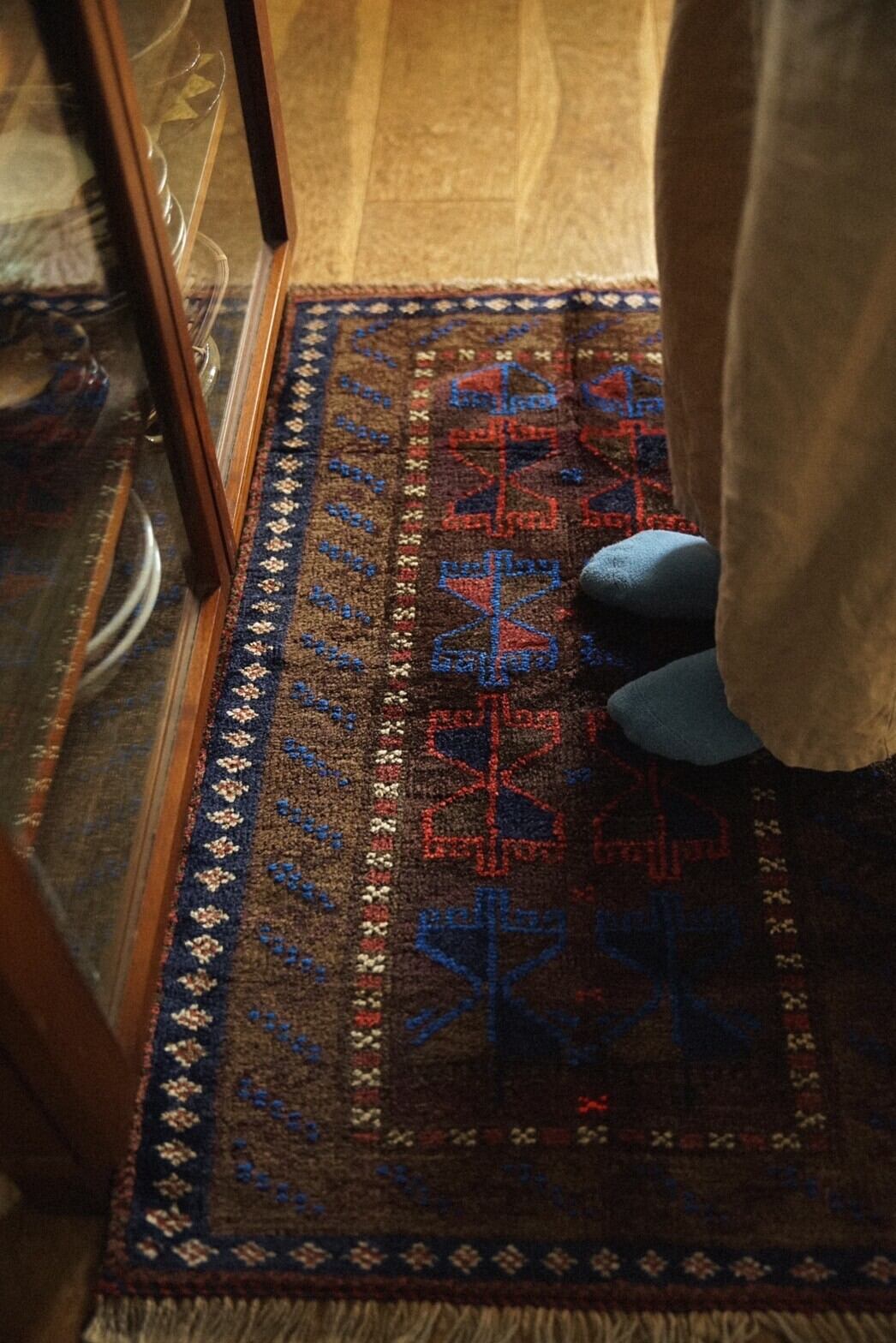バーリシトと呼ばれる家財や食材を入れたり、屋内ではクッションとして使用される袋状のものをラグに仕立ててもらいました。