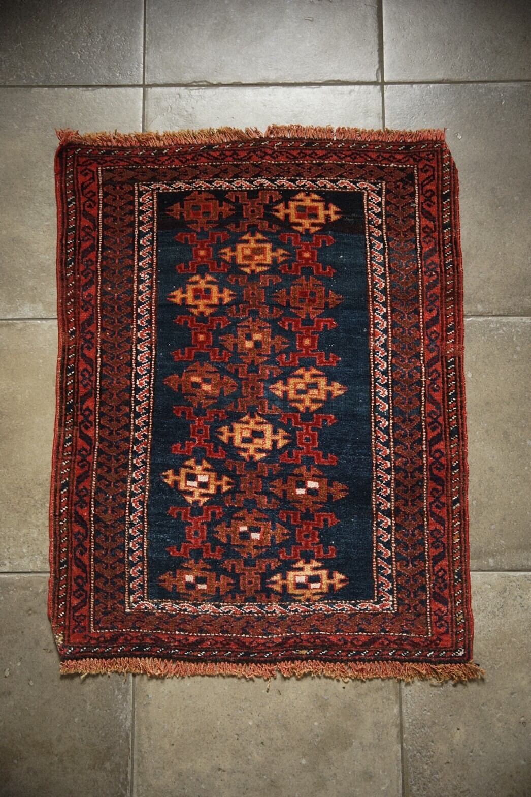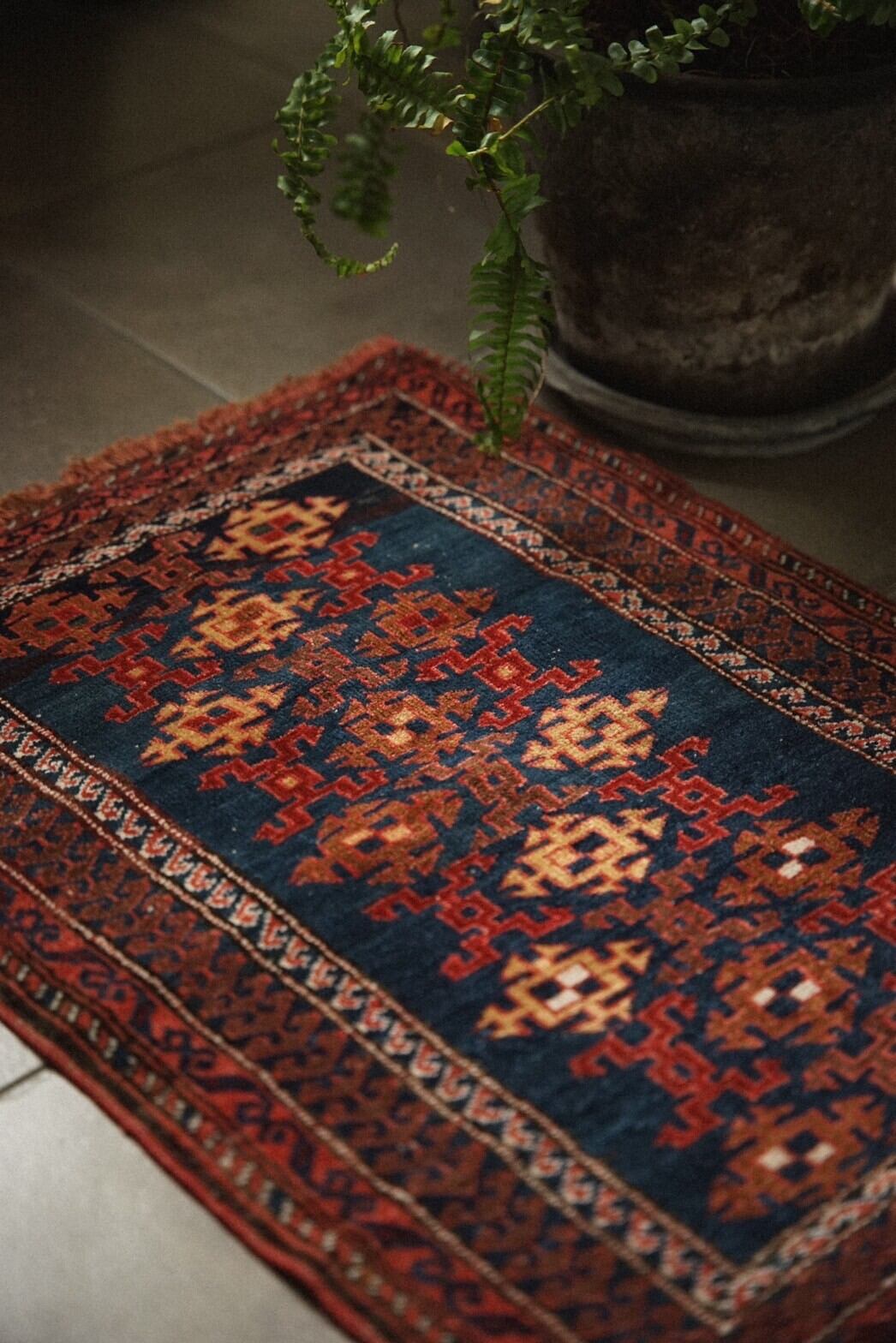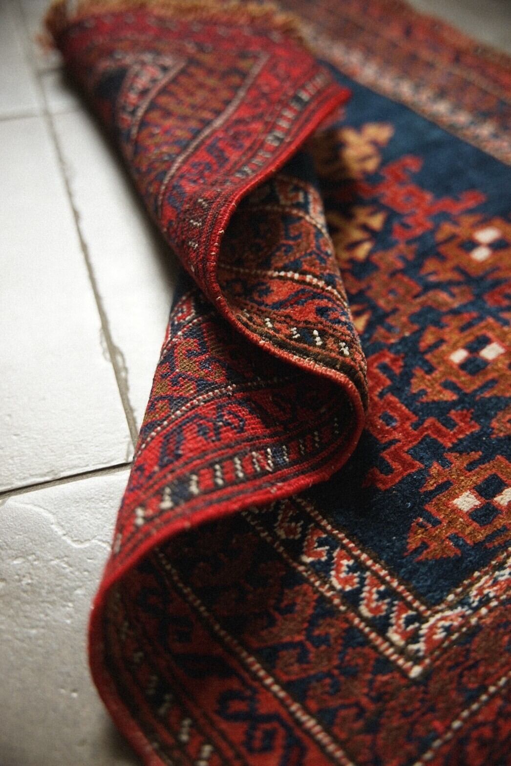 1960年代にトルクメン族によって織られたラグです。ギュル紋様が並ぶデザインで、フィールドのインディゴはアブラッシュと呼ばれるグラデーションが見られます。